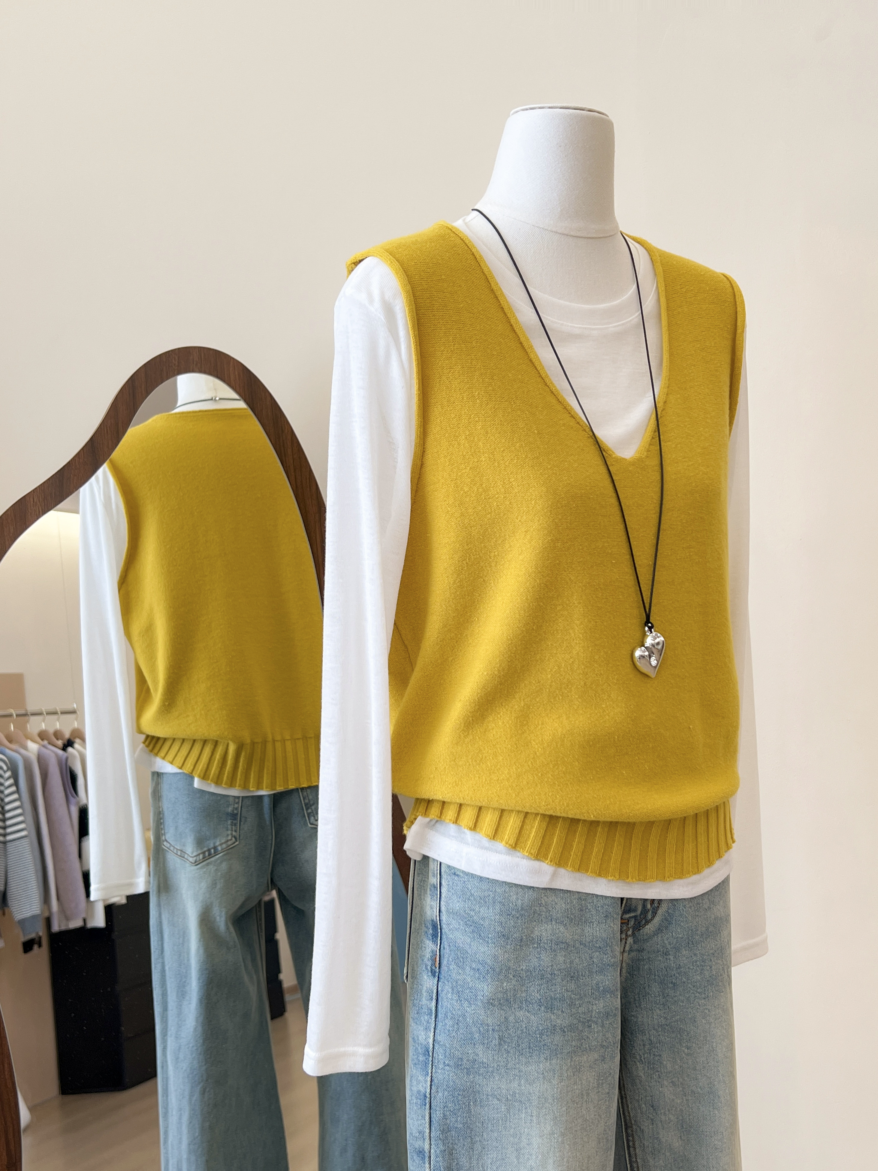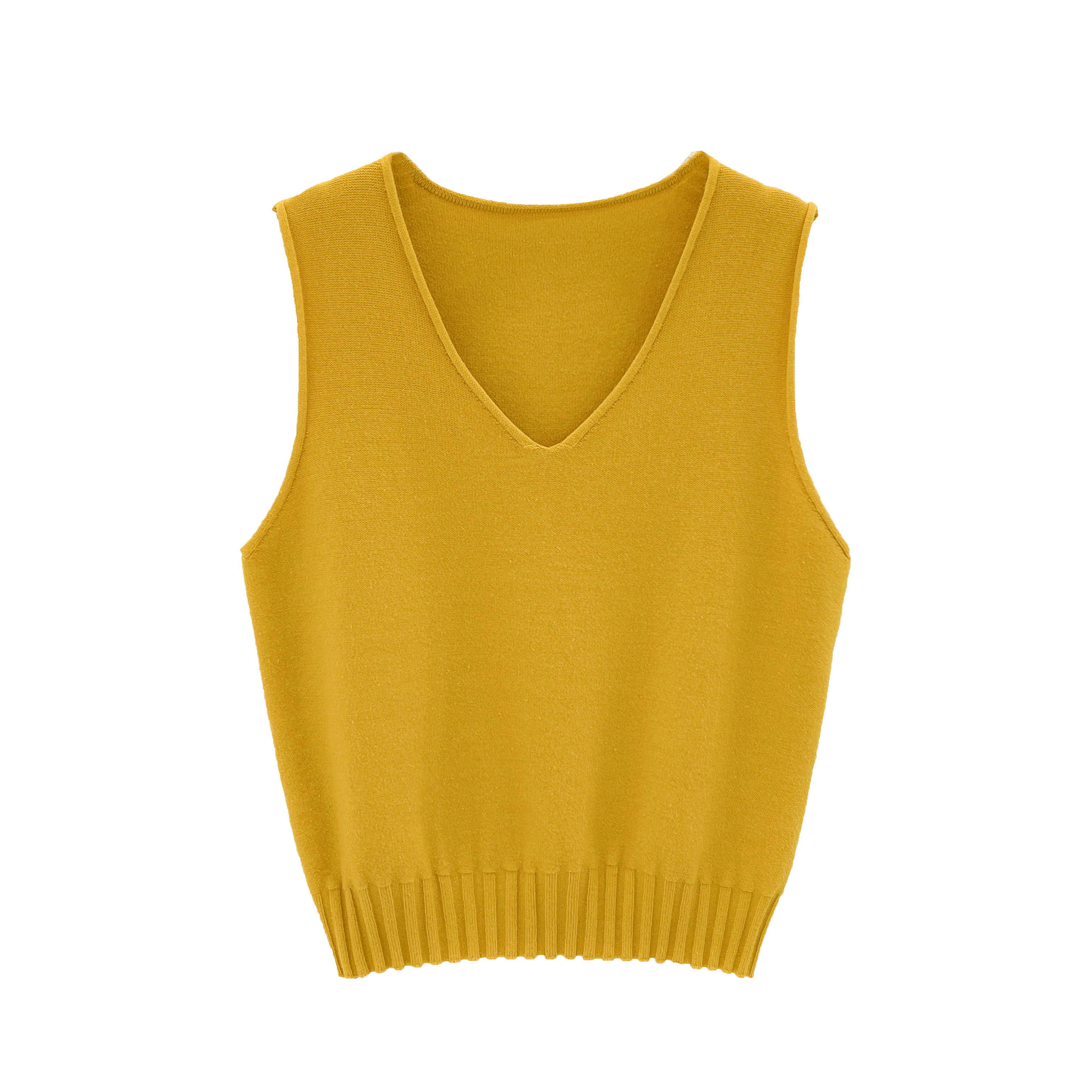Guangzhou Thirteen Lines women's high-end European yellow v-neck wool knitted sleeveless vest vest stacking vest top