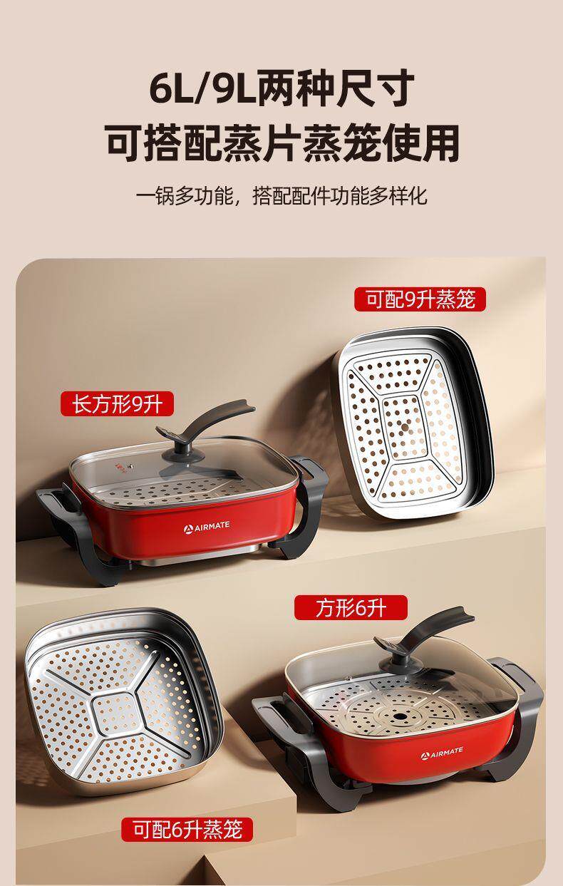 Airmate Electric Cooker, Electric Steamer, Multi-Functional Electric Pot, All-In-One Pot for Steaming, Cooking, Frying and Grilling, Electric Hot Pot, Dormitory Pot, Multi-Functional Pot