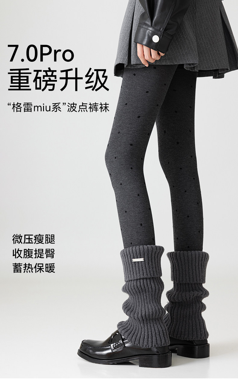 Catman gray polka dot pantyhose for tall women, extended version, autumn and winter outer wear, pressure slimming bottoming pantyhose