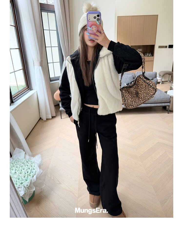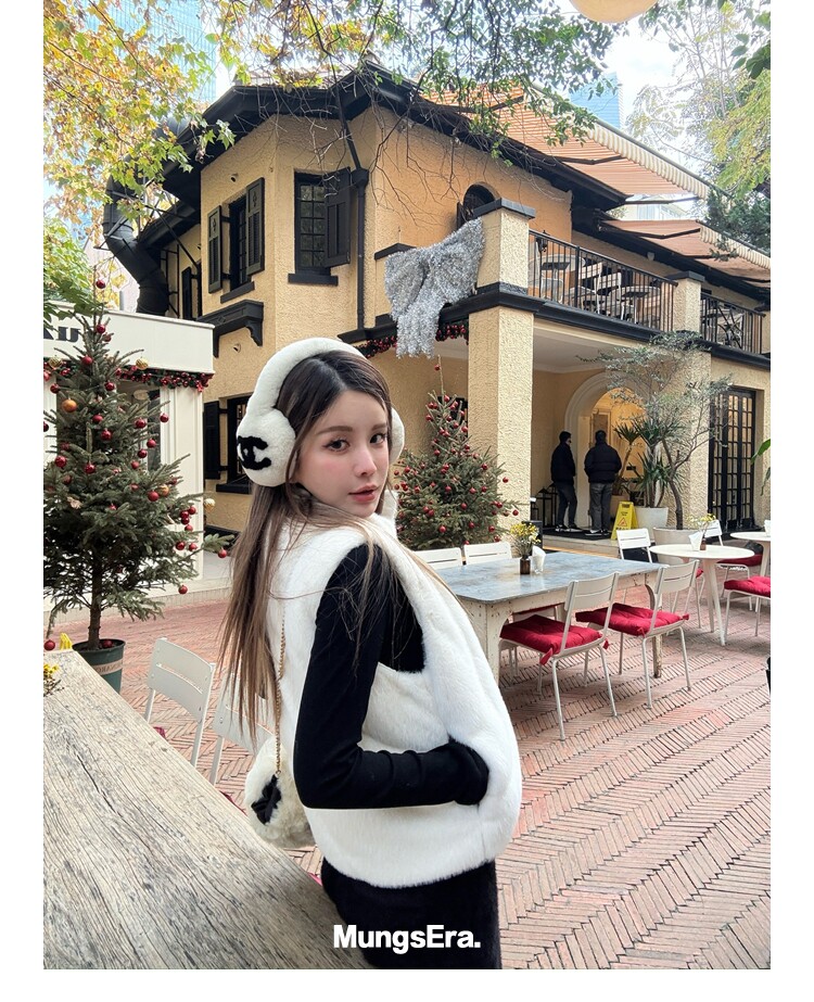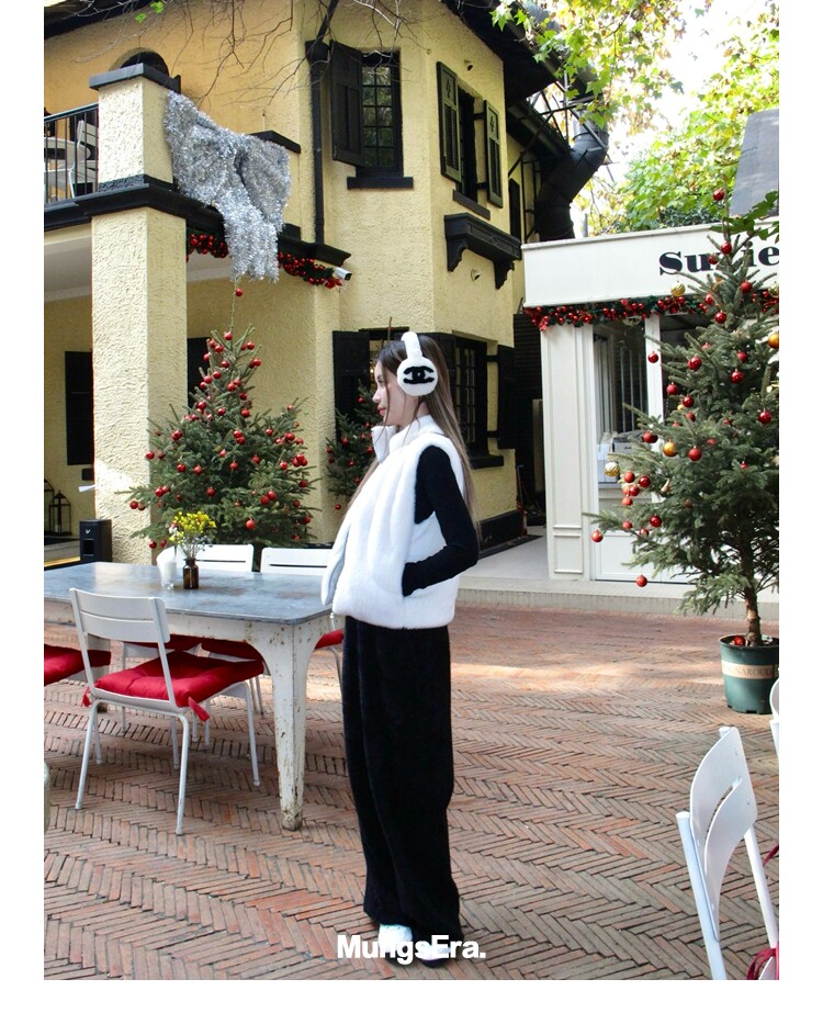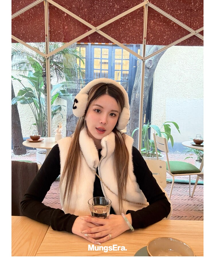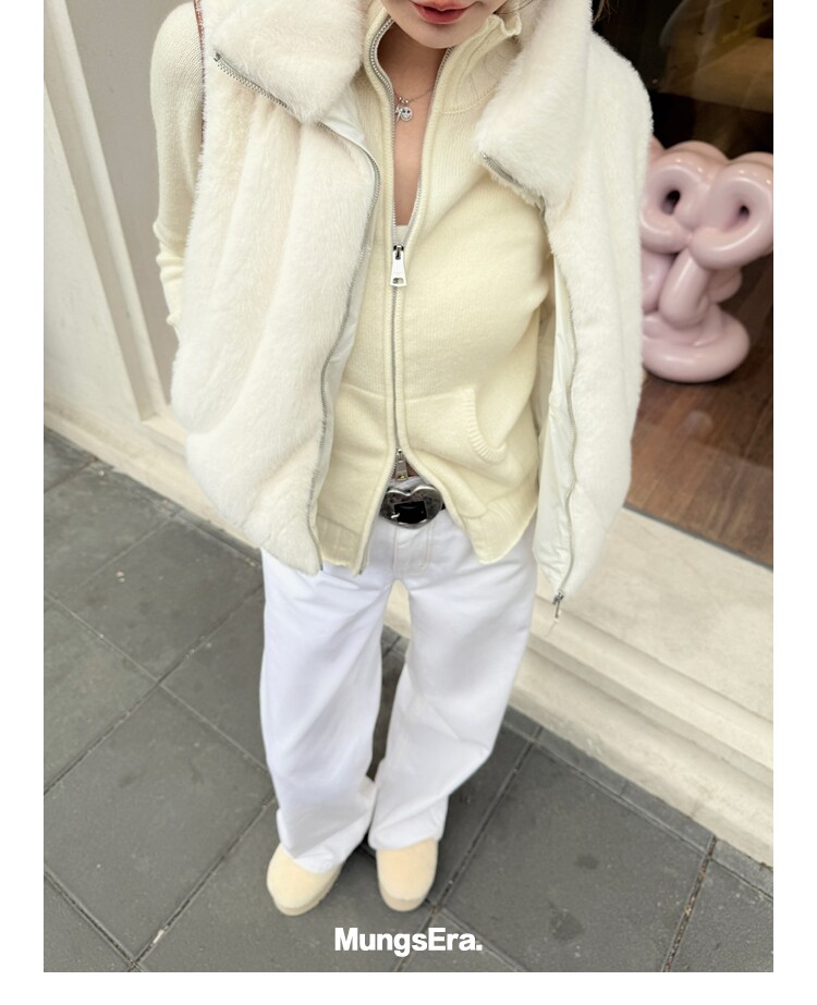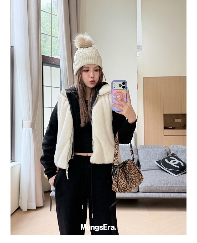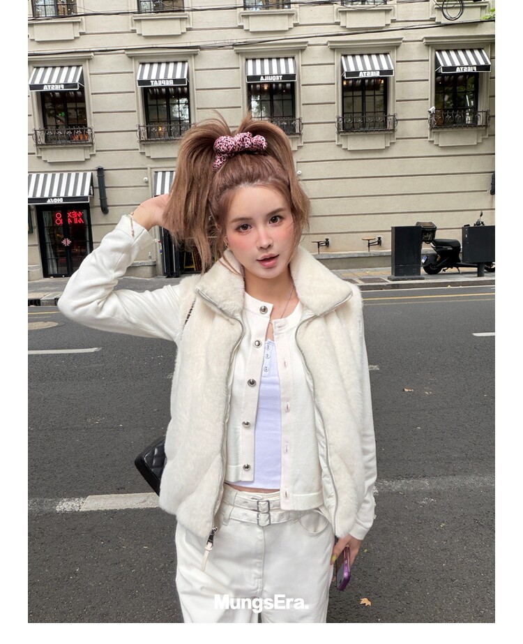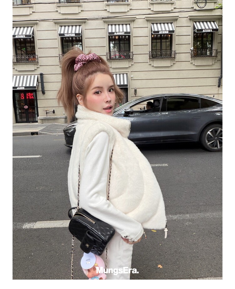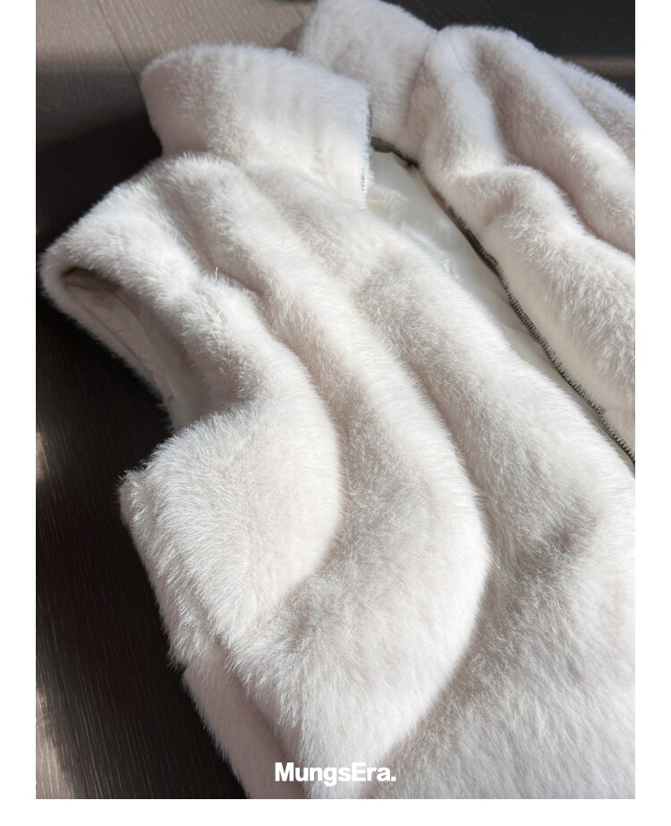 Mungsera "Let Me Shine Ruth Style Same as Celebrity Wear Private Label Artificial Fur down Warm Vest White Color