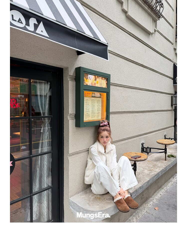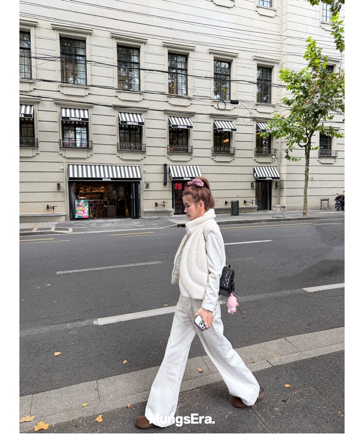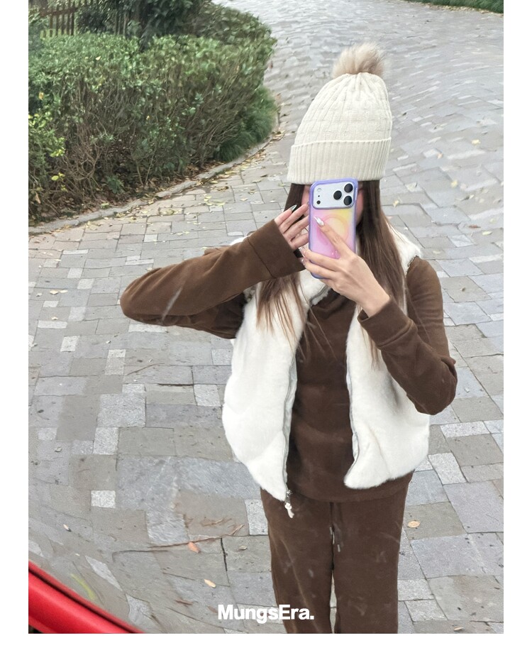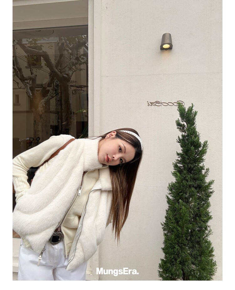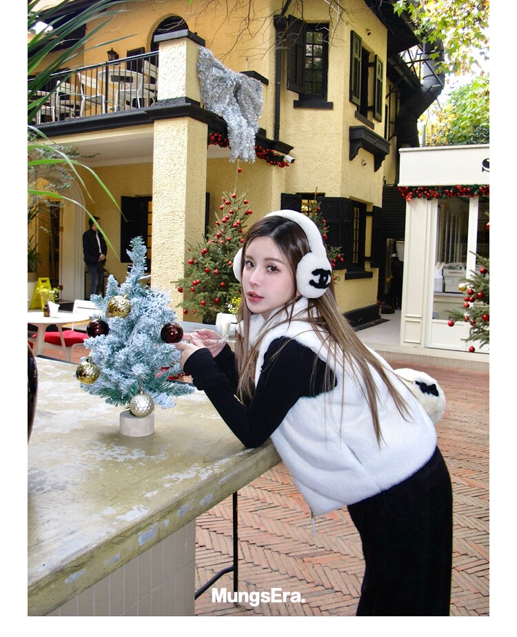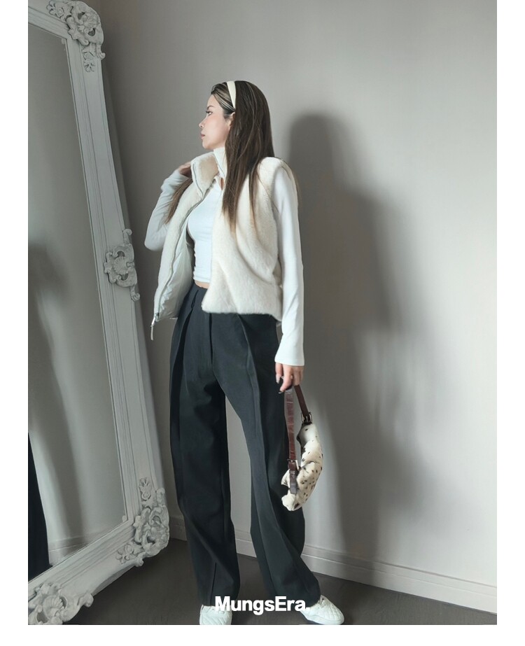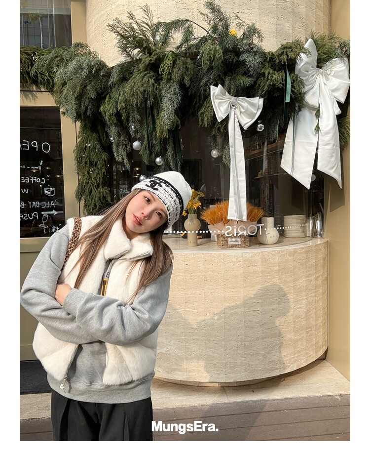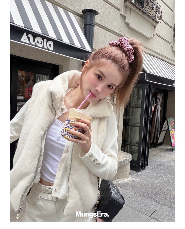 Mungsera "Let Me Shine Ruth Style Same as Celebrity Wear Private Label Artificial Fur down Warm Vest White Color