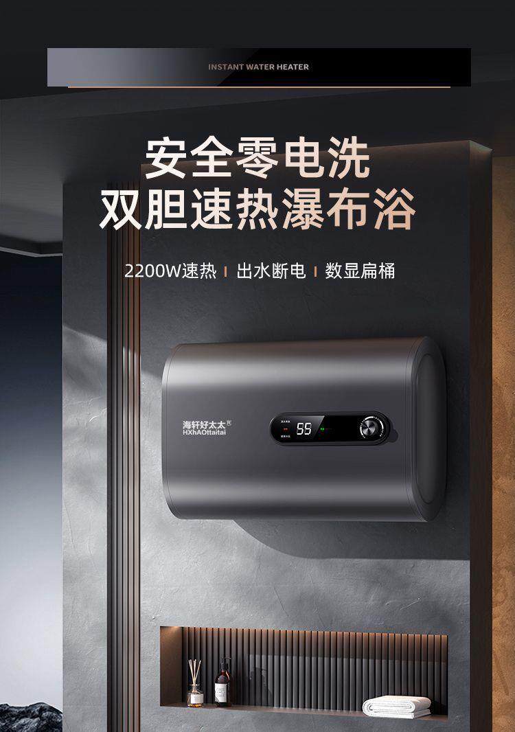 Haixuan Haotaitai Electric Water Heater for Home Use, Flat Tank, Round Tank, 40/50/60/80/100 Liter, First-Class Energy Efficiency