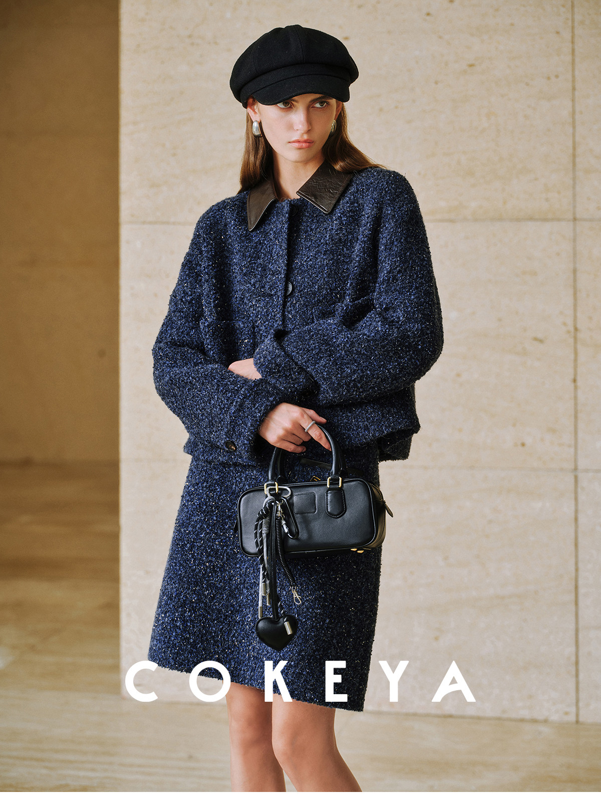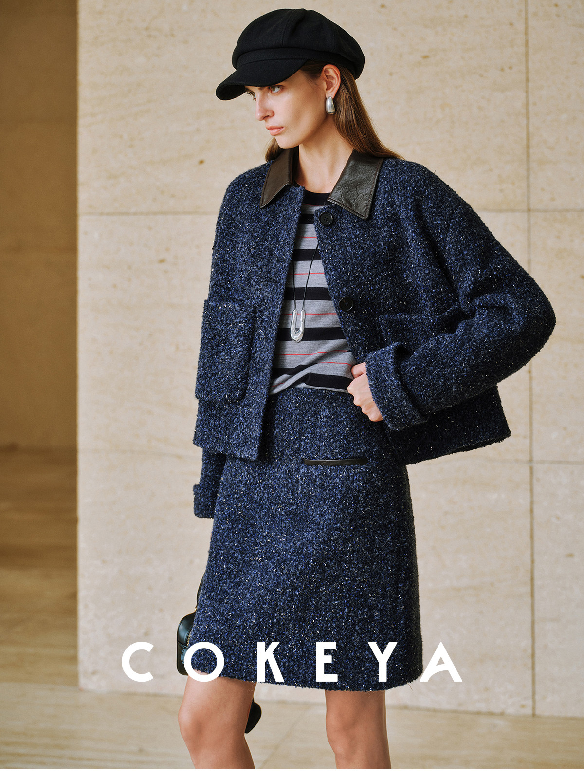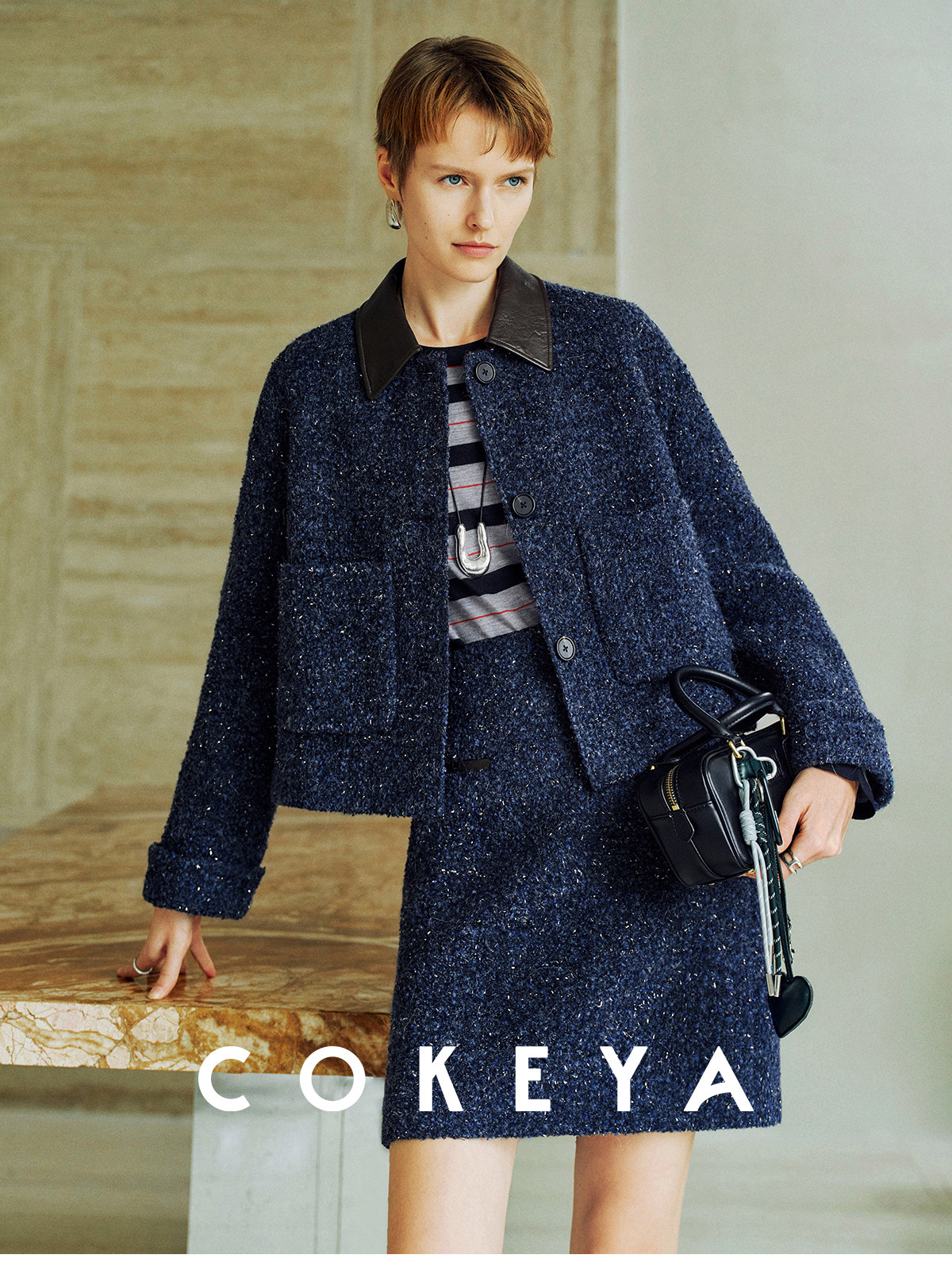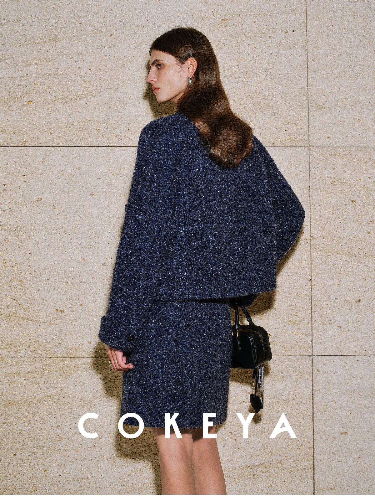 Cokeya/ "Blue Galaxy Set" ~ Genuine Wool and Alpaca Wool Chanel-Style Jacket for Women, Spring Skirt Set