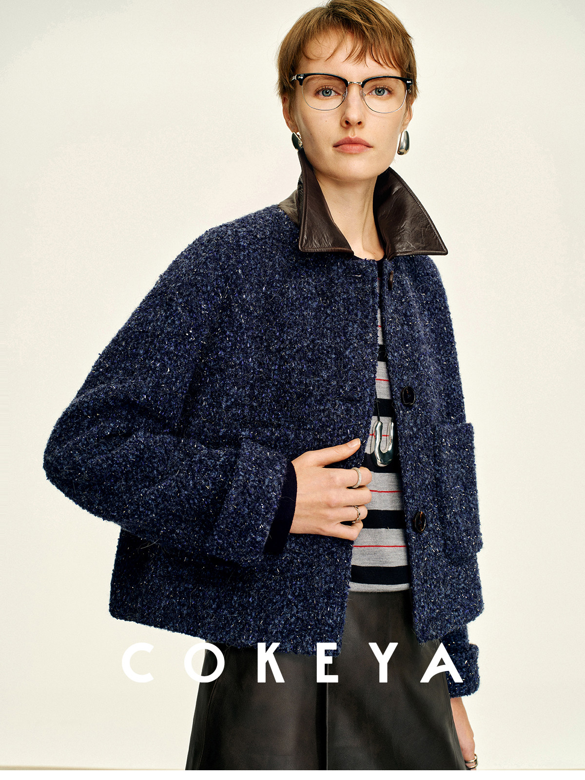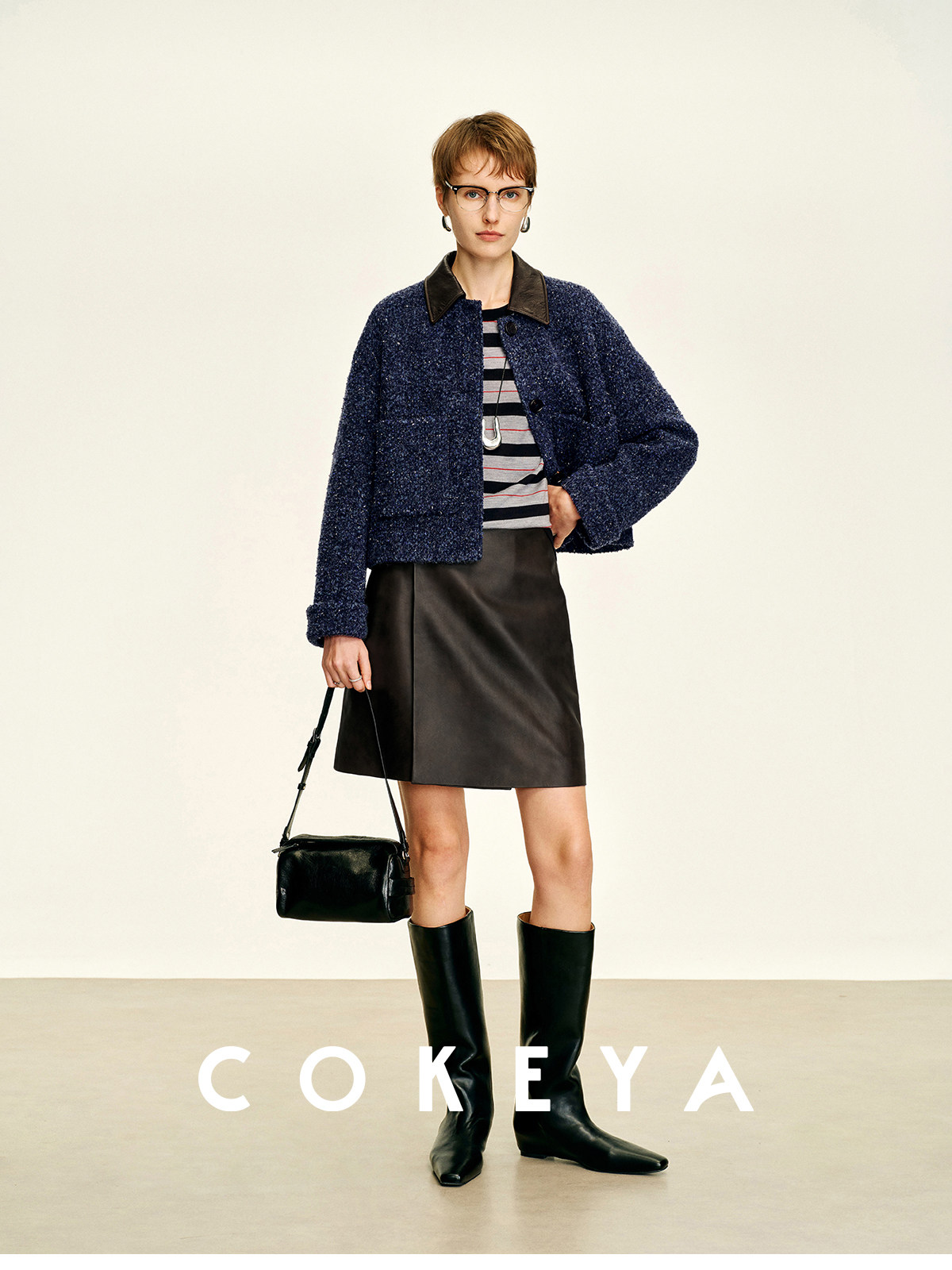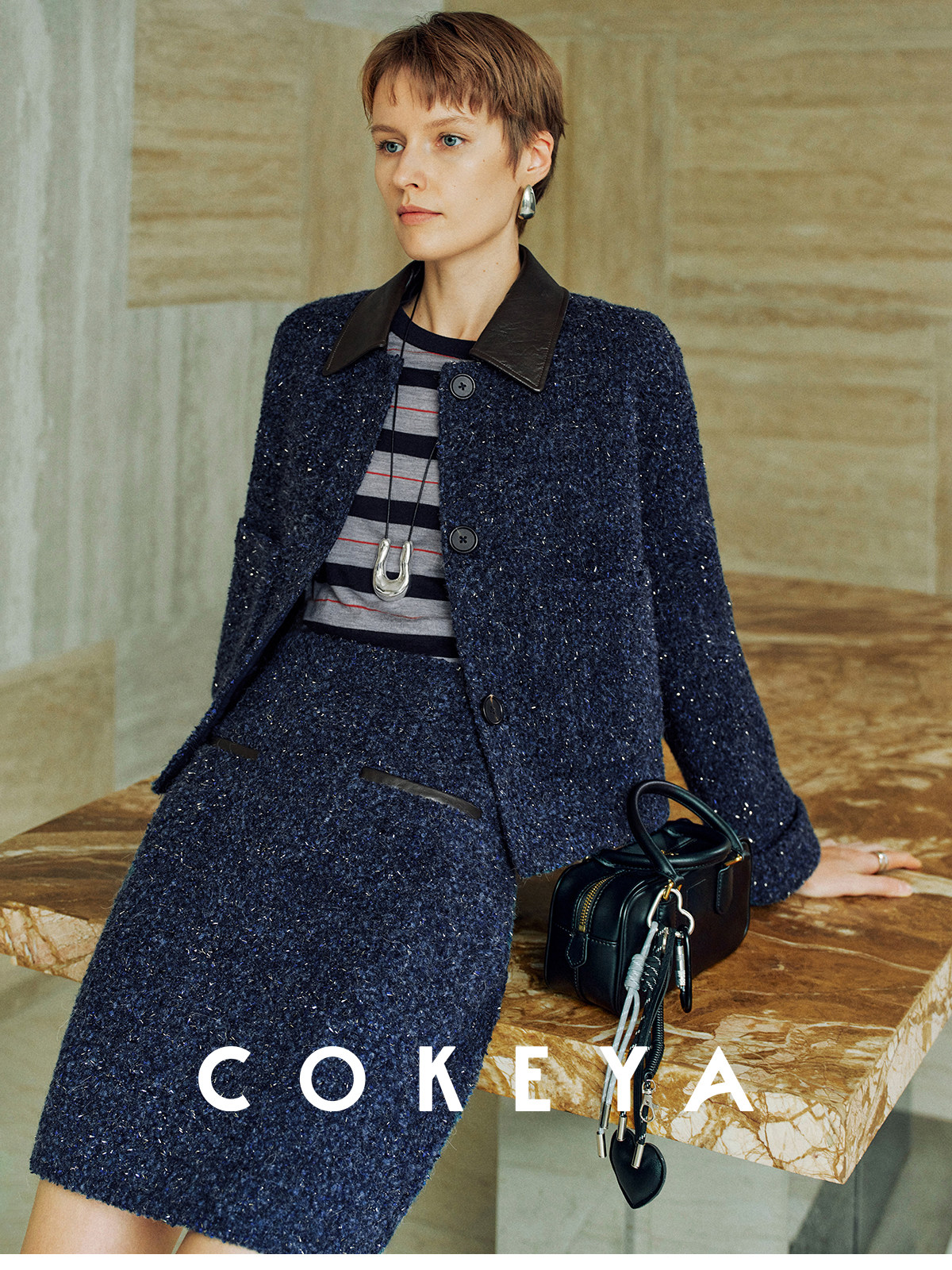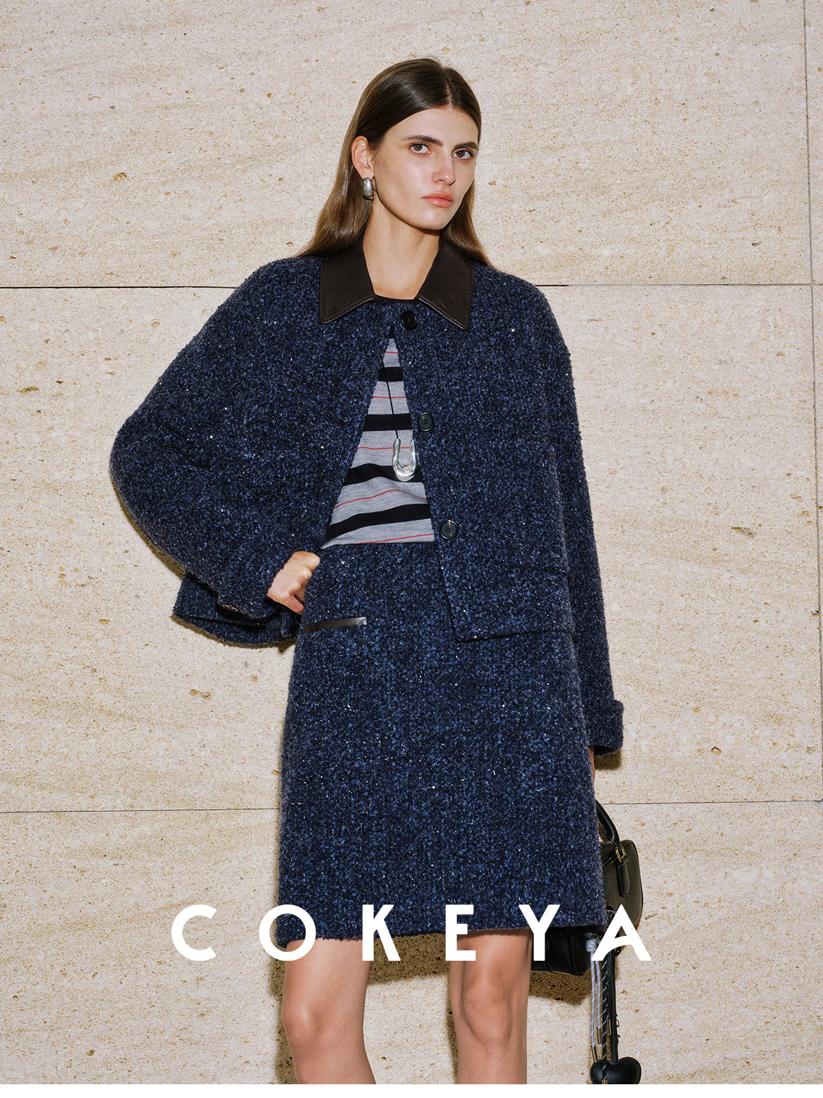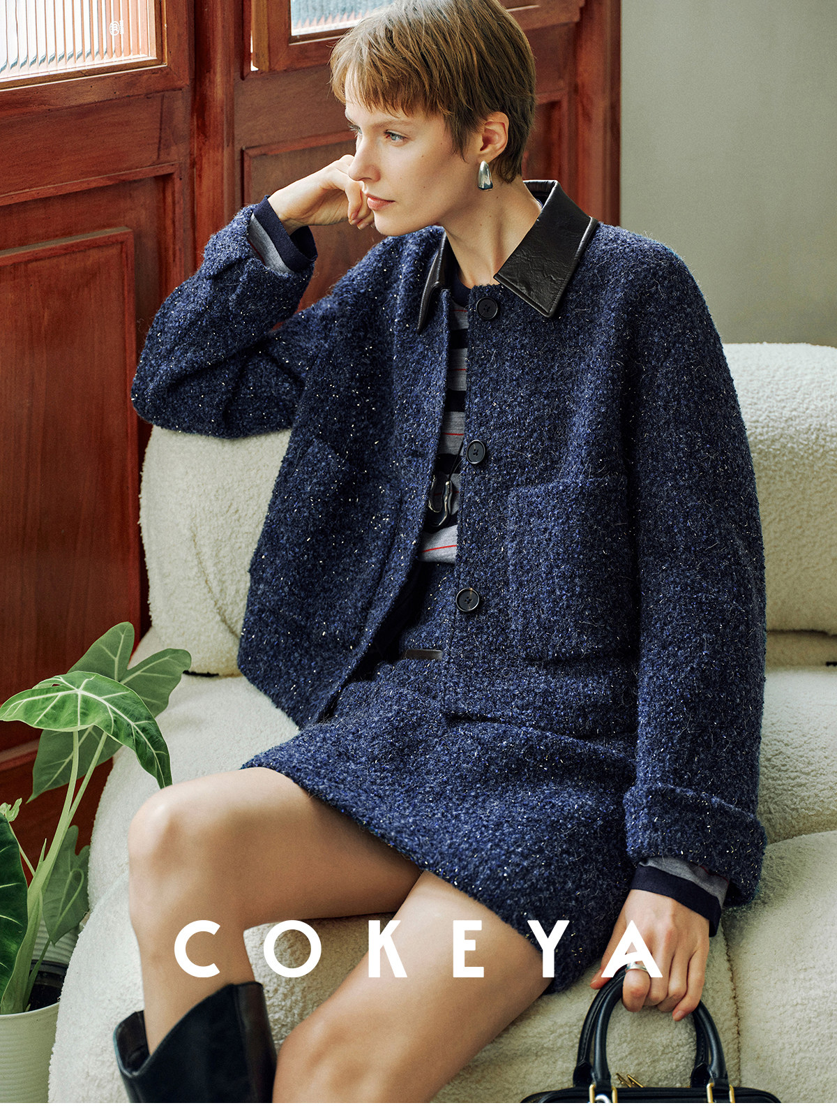 Cokeya/ "Blue Galaxy Set" ~ Genuine Wool and Alpaca Wool Chanel-Style Jacket for Women, Spring Skirt Set