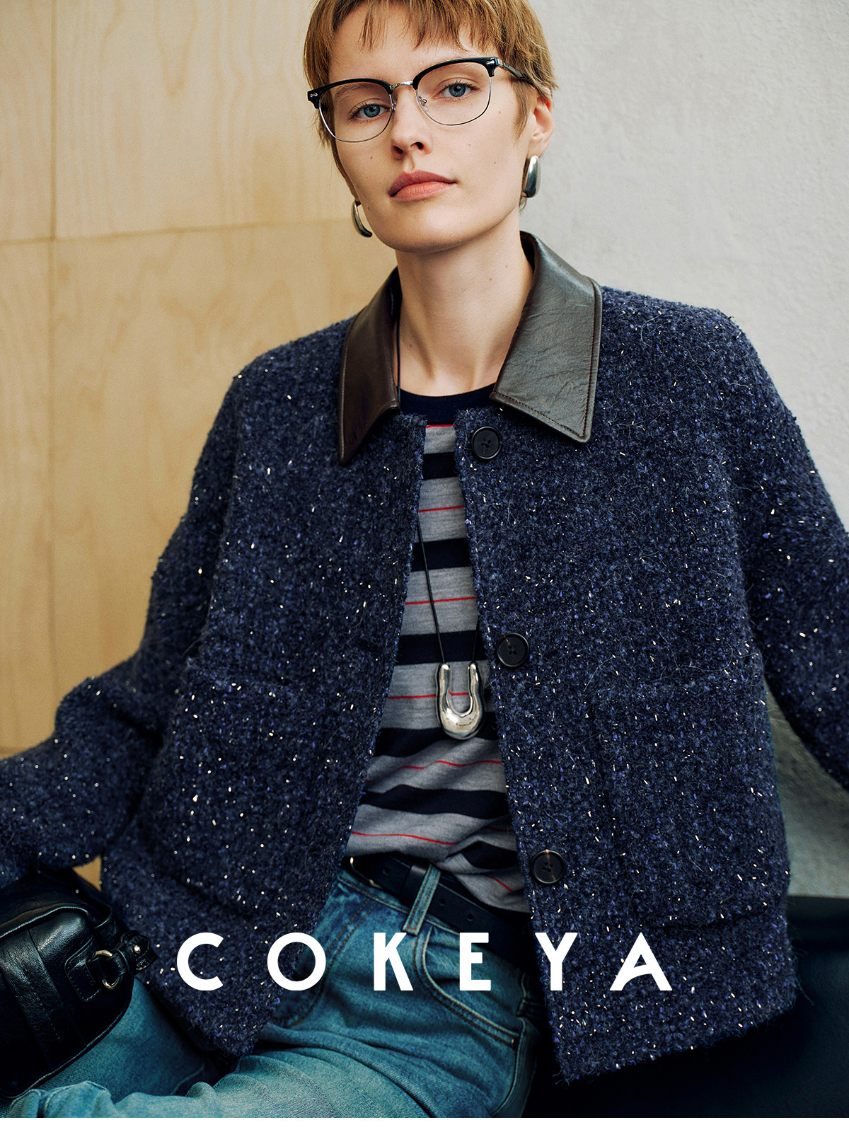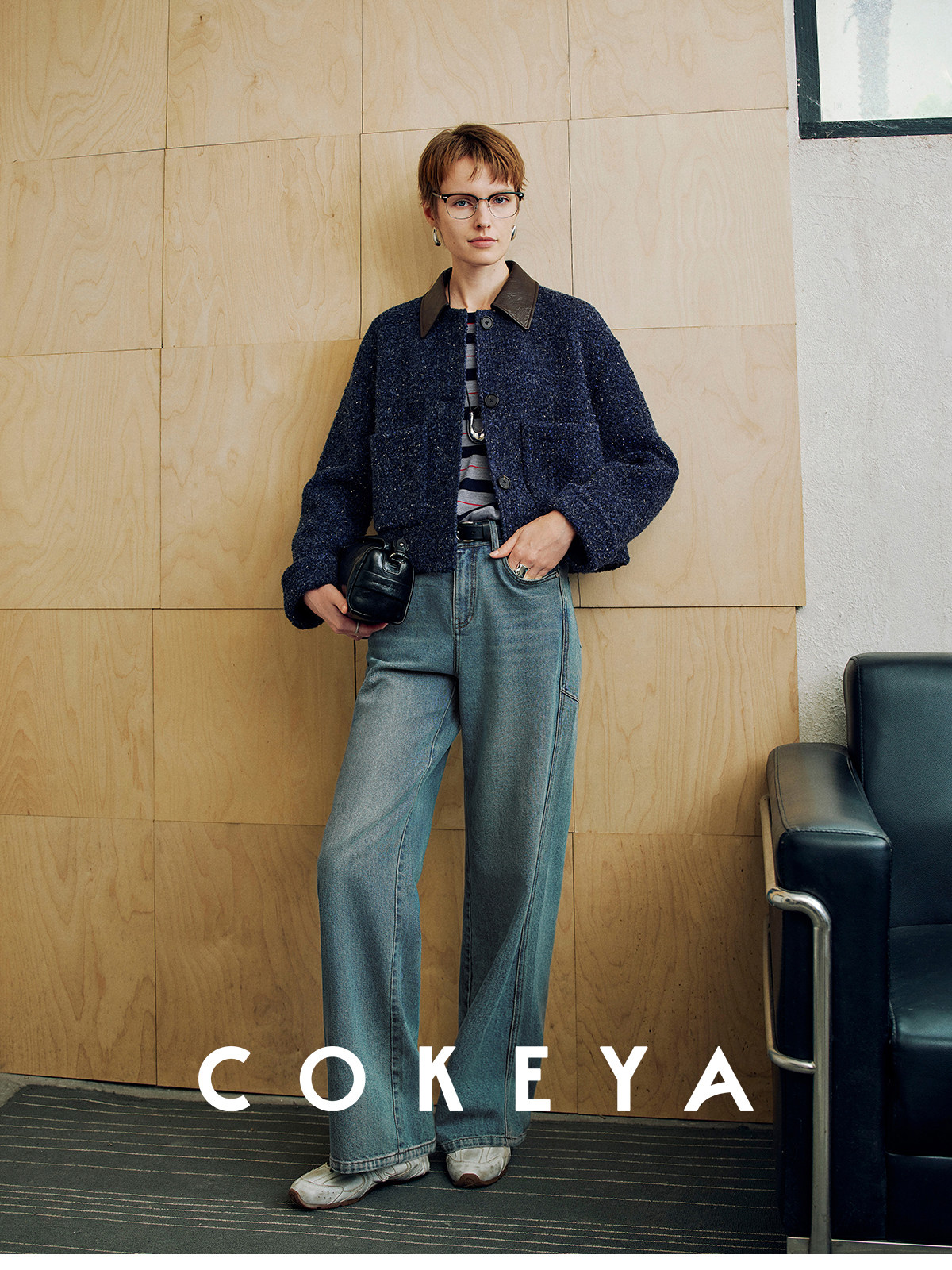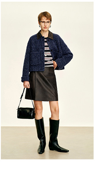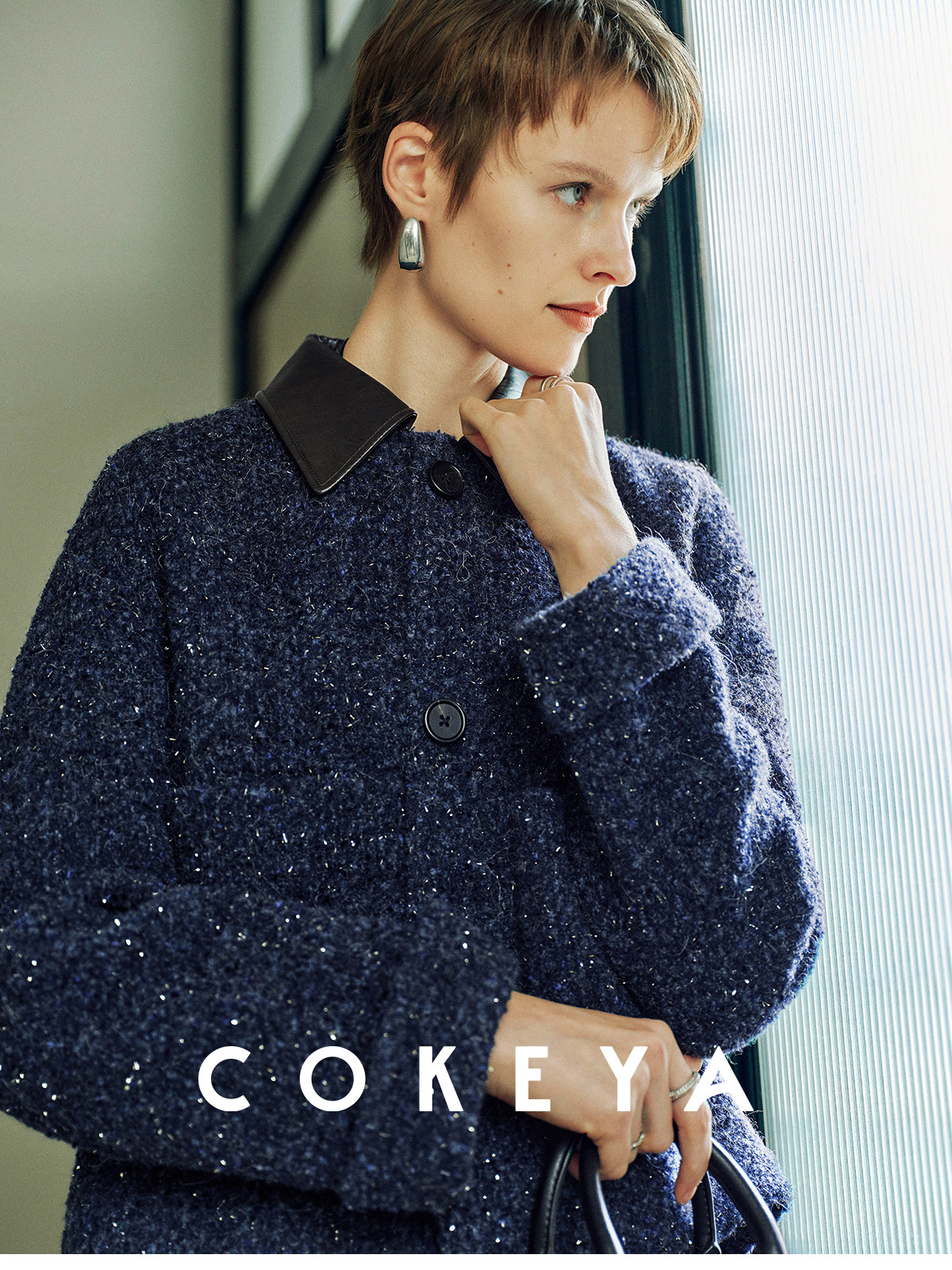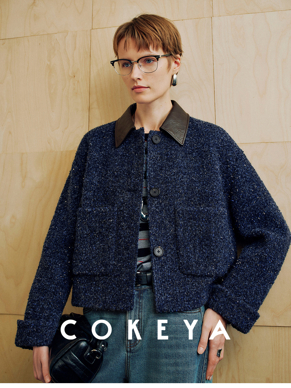 Cokeya/ "Blue Galaxy Set" ~ Genuine Wool and Alpaca Wool Chanel-Style Jacket for Women, Spring Skirt Set