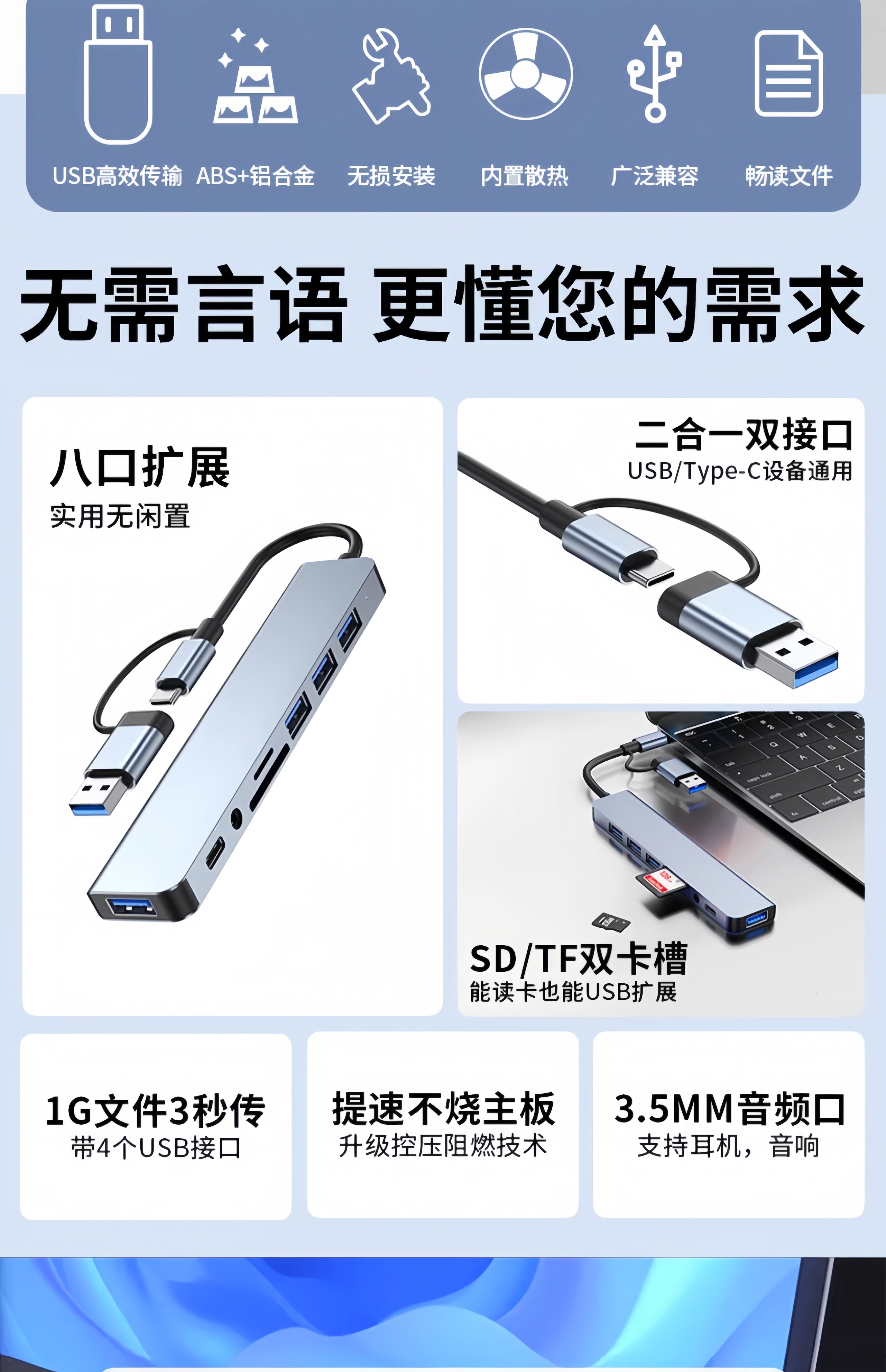 Color Classification 4-in-1 Multi-Function Docking Station★Usb3.0+Usb2.0*3,5-in-1 Multi-Function Docking Station★Usb3.0+Usb2.0*2+Sd+Tf,7-in-1 Multi-Function Docking Station★Usb3.0+Usb2.0*3+Type-C+Pd,8-in-1 Multi-Function Docking Station★Usb3.0+Usb2.0*3+Sd+Tf+Type-C+3.5Mm,Type-C Interface [Grey] 4 USB High-Speed Transmission_Supports Simultaneous Use,Type-C Interface [Silver] 4 USB High-Speed Transmission_Supports Simultaneous Use,USB Interface [Gray] 4 USB High-Speed Transmission_Supports Simultaneous Use,USB Interface [Silver] 4 USB High-Speed Transmission_Supports Simultaneous Use,USB Set Type-C to USB [Gray],USB Set Type-C to USB [Silver]