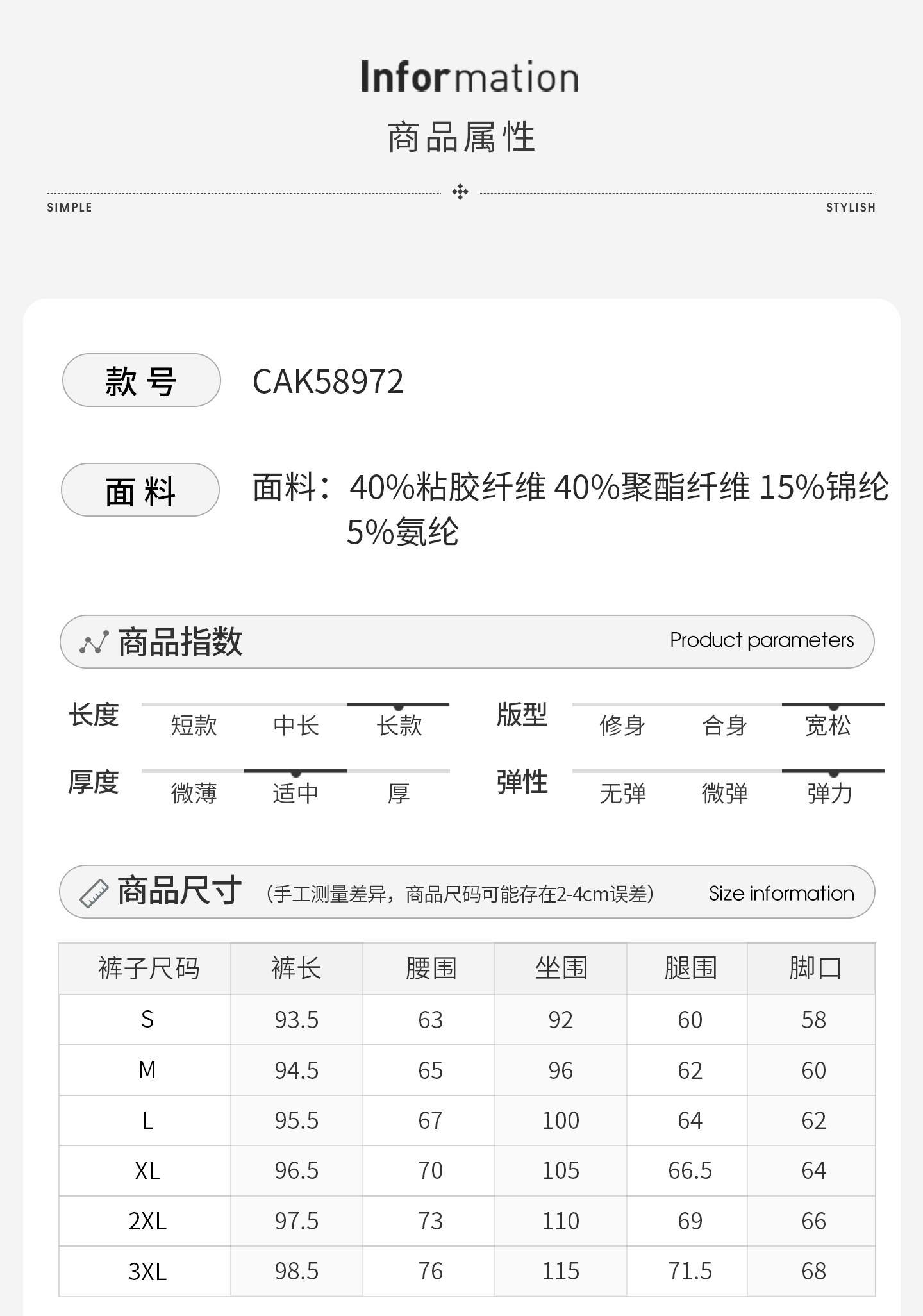 Outseam (cm) 99 cm 101.5 cm 104 cm 106.5 cm 109 cm