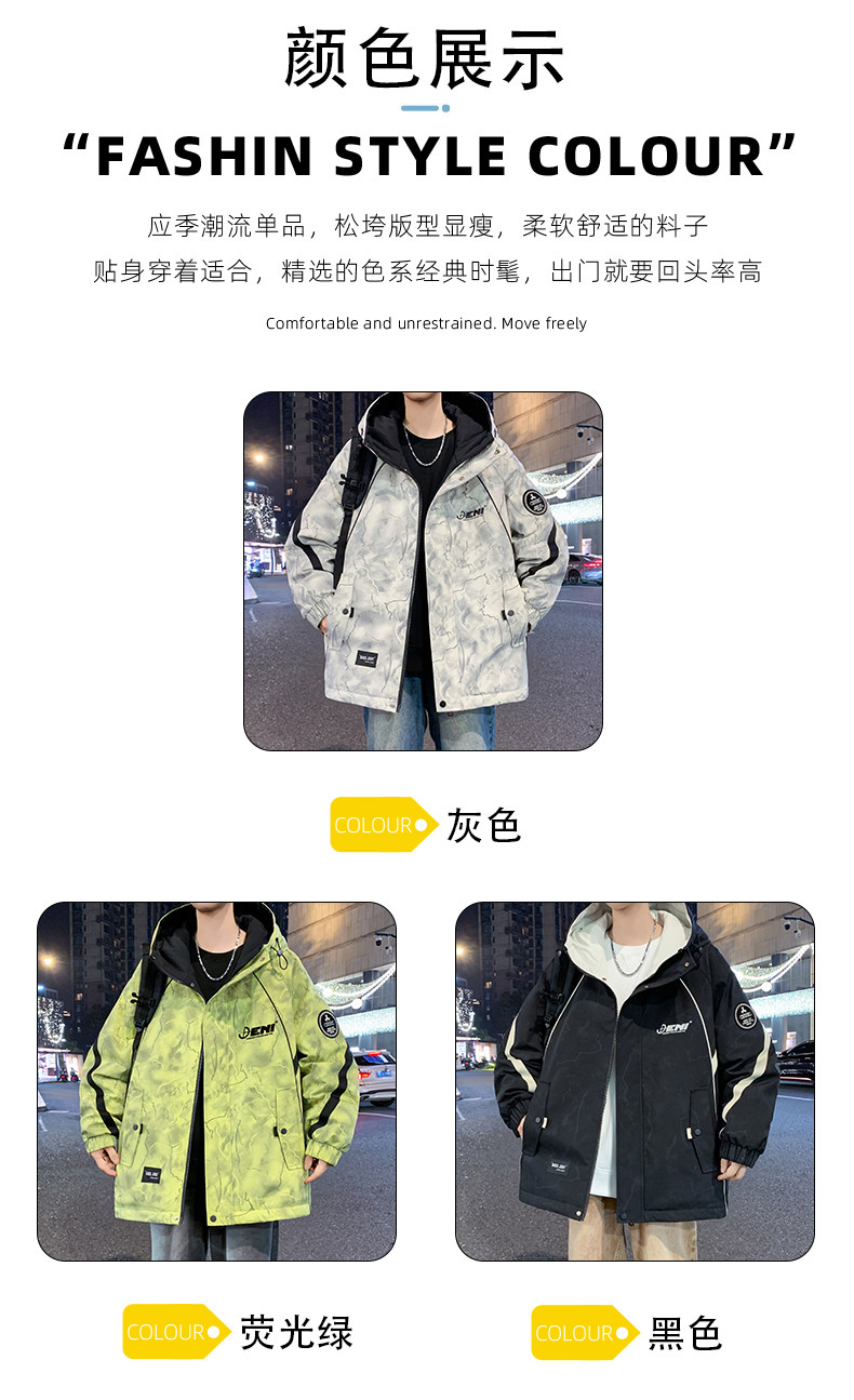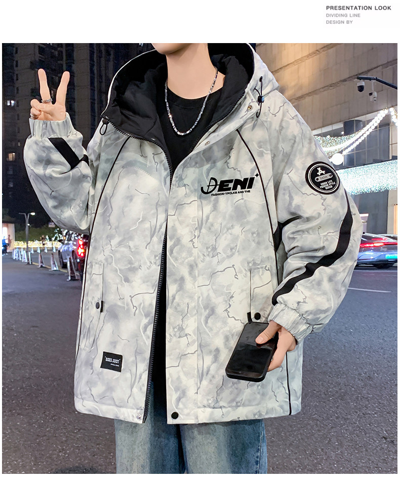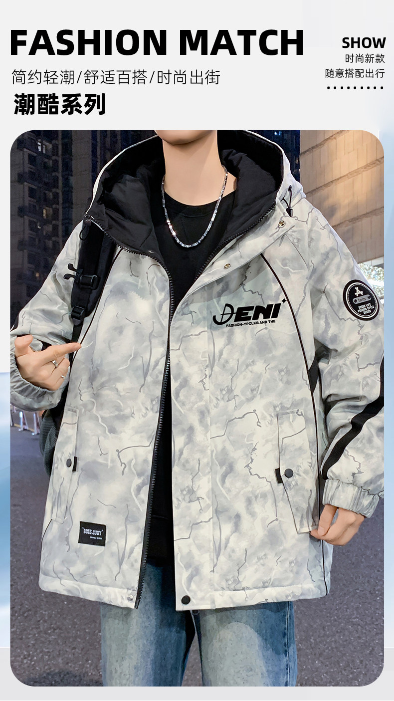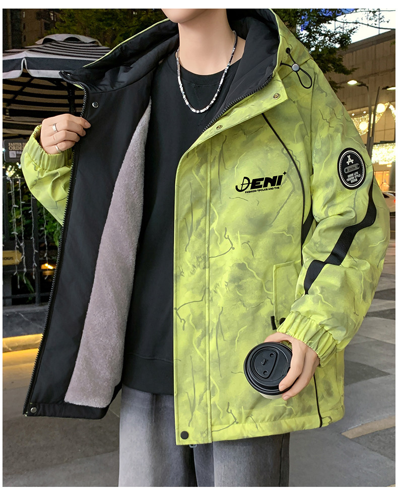 Tie-dye jacket for boys in autumn and winter plus velvet and thickened student hooded men's student teenagers handsome loose jacket