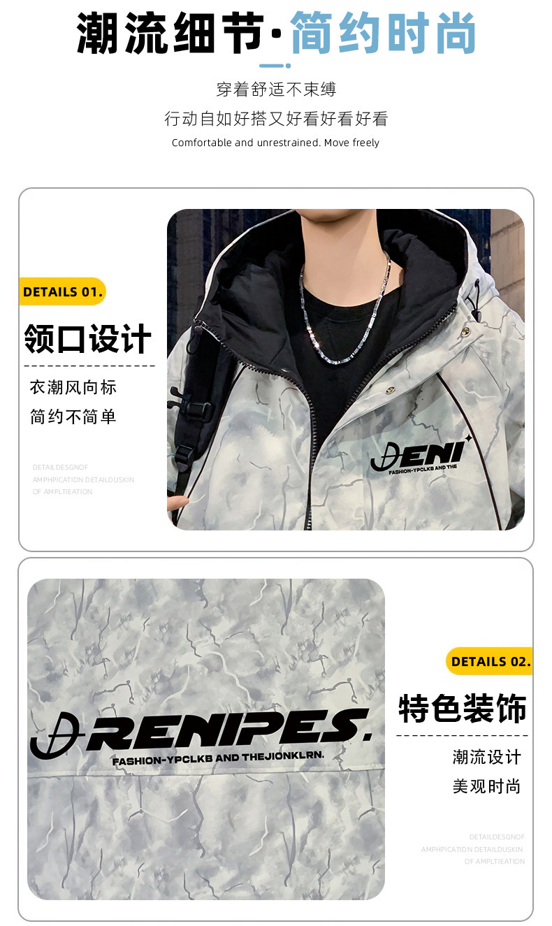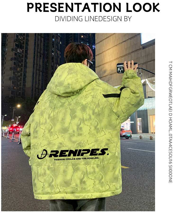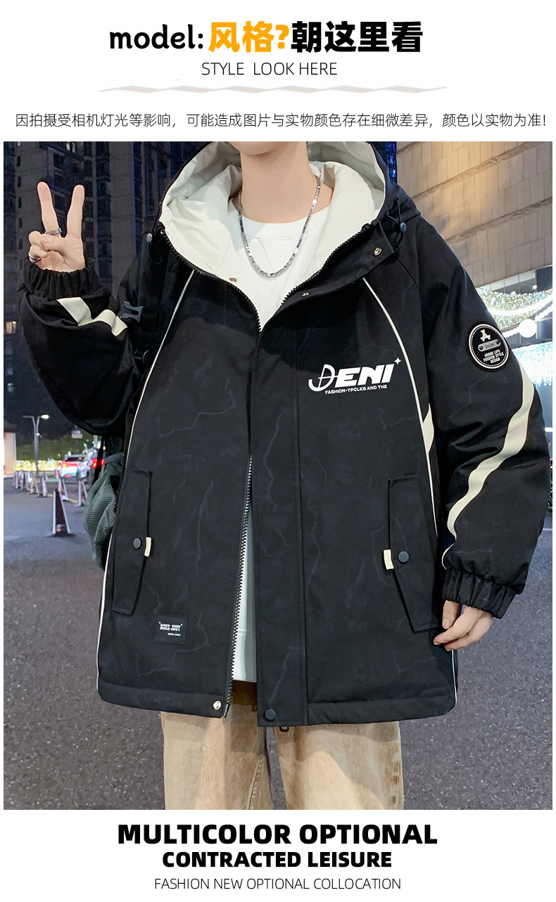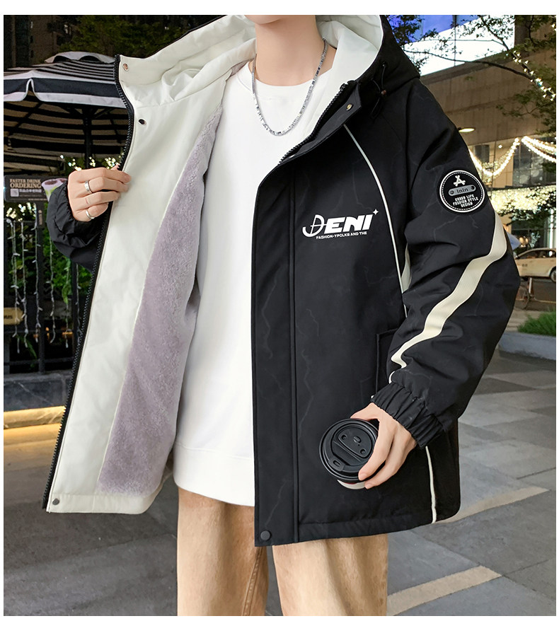 Tie-dye jacket for boys in autumn and winter plus velvet and thickened student hooded men's student teenagers handsome loose jacket