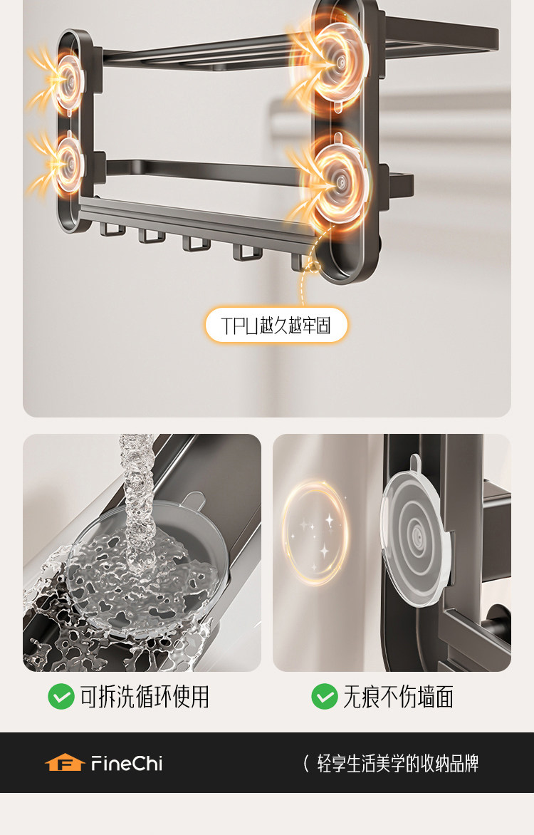Suction Cup Towel Rack Bathroom Storage Rack Integrated Hanging Rod No-Drill Toilet Bathroom Towel Rack Set Storage Rack