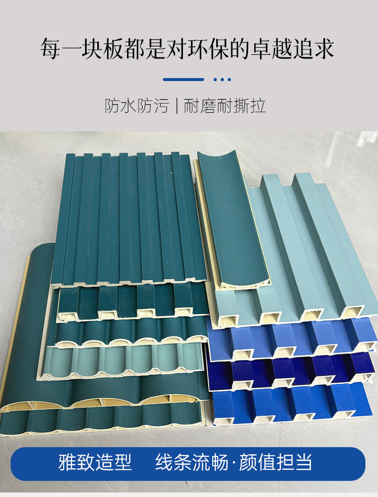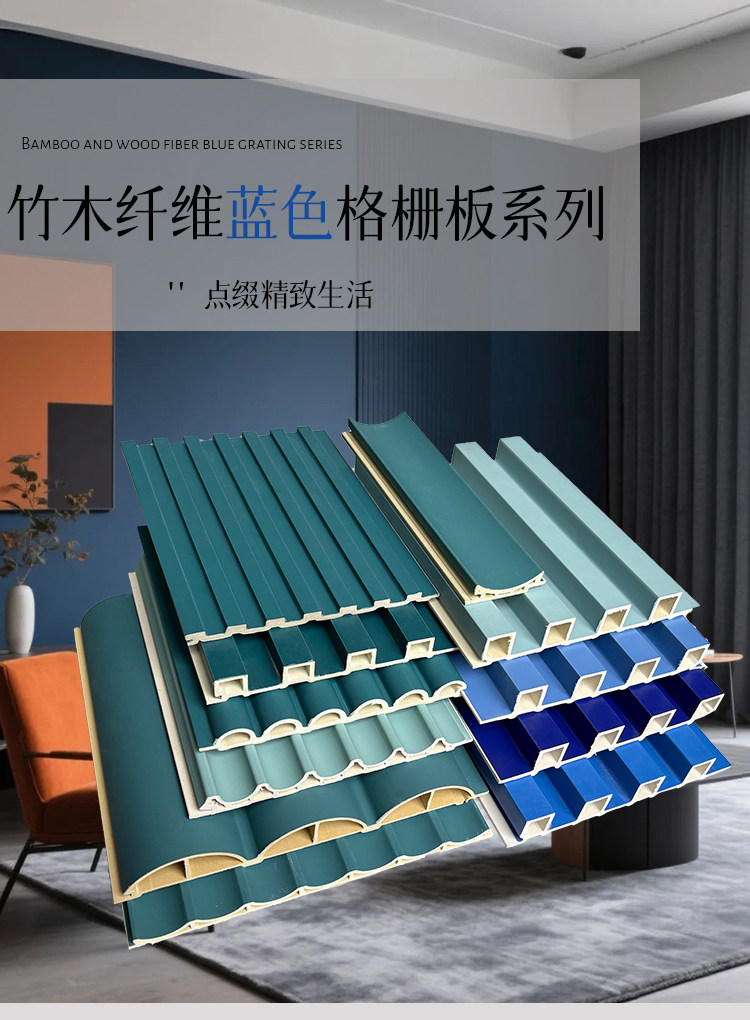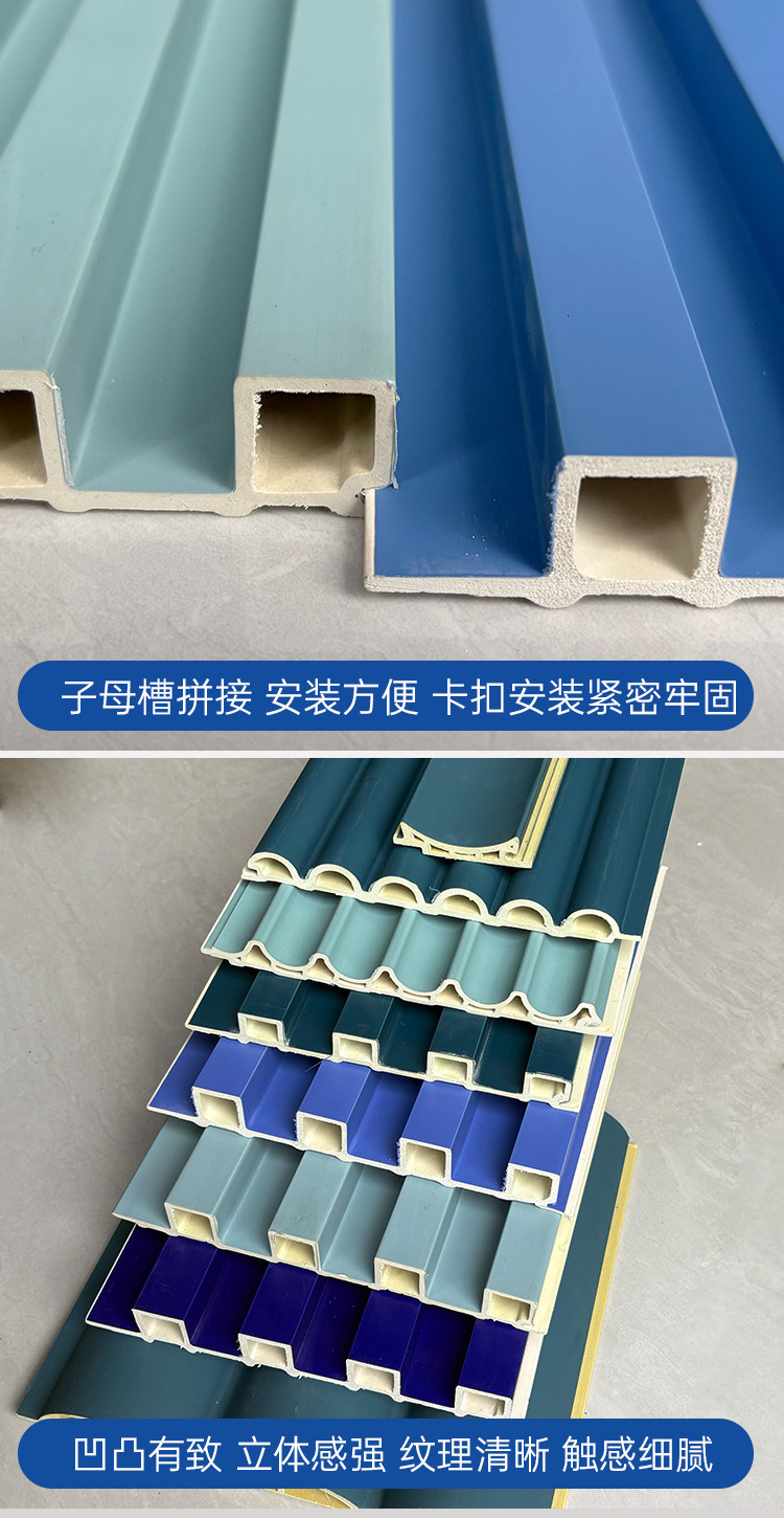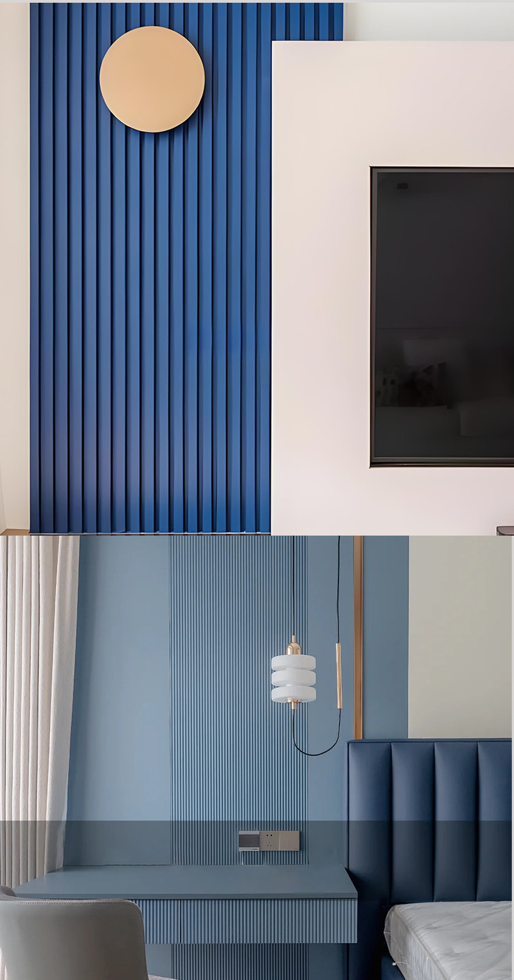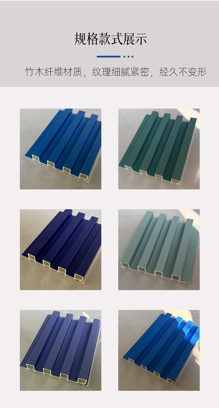 Public Security Blue Bamboo Wood Fiber Grille Board, Dark Blue Great Wall Board, Background Wall, Concave-Convex Pvc Wall Panel, Ecological Wood
