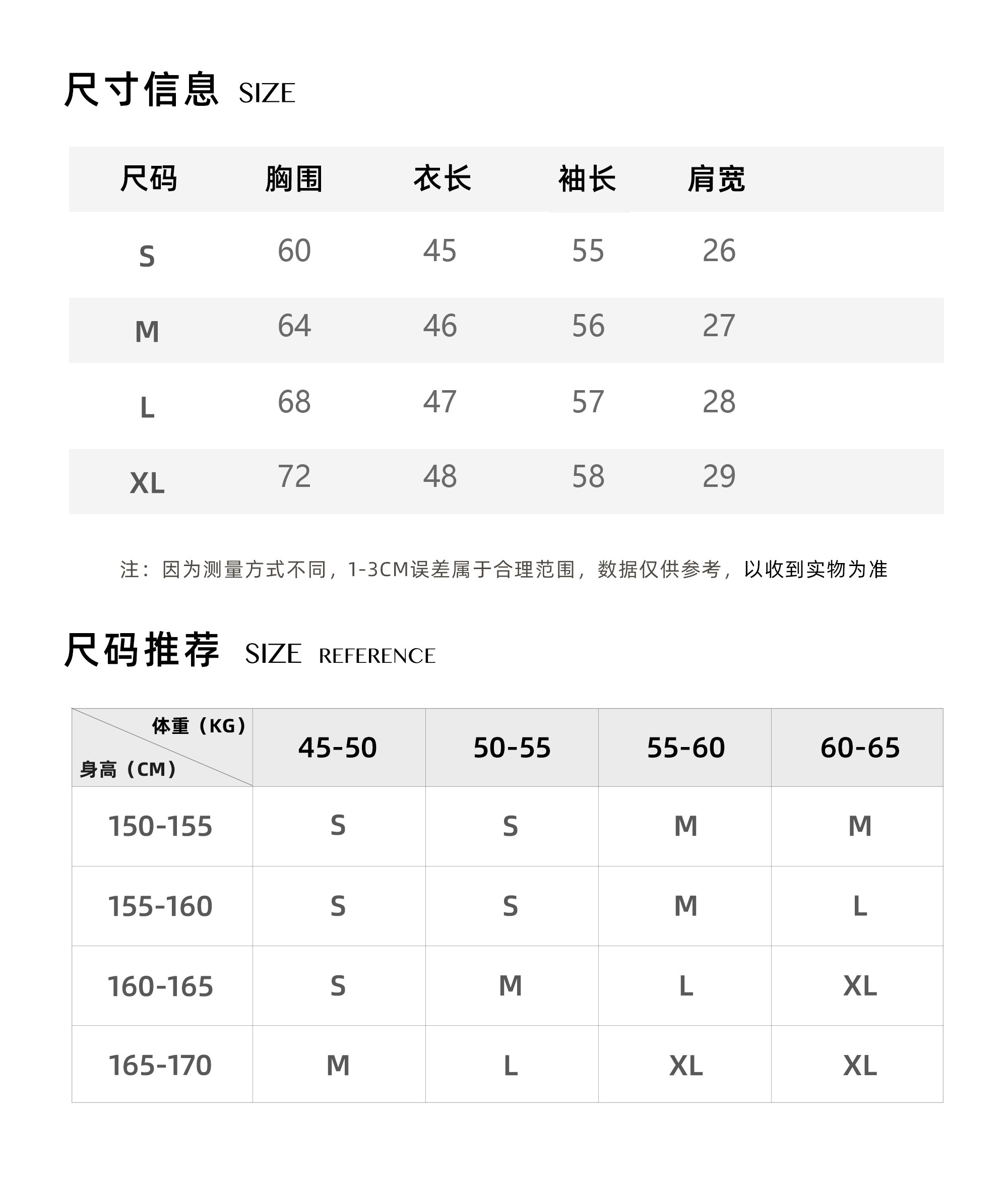 China (cm) 160-165/84-86 165-170 / 88-90 167-172 / 92-96 168-173 / 98-102 170-176 / 106-110