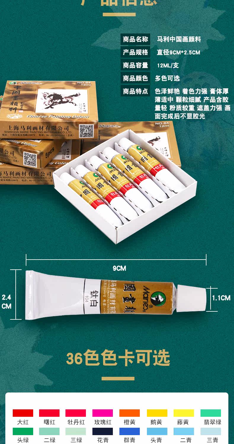 Mali Brand Chinese Painting Paint Set for Beginners, Complete Set of Tools and Materials for Primary and Secondary School Students, 12-Color, 24-Color, 36-Color Professional Ink Painting Supplies for Elementary School Students and Art Students
