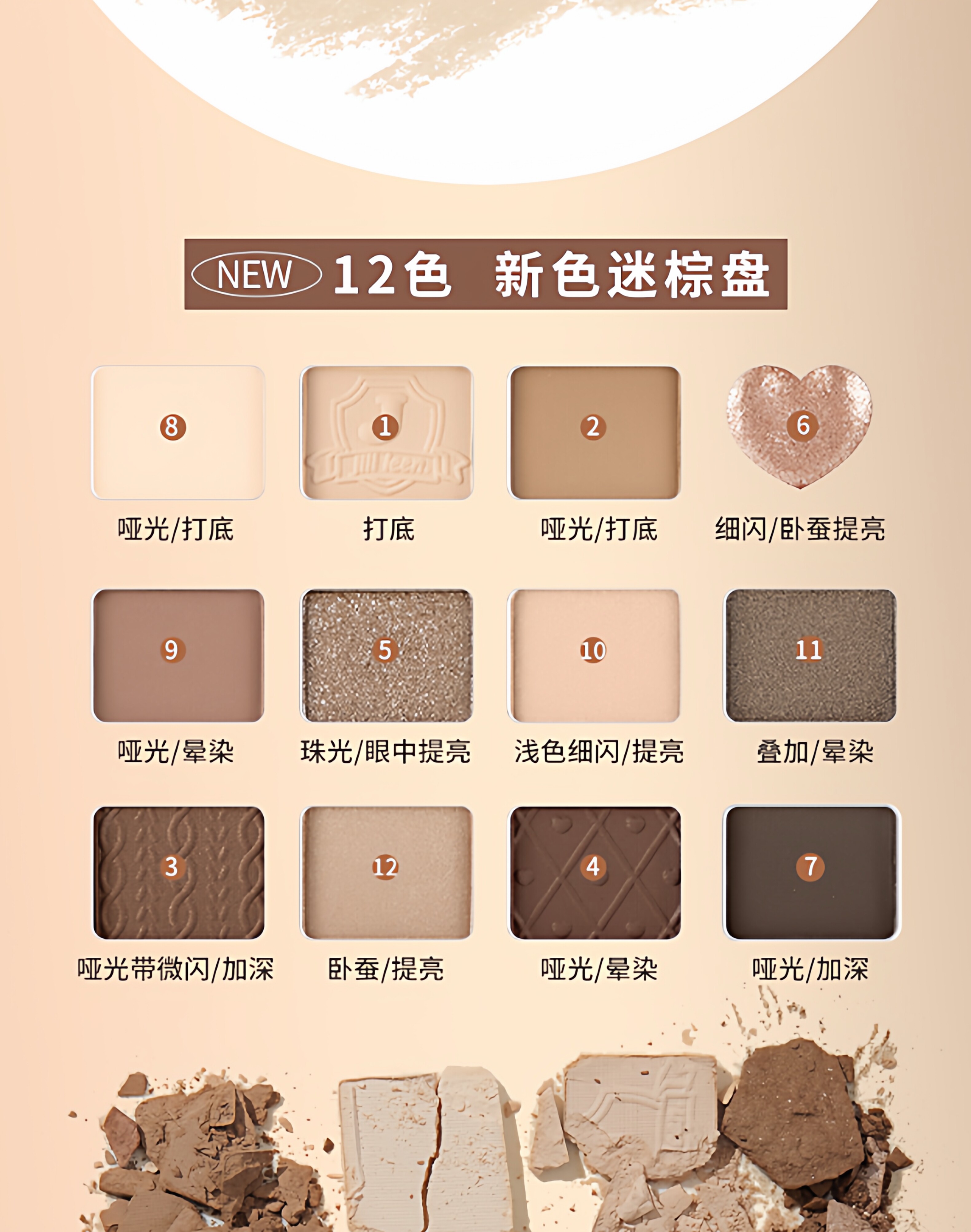 Product Name Jill Leen Beautiful 12-Color Eye Shadow Palette Light Brown