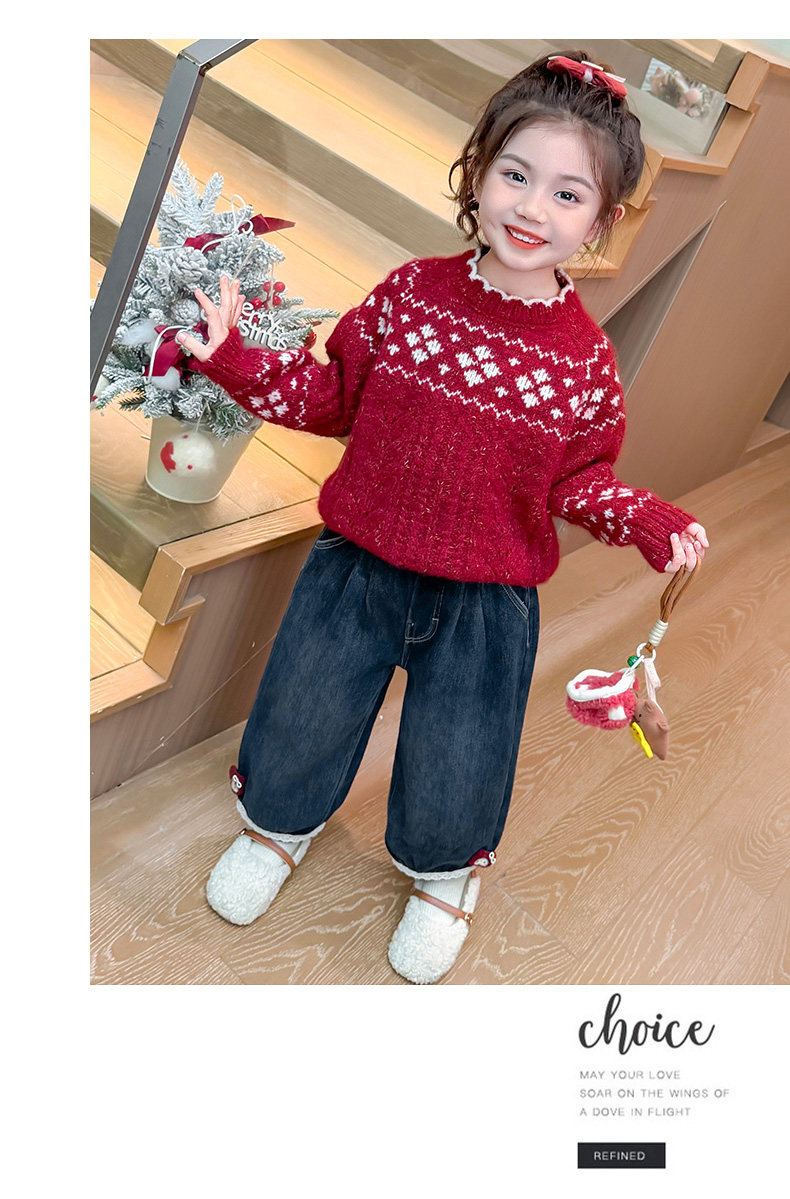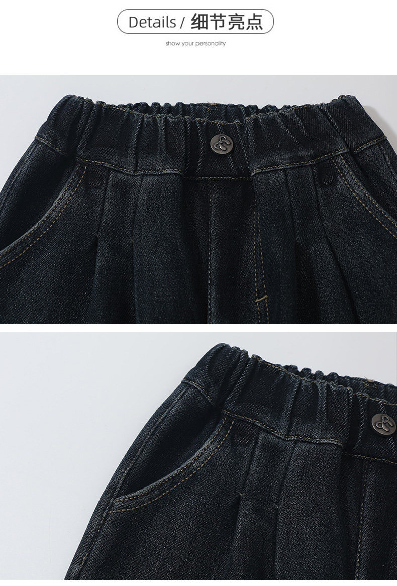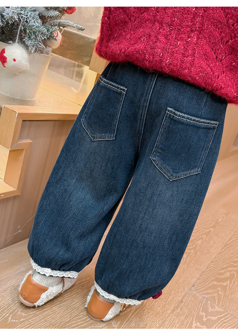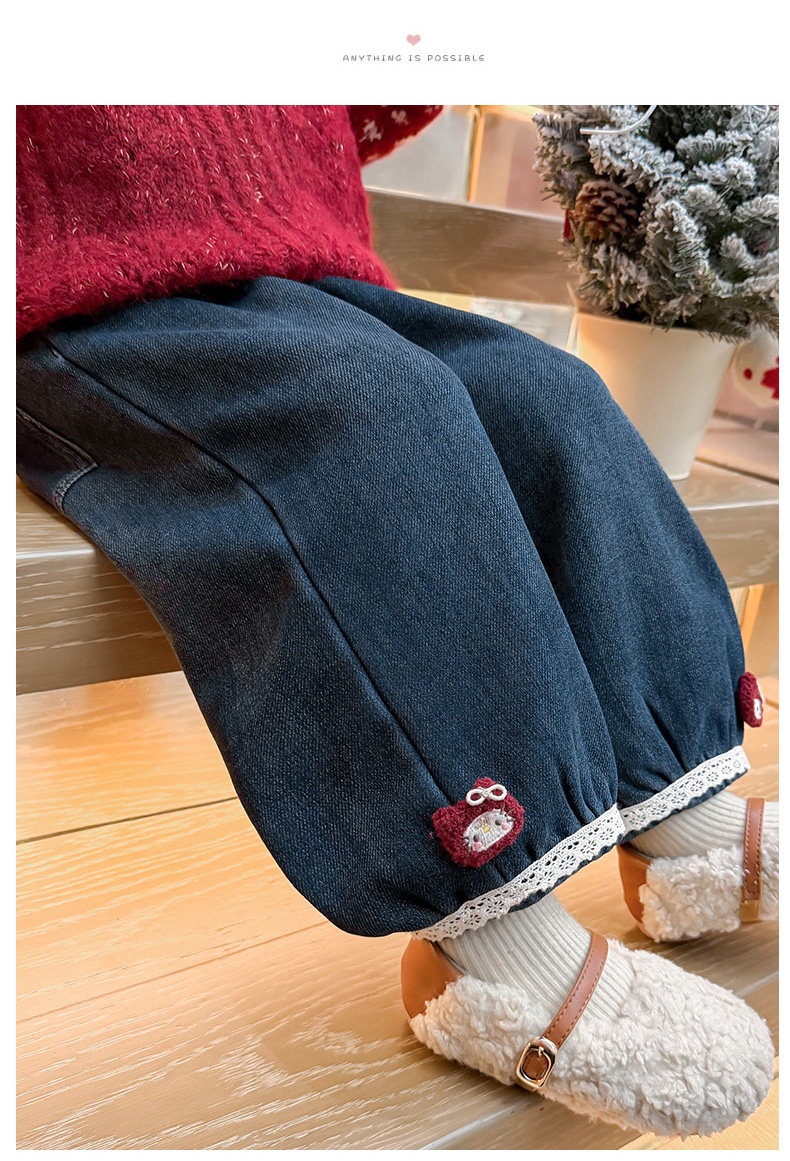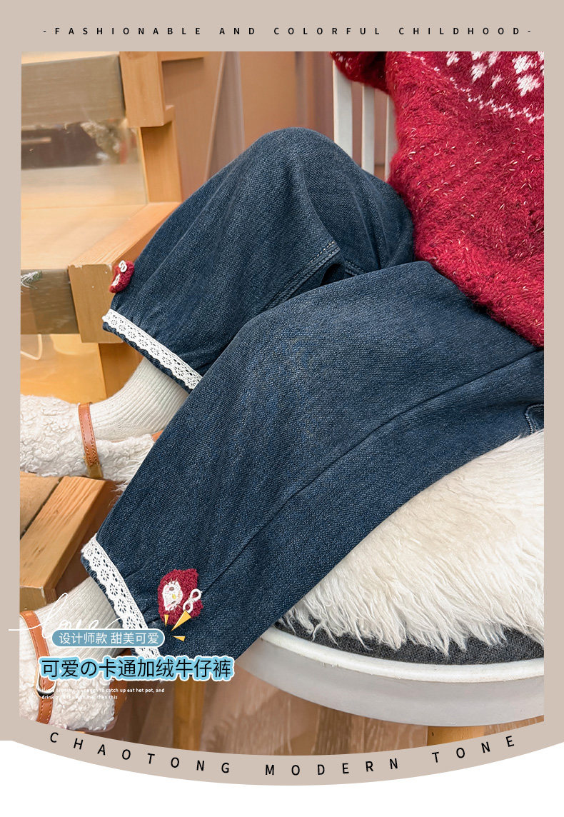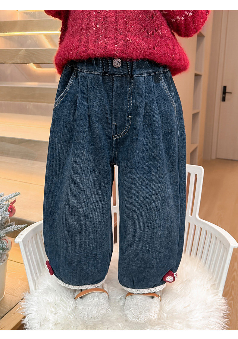 [One-Piece Fleece]Girls' Super Cute Fleece-Lined Jeans 2025 Autumn and Winter New Children's Thin Fleece Lantern Pants
