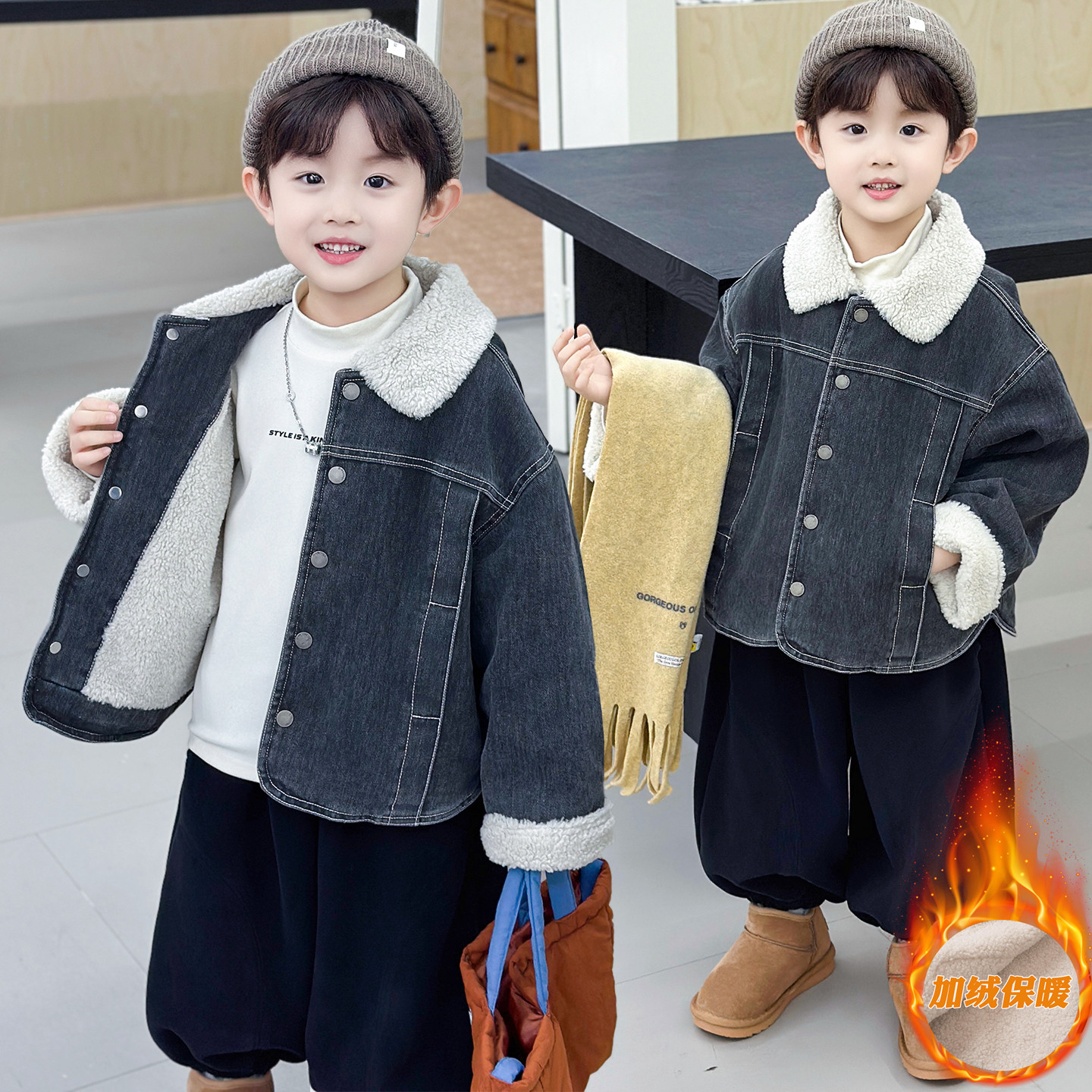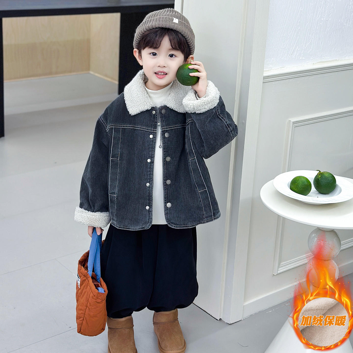 Boys' Autumn and Winter Fleece-Lined Denim Jacket 2025 New Thickened Children's Top Stylish Clothes for Boys and Toddlers Trendy