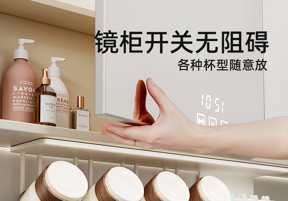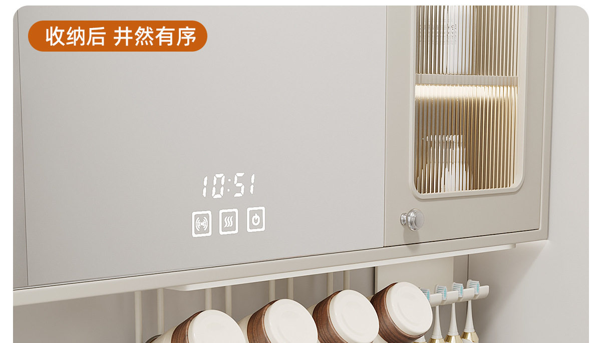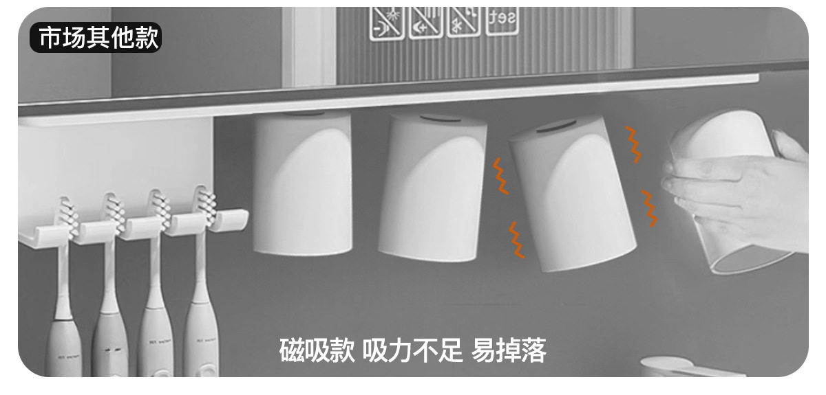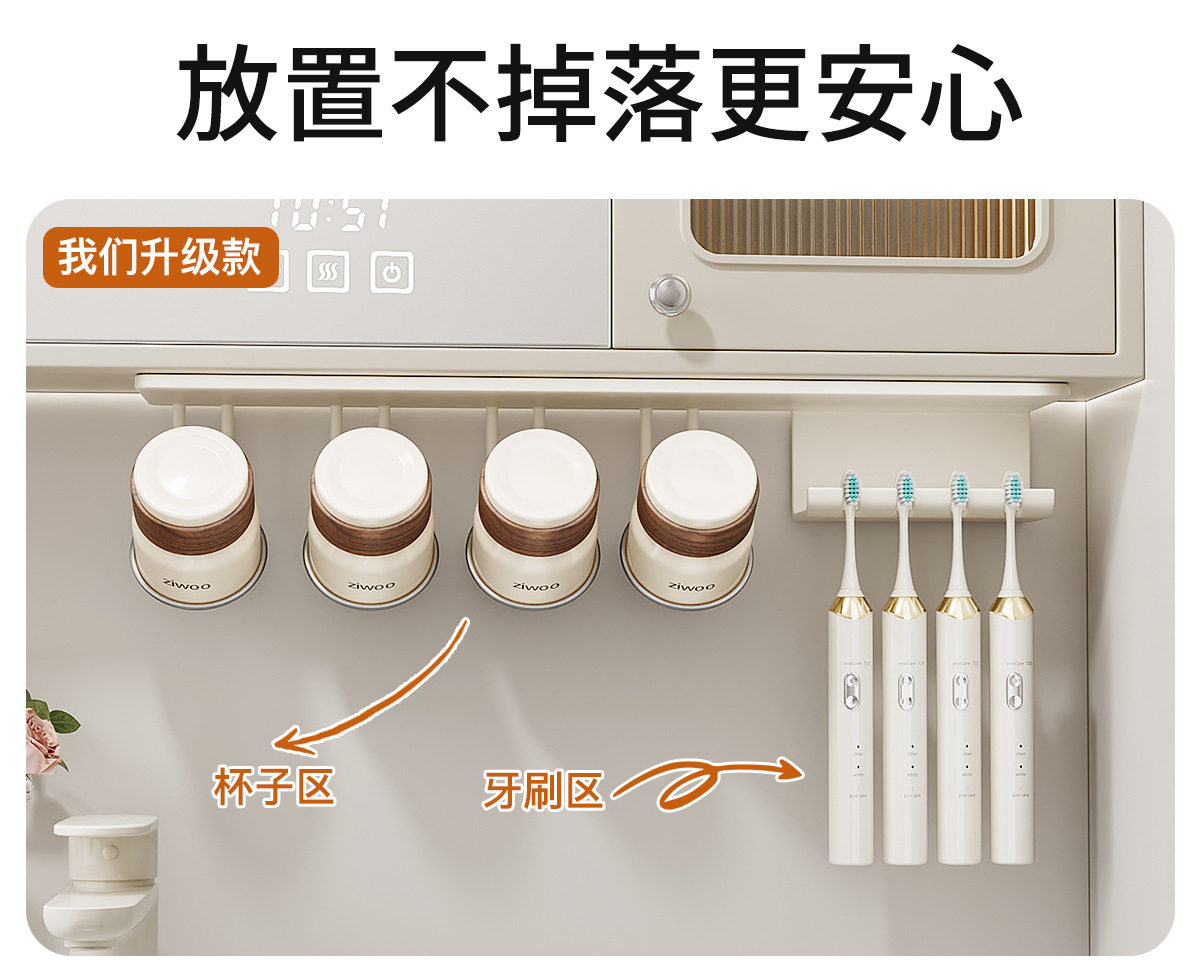 French Ziwoo Electric Toothbrush Holder, Mouthwash Cup, Under-Cabinet Mirror Cabinet, No-Drill Bathroom Stainless Steel Toothbrush Cup Holder