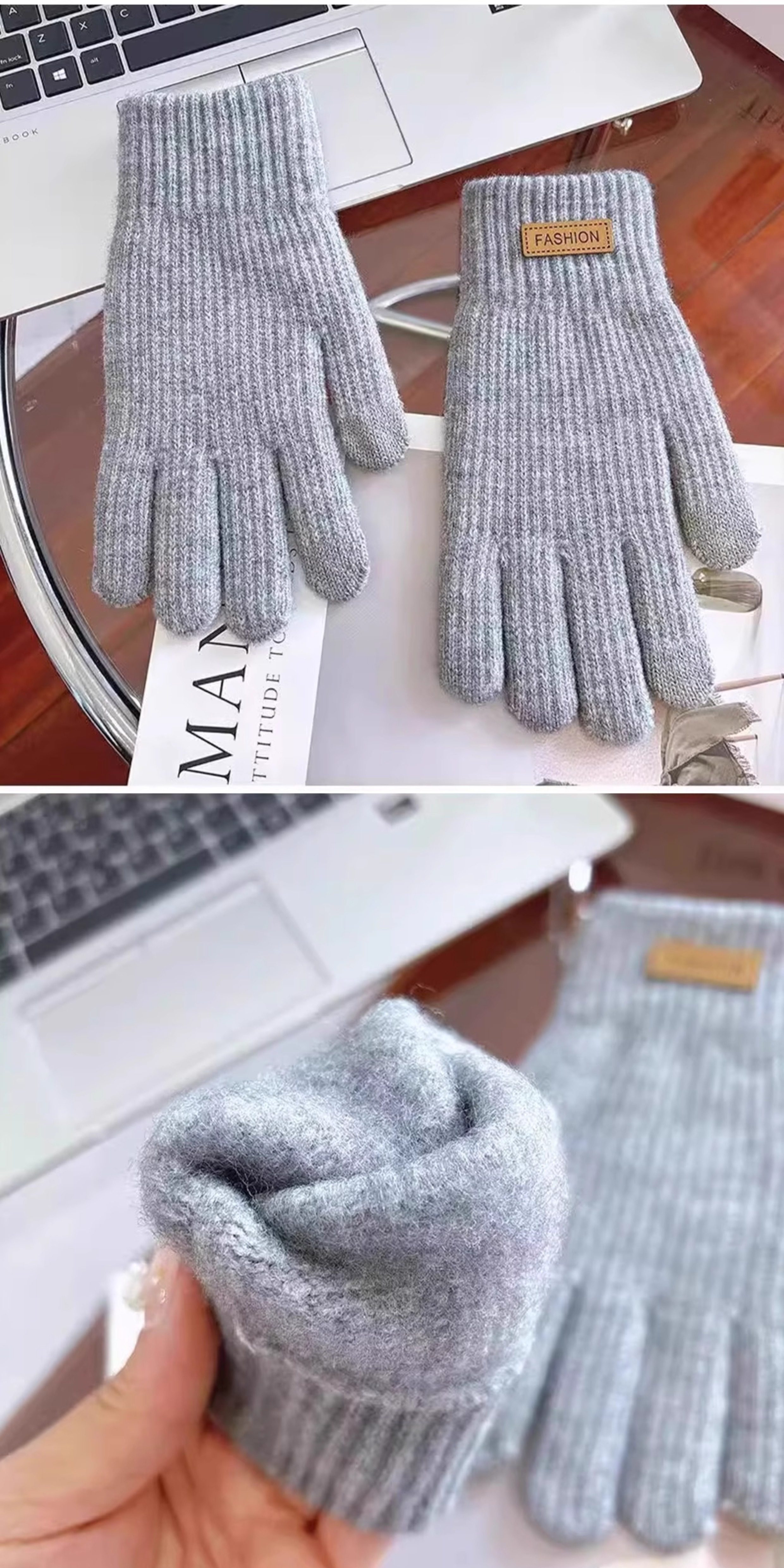 Men's touch screen cotton gloves are warm in winter, plus velvet and thickened wool knitted cycling gloves for men and women.