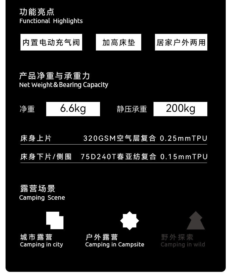 Blackdeer Electric Inflatable Bed, Exquisite Outdoor Camping Lazy Air Mattress Double Bed