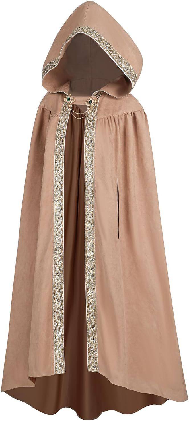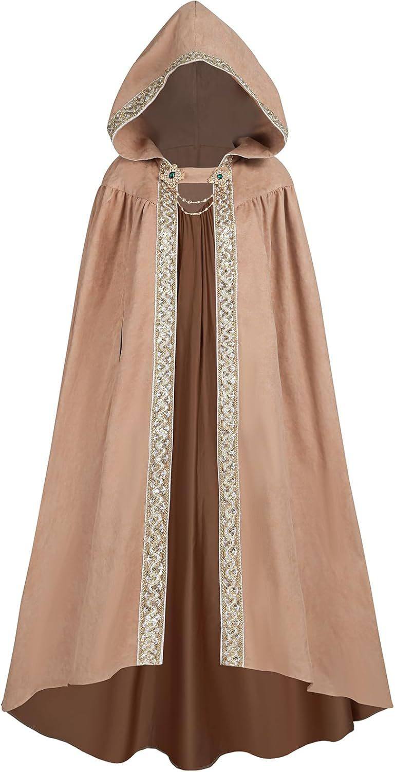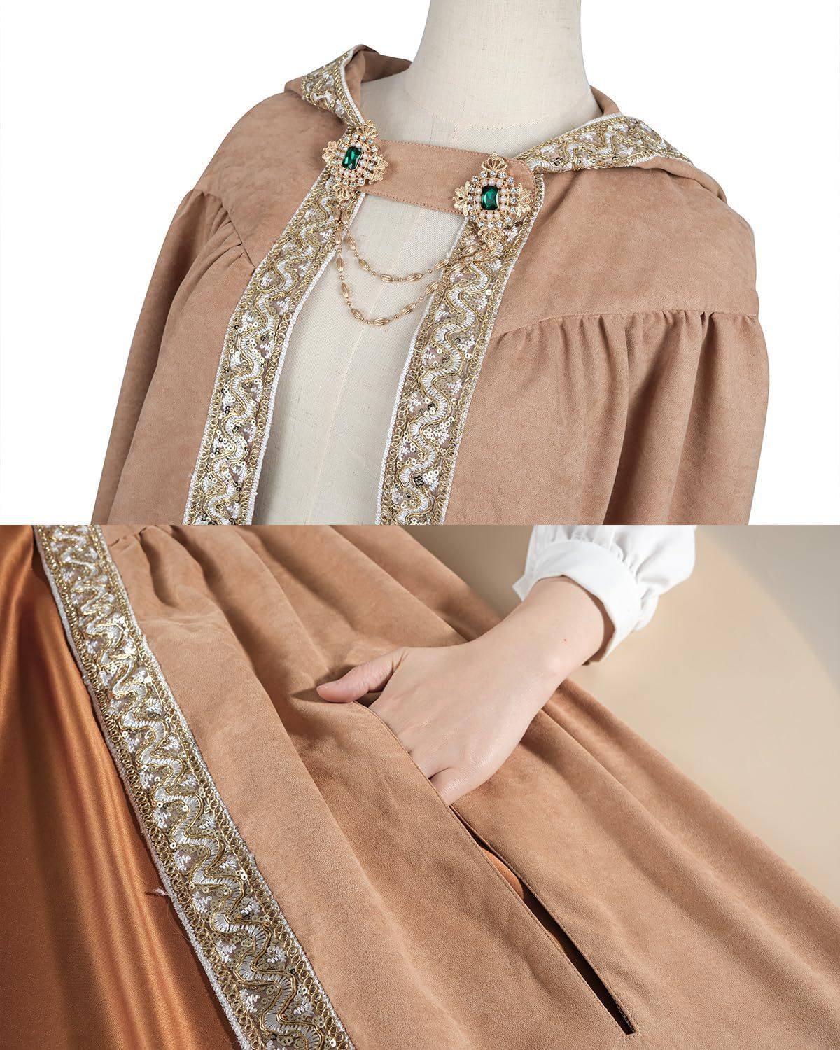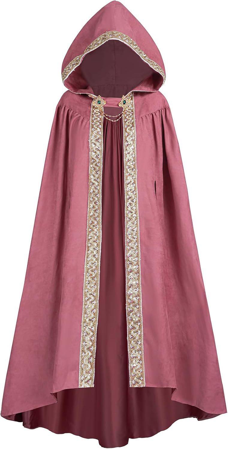 Halloween European and American Style Retro Pastoral Ribbon-Edged Hooded Cape Lace-Up Cloak Anime Costume Role-Playing Outfit