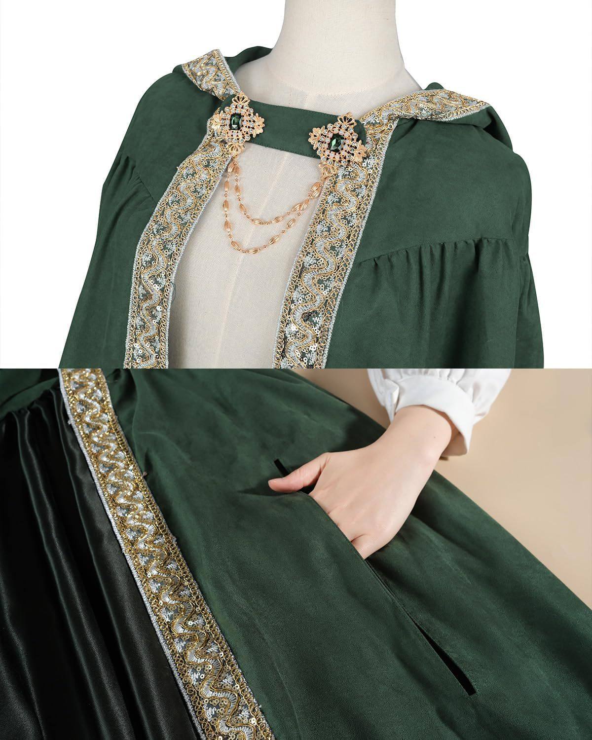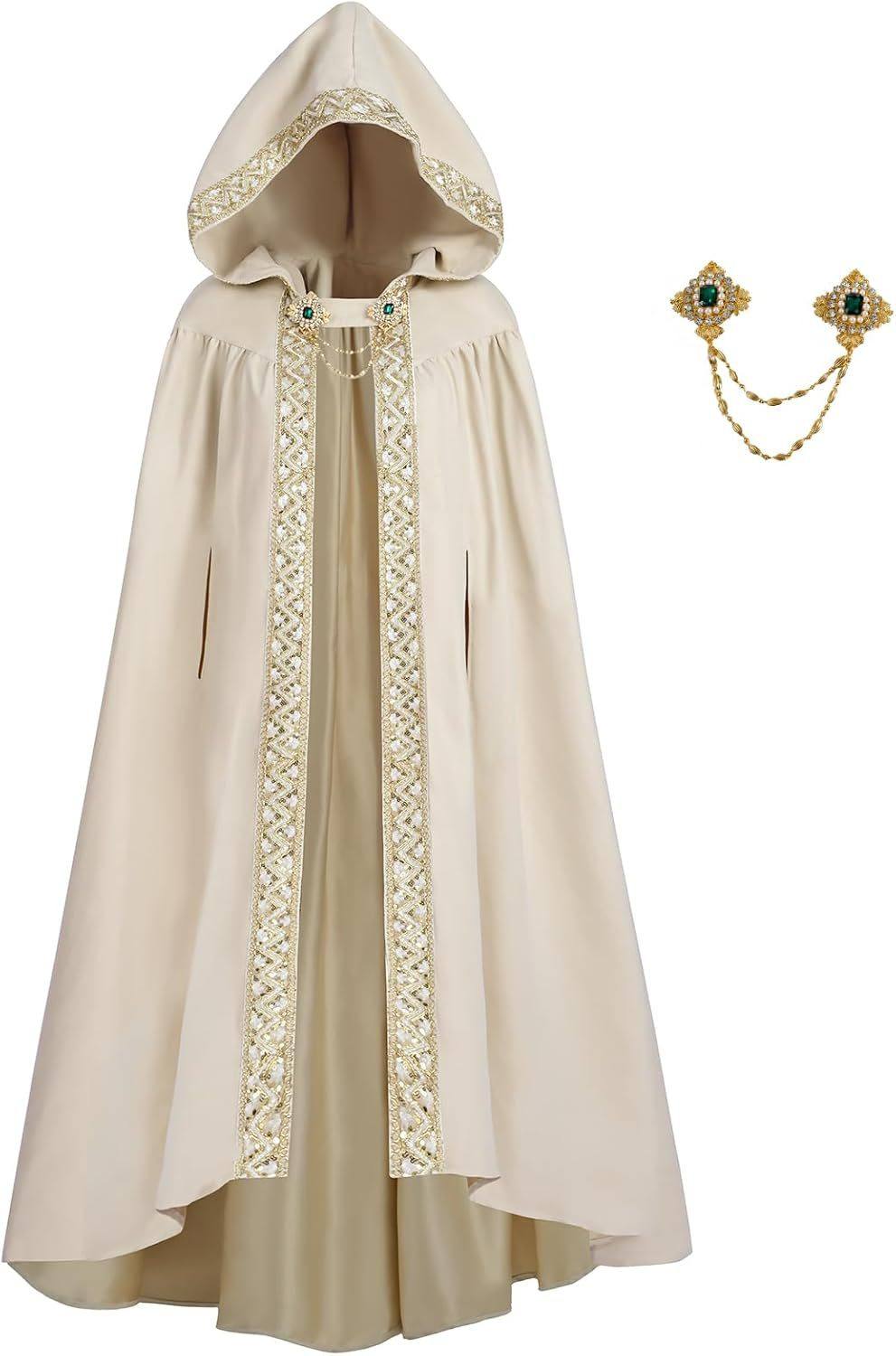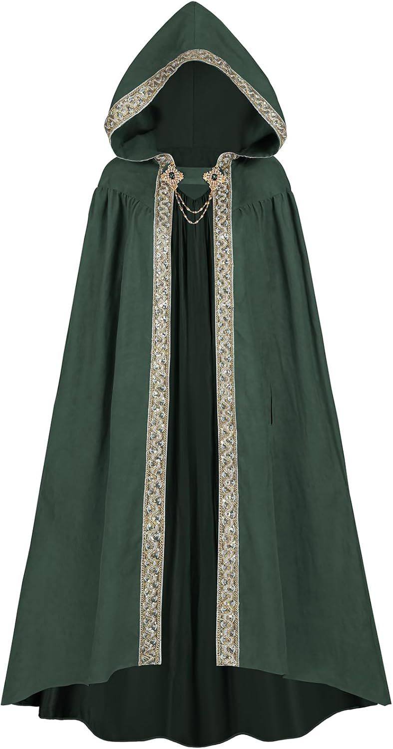 Halloween European and American Style Retro Pastoral Ribbon-Edged Hooded Cape Lace-Up Cloak Anime Costume Role-Playing Outfit