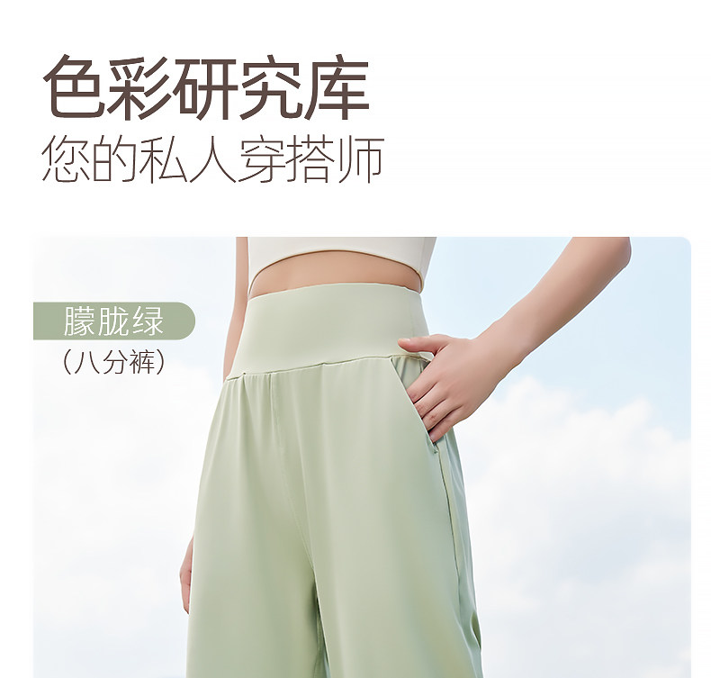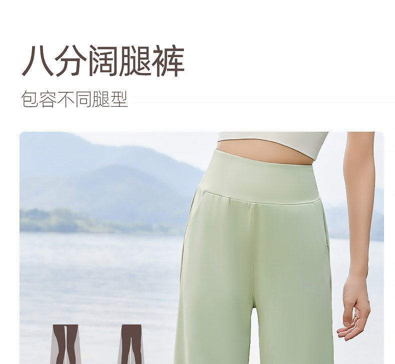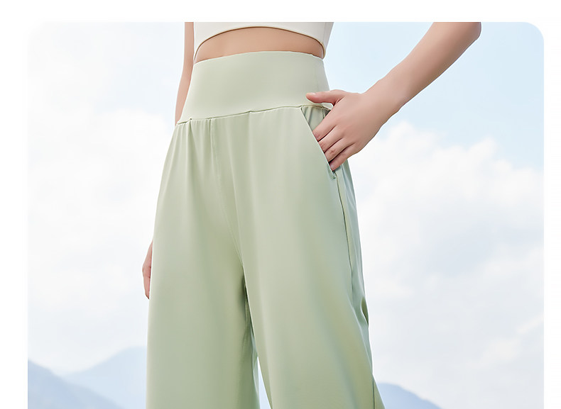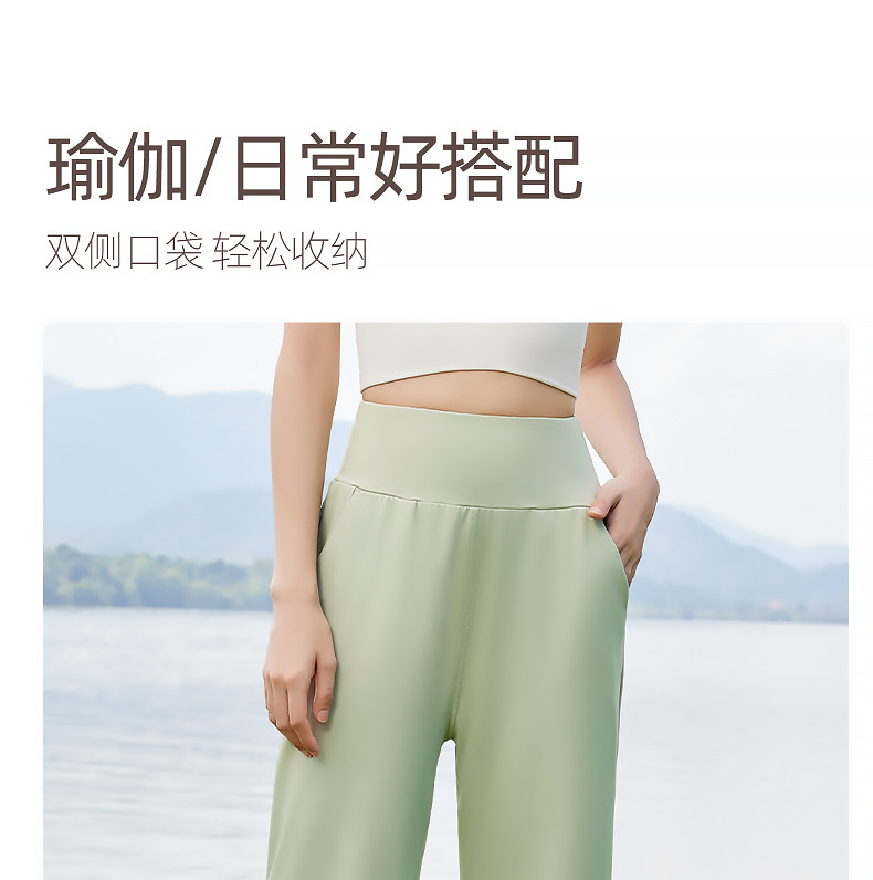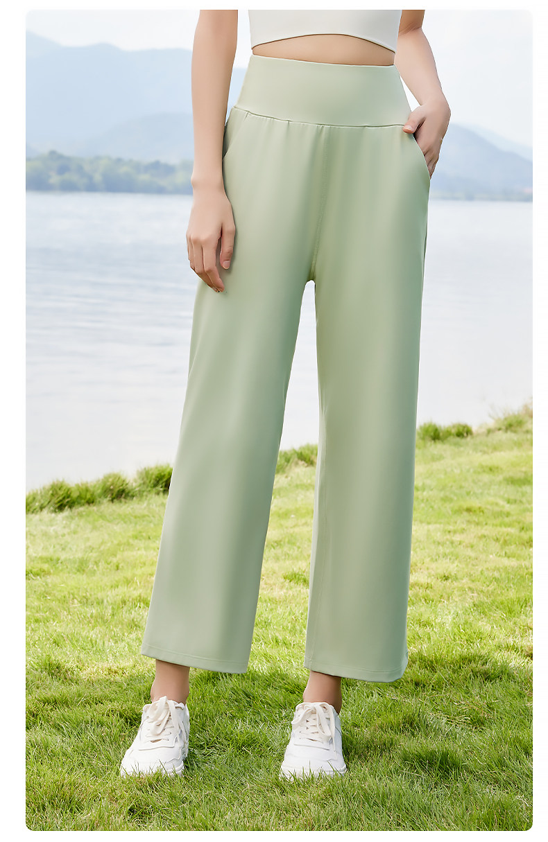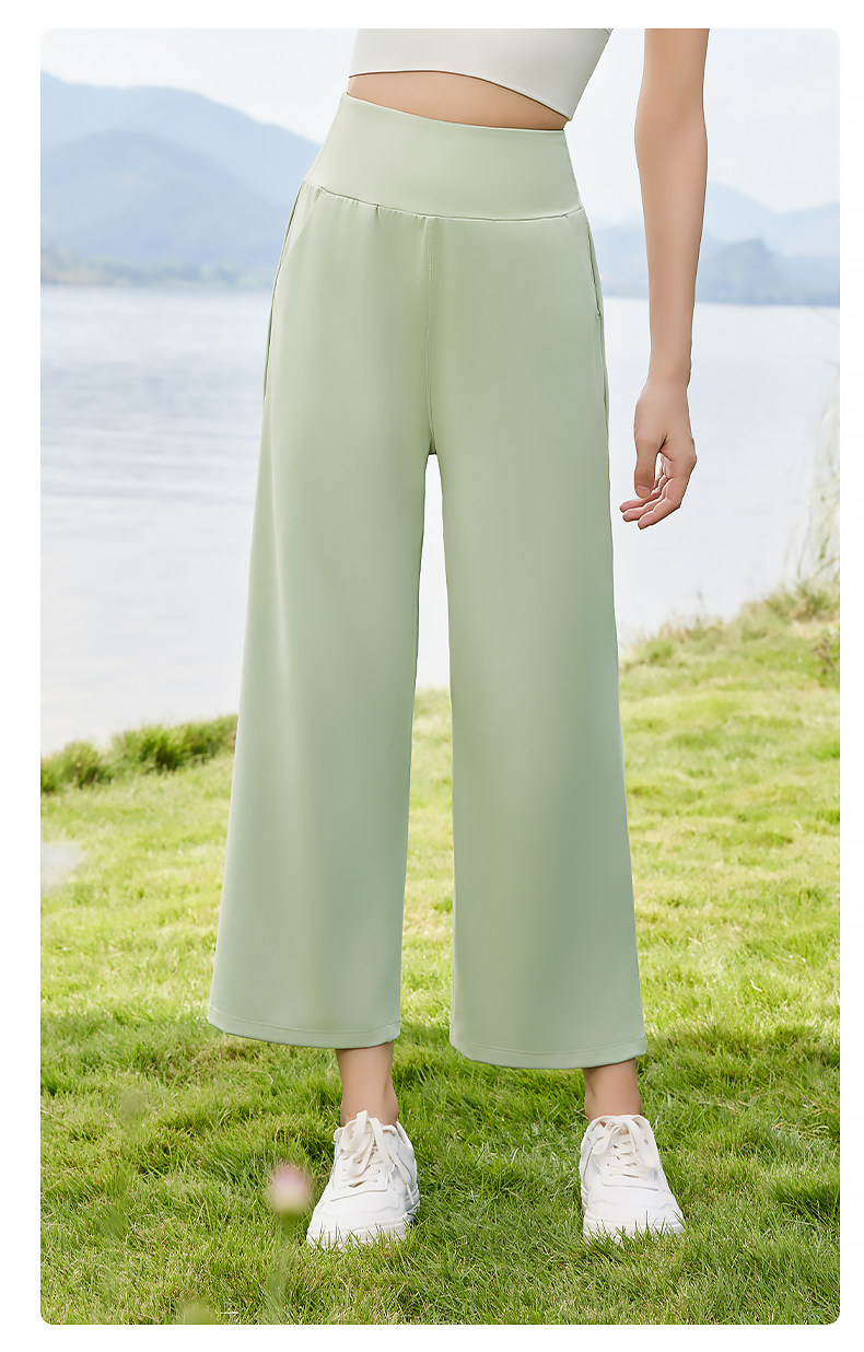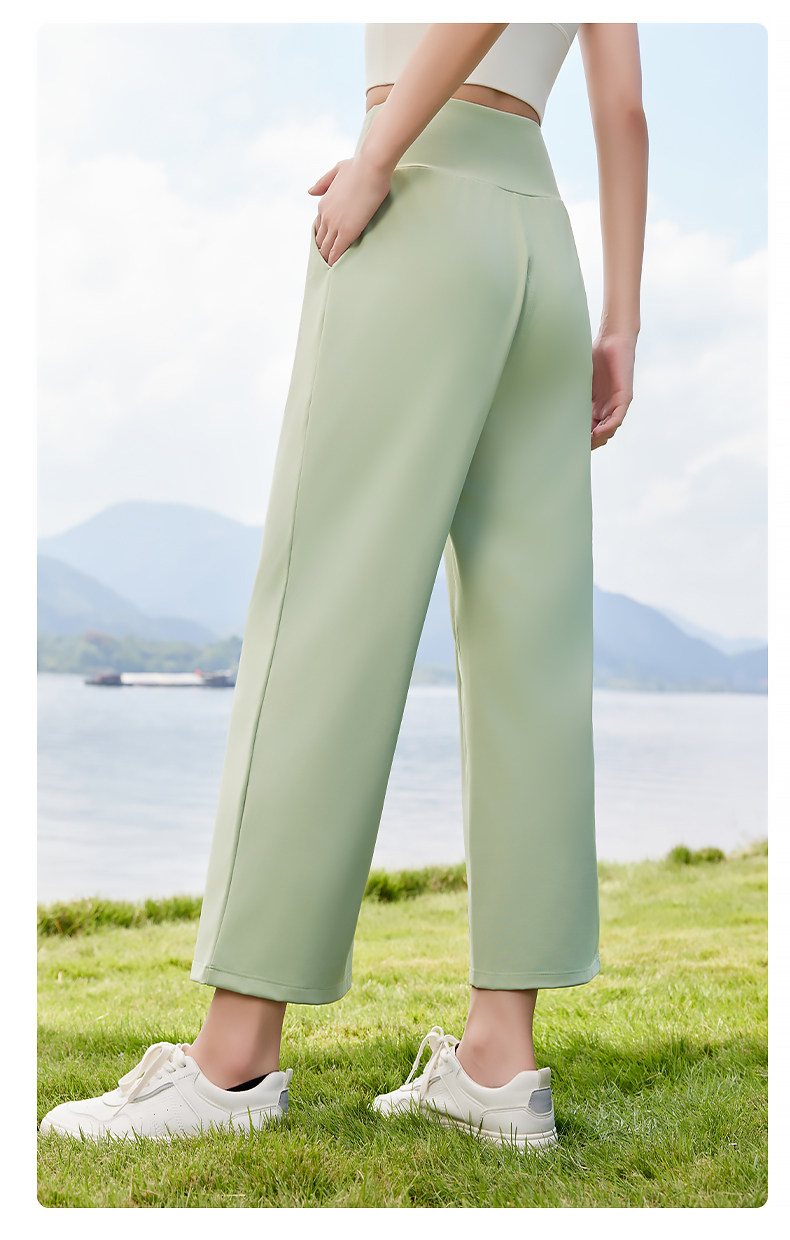 Vanmei Eight-Point Yoga Pants, High-Waisted, Loose Fit, Slimming, 2025 Autumn and Winter New Style, Wide-Leg Straight Pants with Pockets