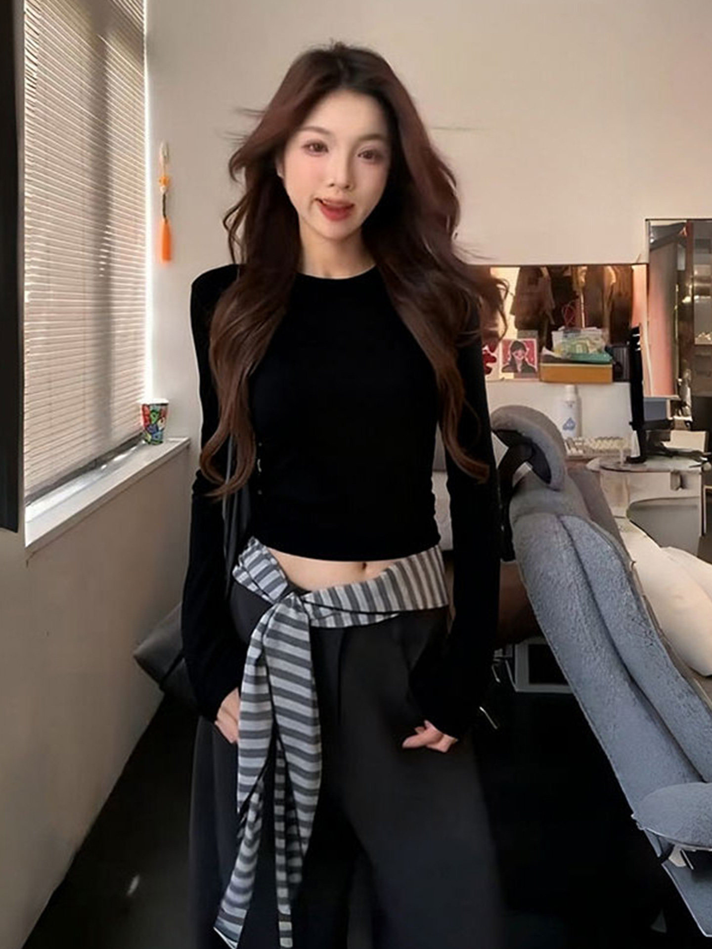 American-Style Tight-Fitting Long-Sleeve T-Shirt for Women, Super Stylish and Versatile, Slim-Fit Short Top for Autumn and Winter