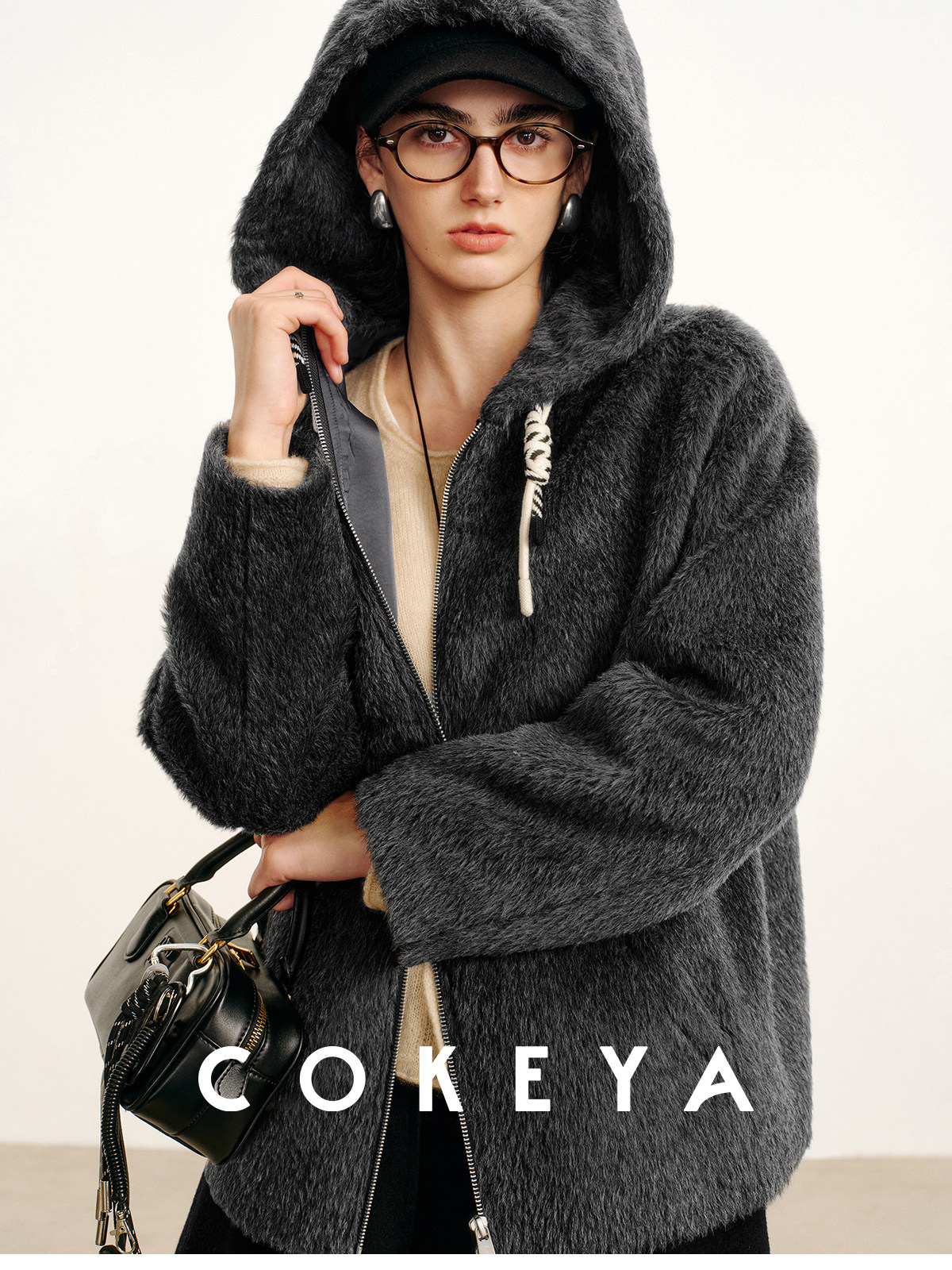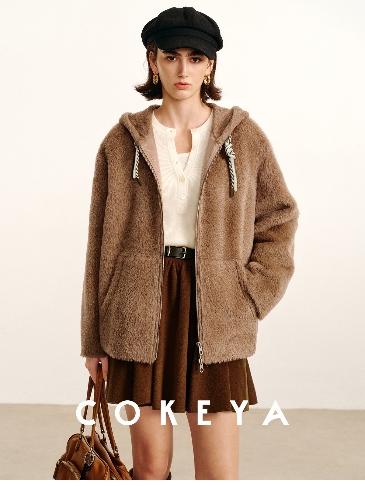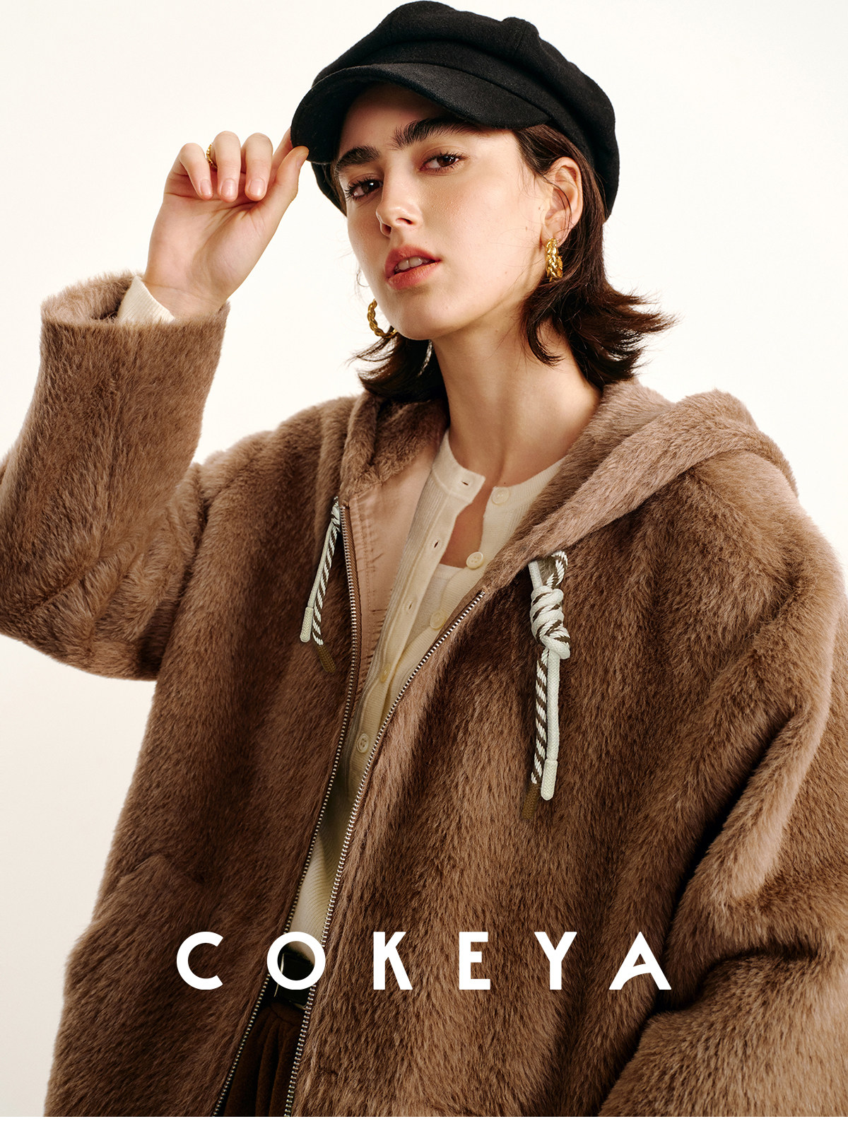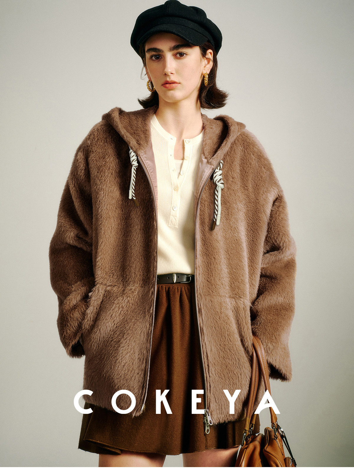 Cokeya/Bagel Coat~ Barn Style Alpaca Wool Hooded Loose Long Sleeve Woolen Coat for Women Spring