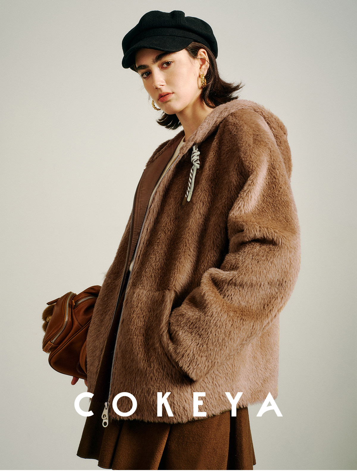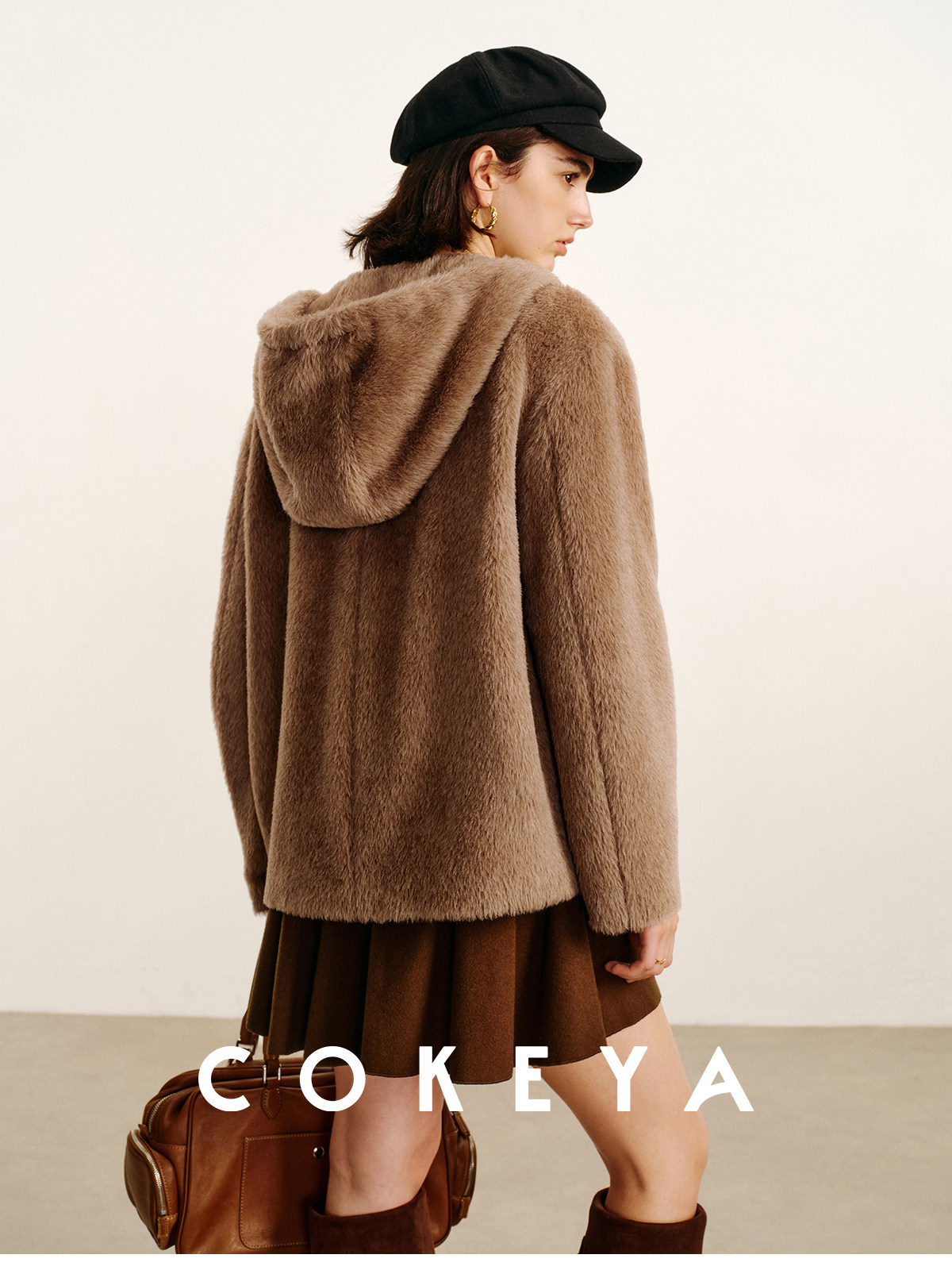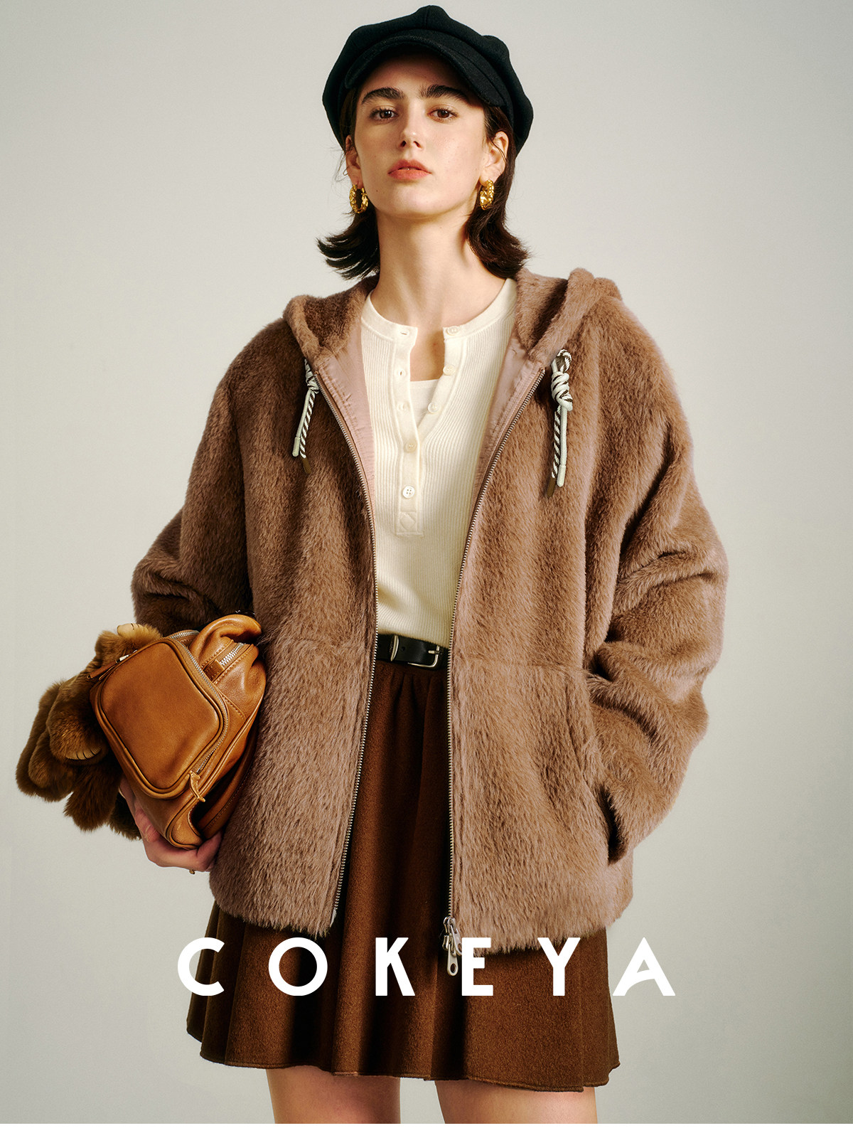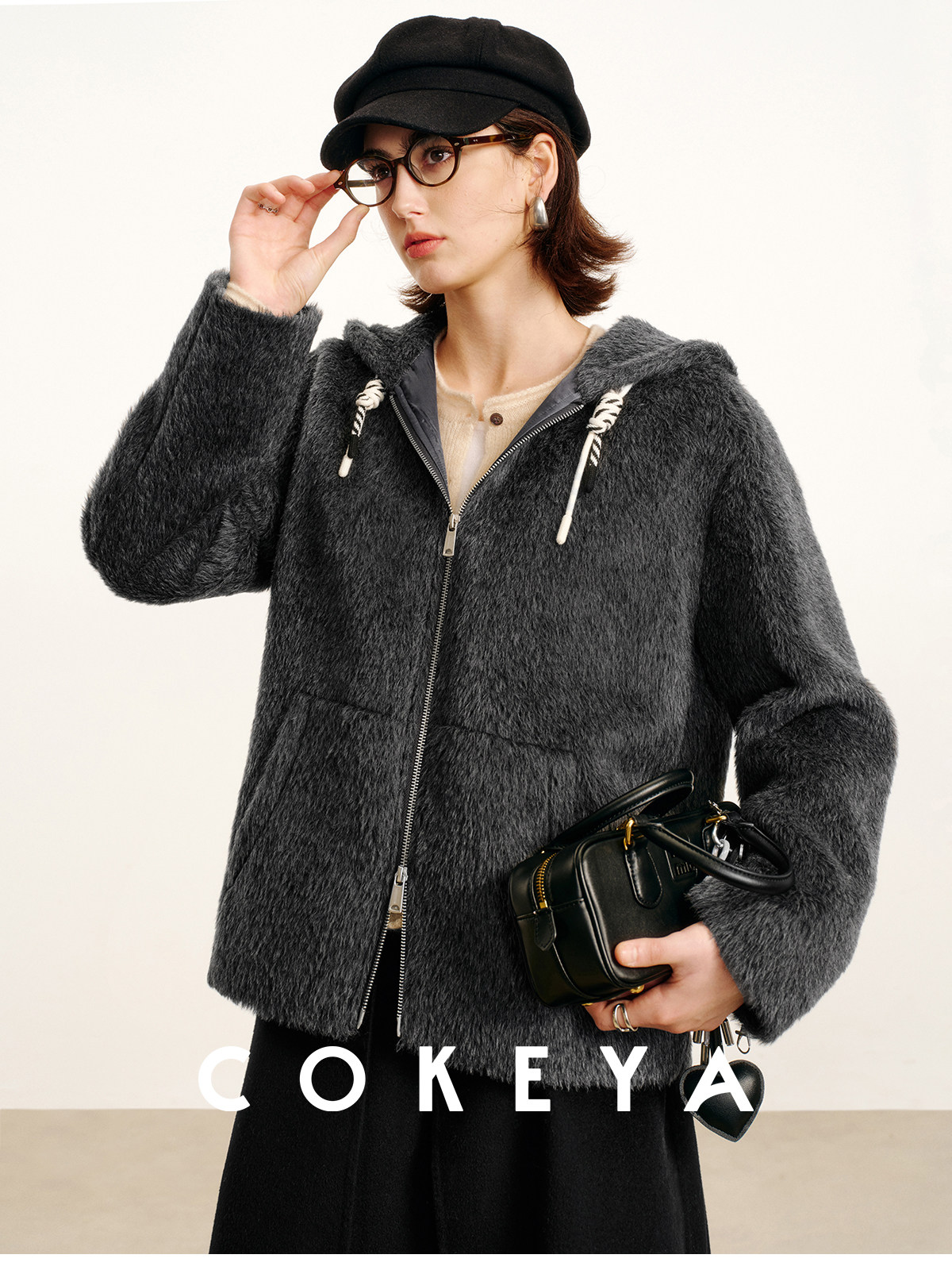 Cokeya/Bagel Coat~ Barn Style Alpaca Wool Hooded Loose Long Sleeve Woolen Coat for Women Spring