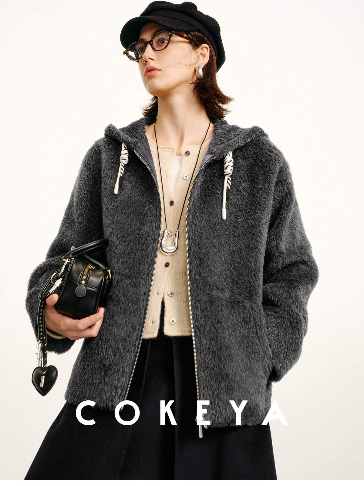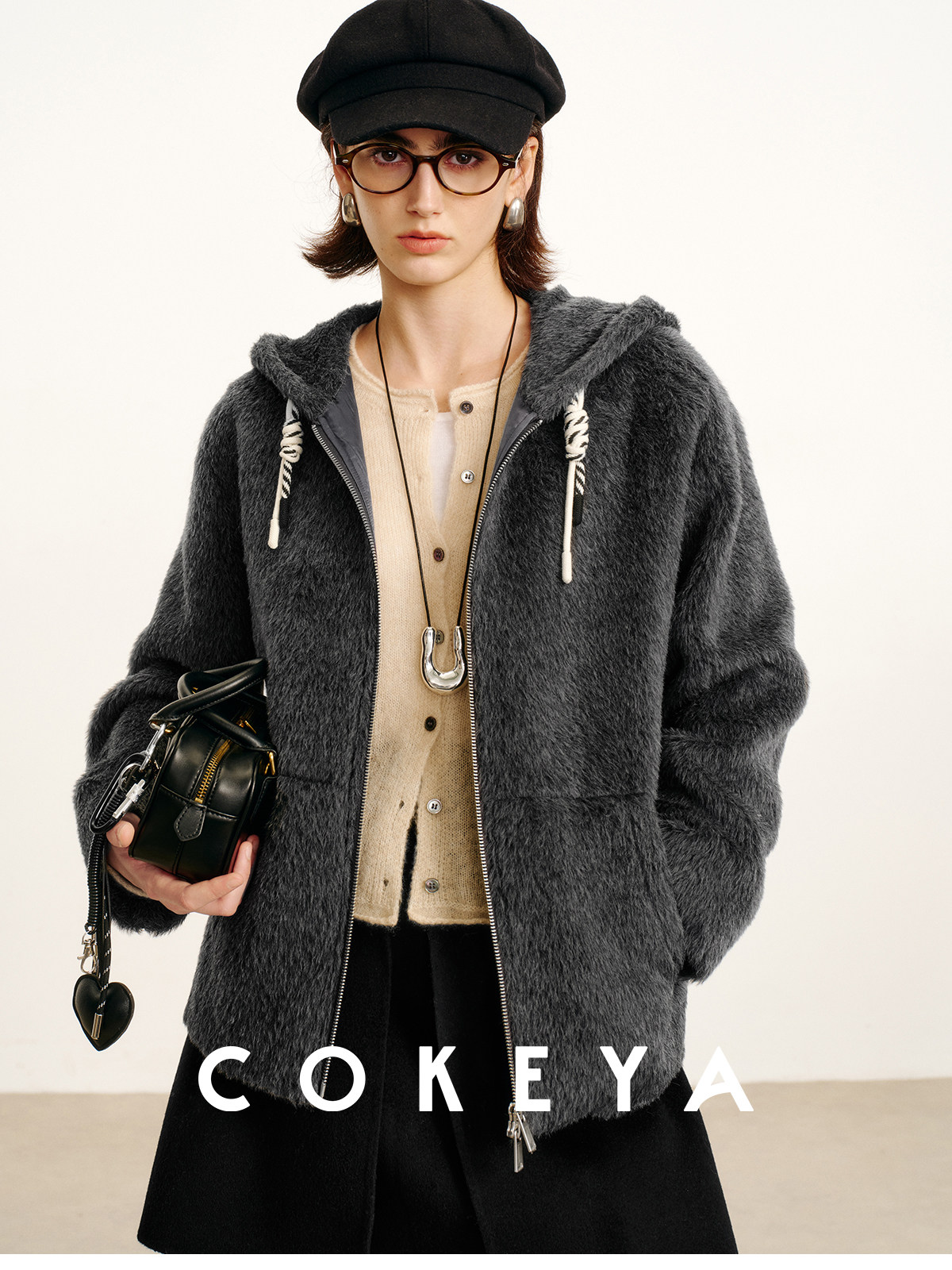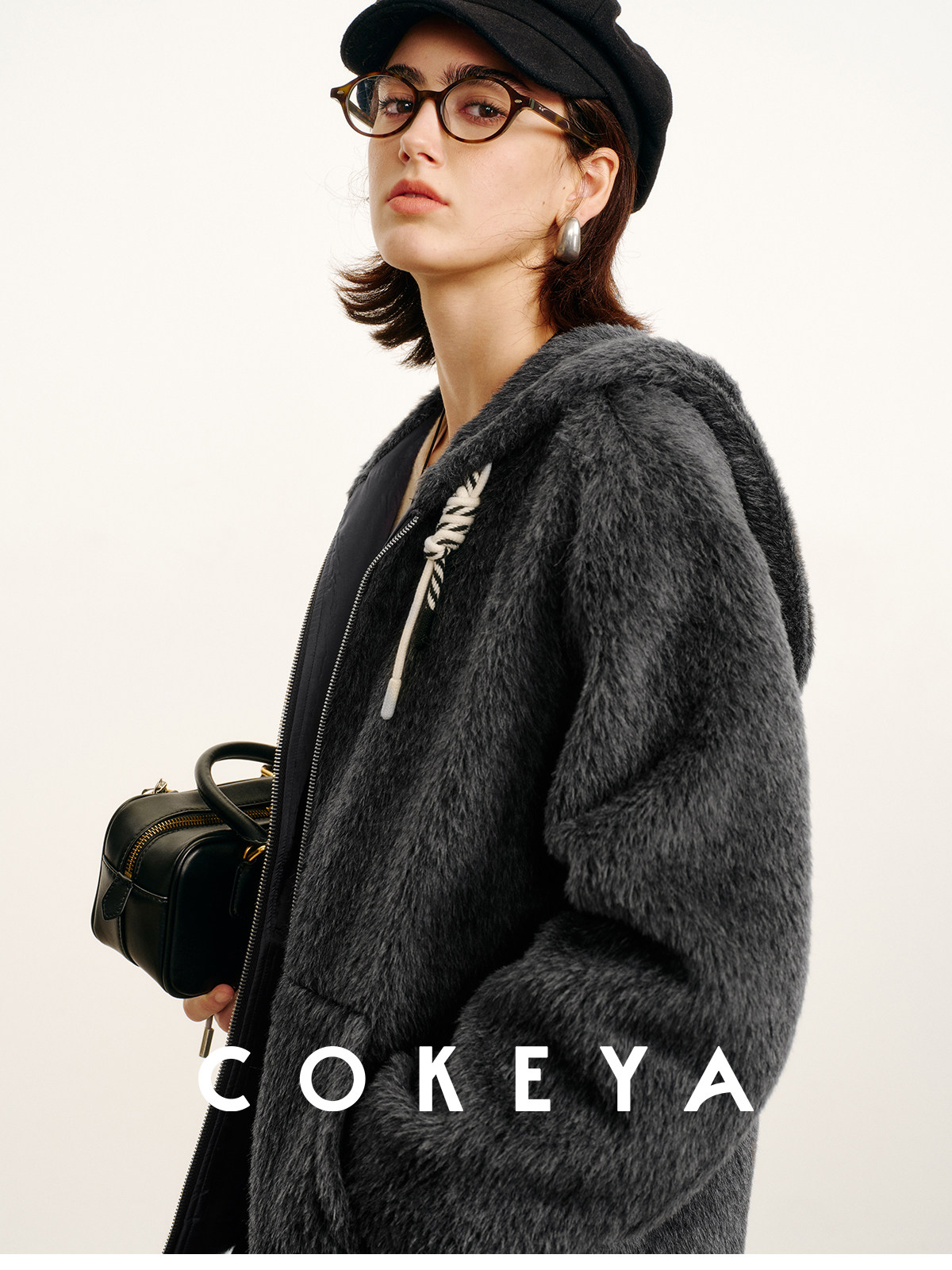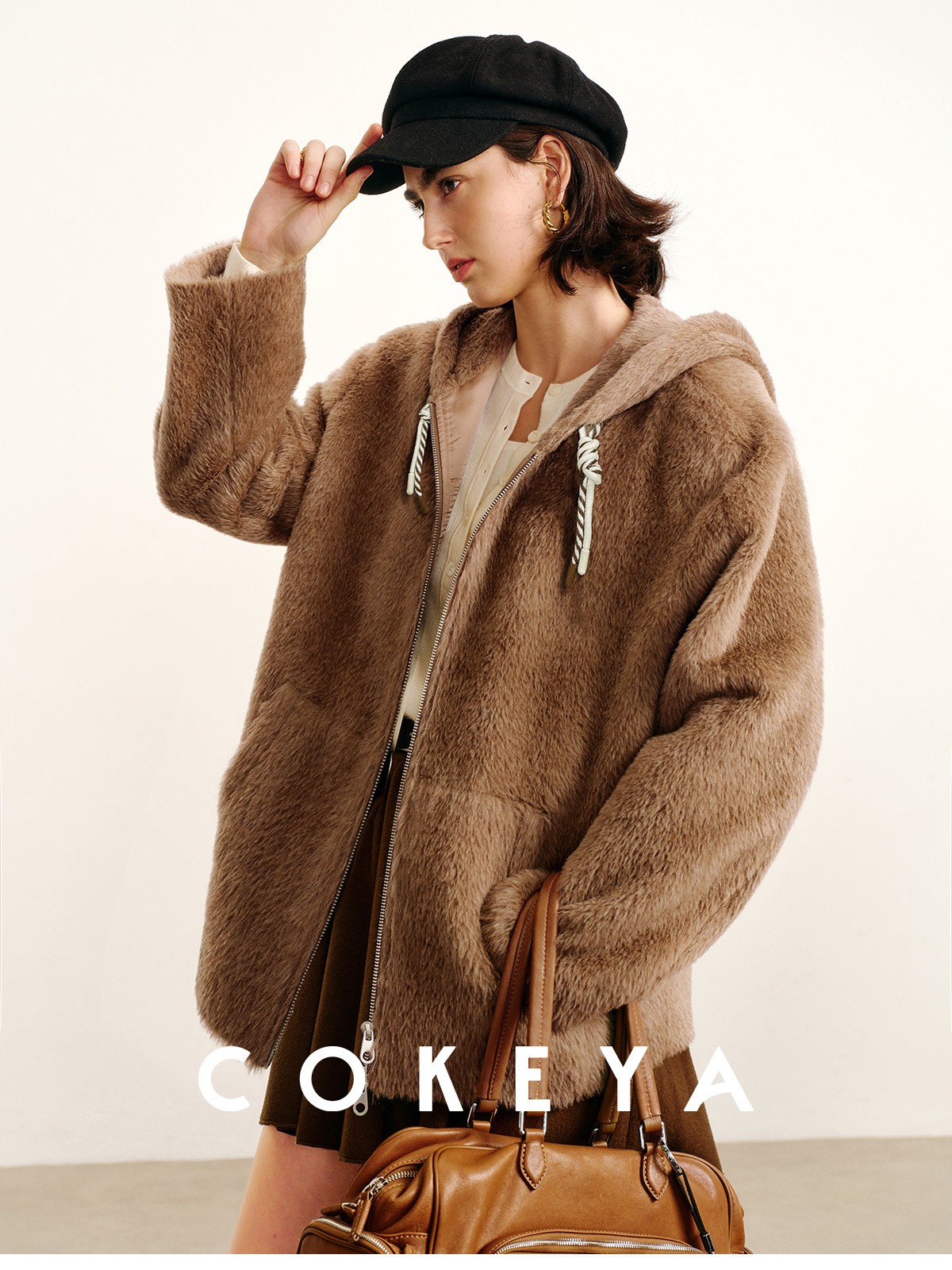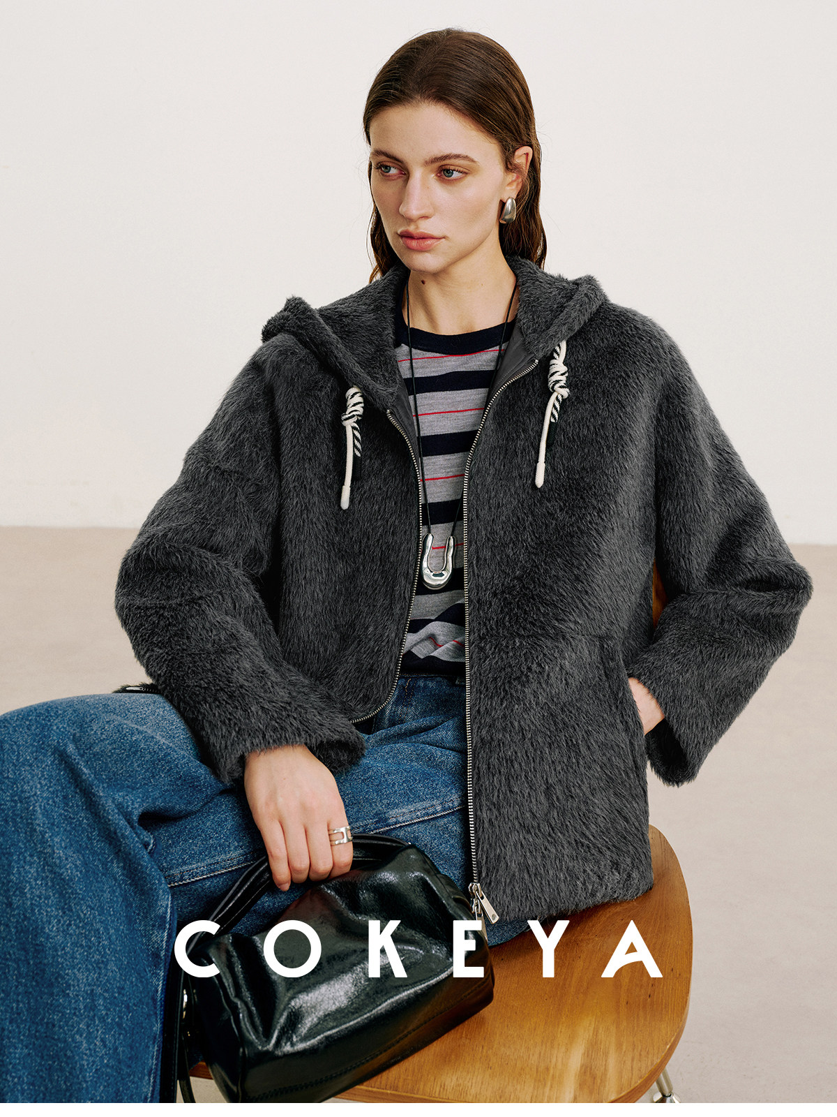 Cokeya/Bagel Coat~ Barn Style Alpaca Wool Hooded Loose Long Sleeve Woolen Coat for Women Spring