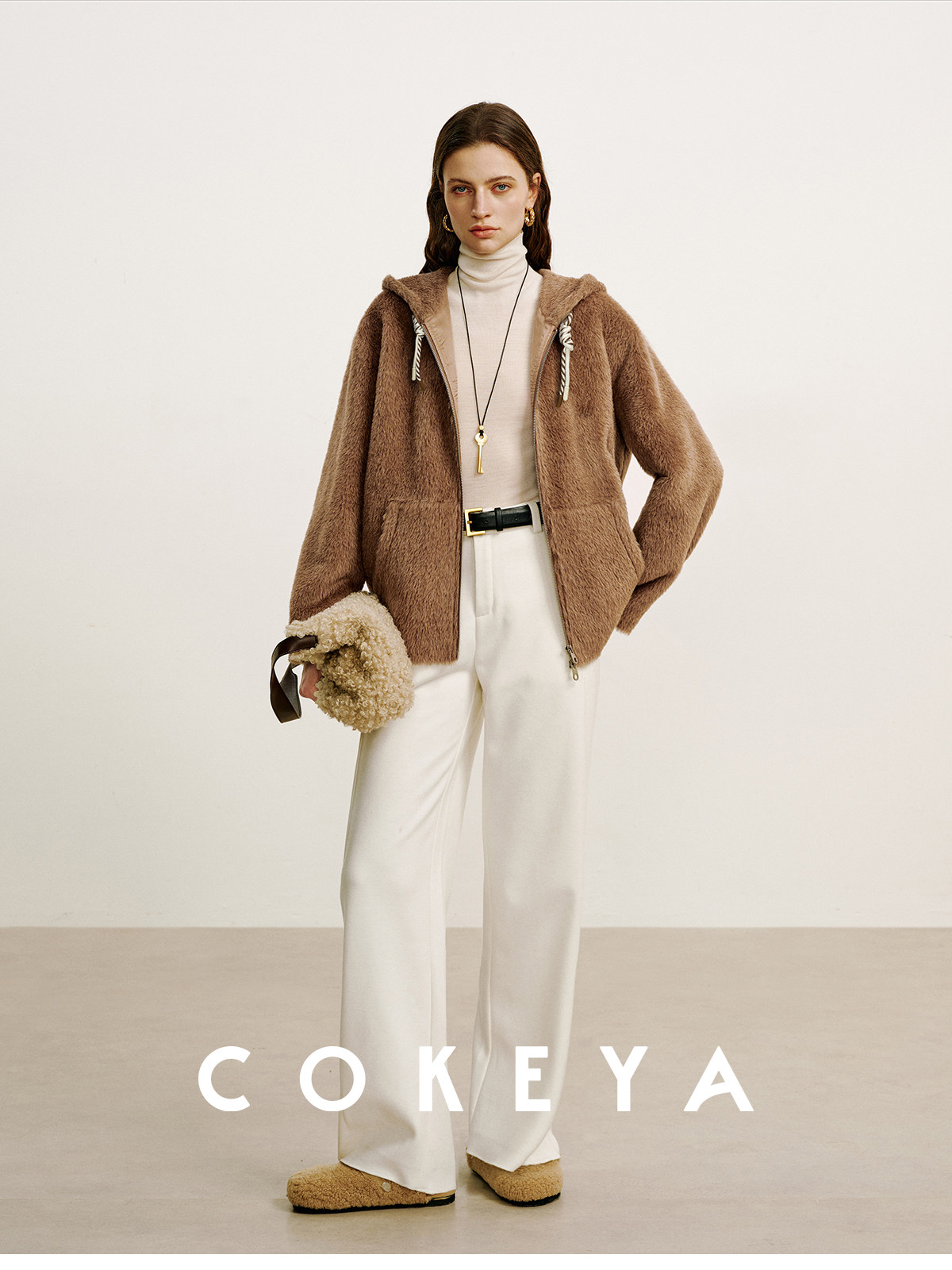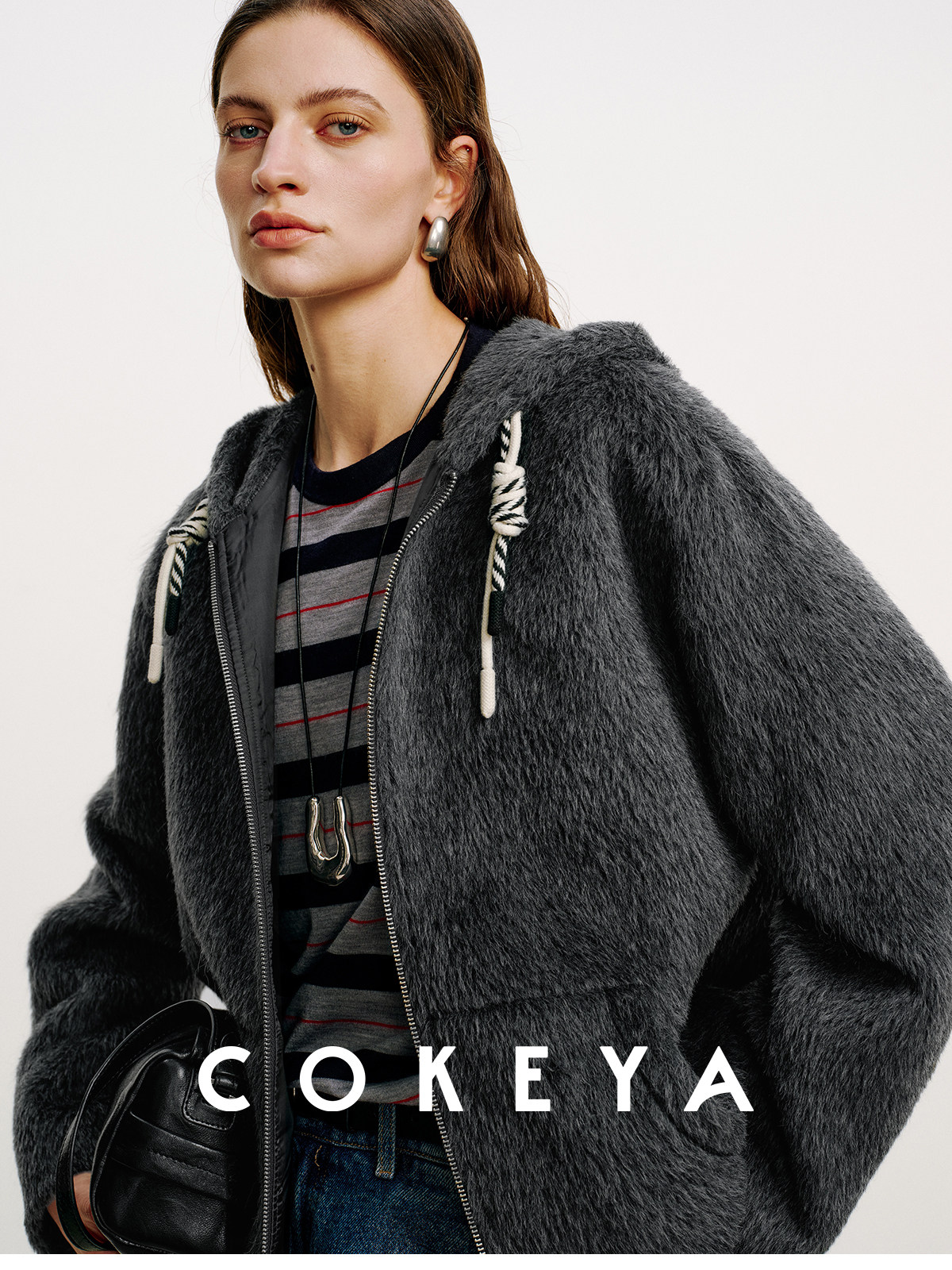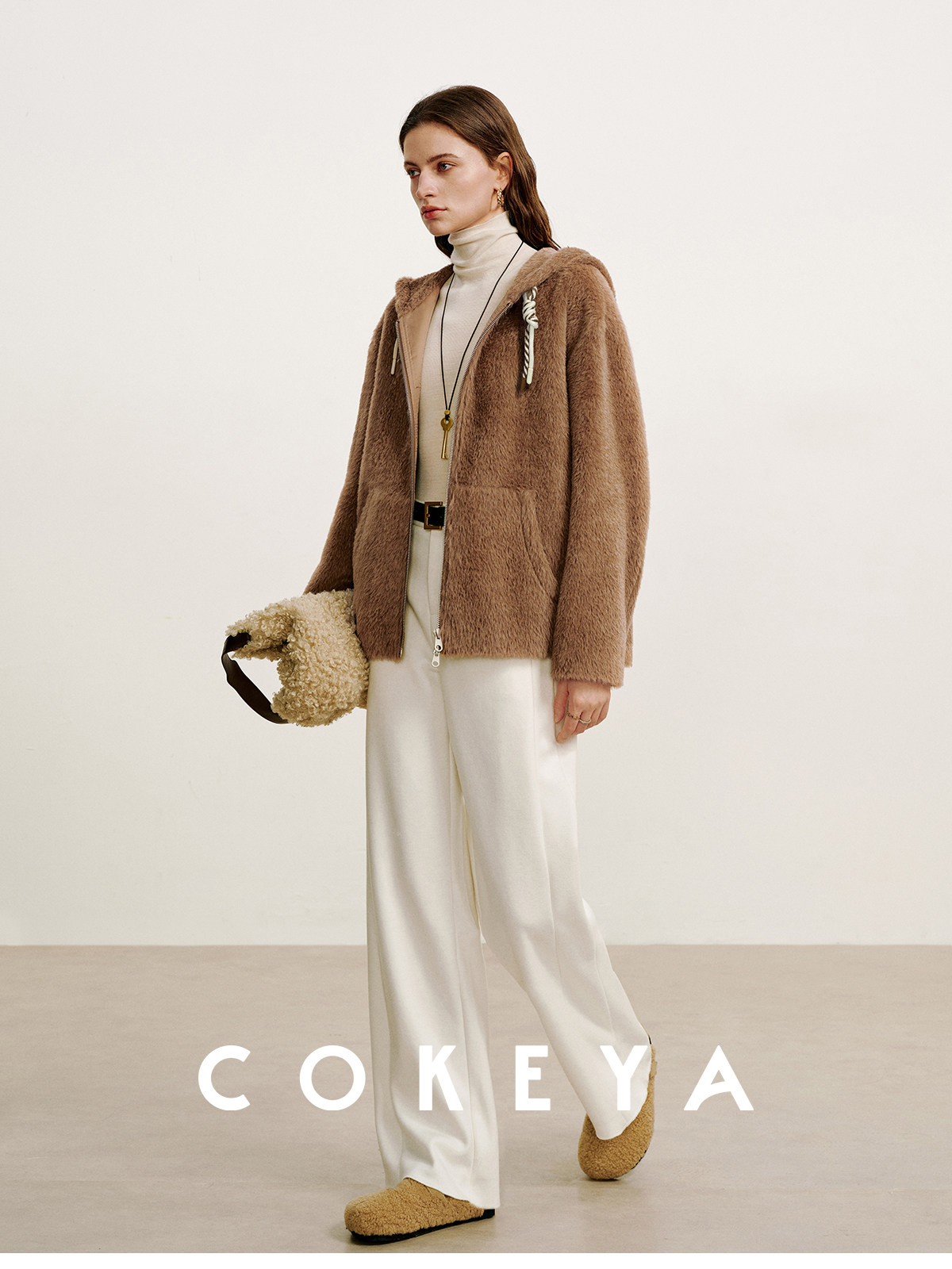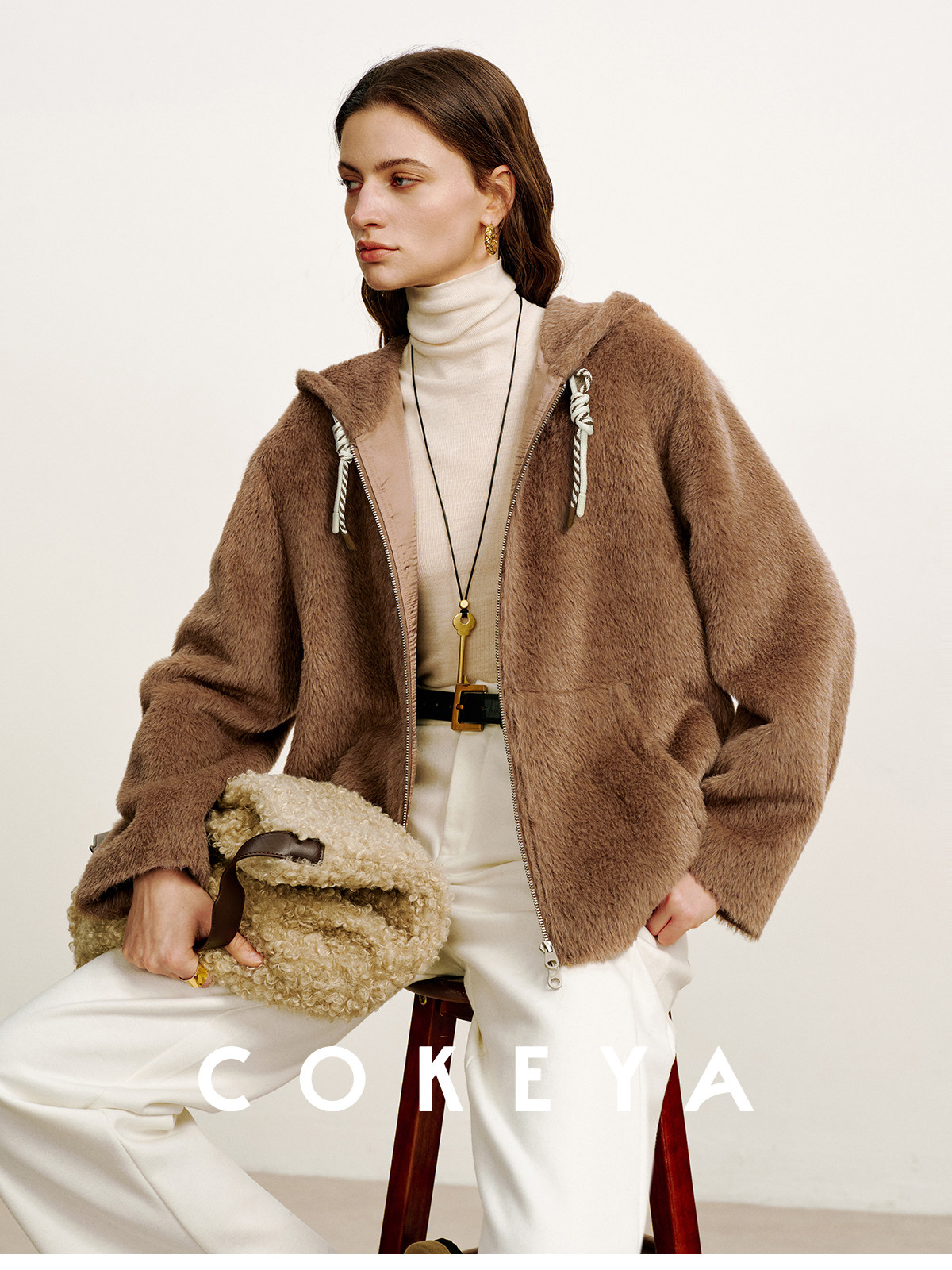 Cokeya/Bagel Coat~ Barn Style Alpaca Wool Hooded Loose Long Sleeve Woolen Coat for Women Spring