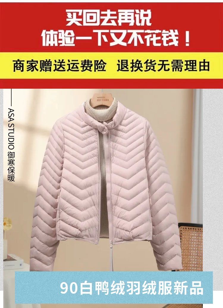 Spare ribs down jacket women's short thin section 2025 new style fashionable and lightweight 90 white duck down stand collar autumn and winter trendy