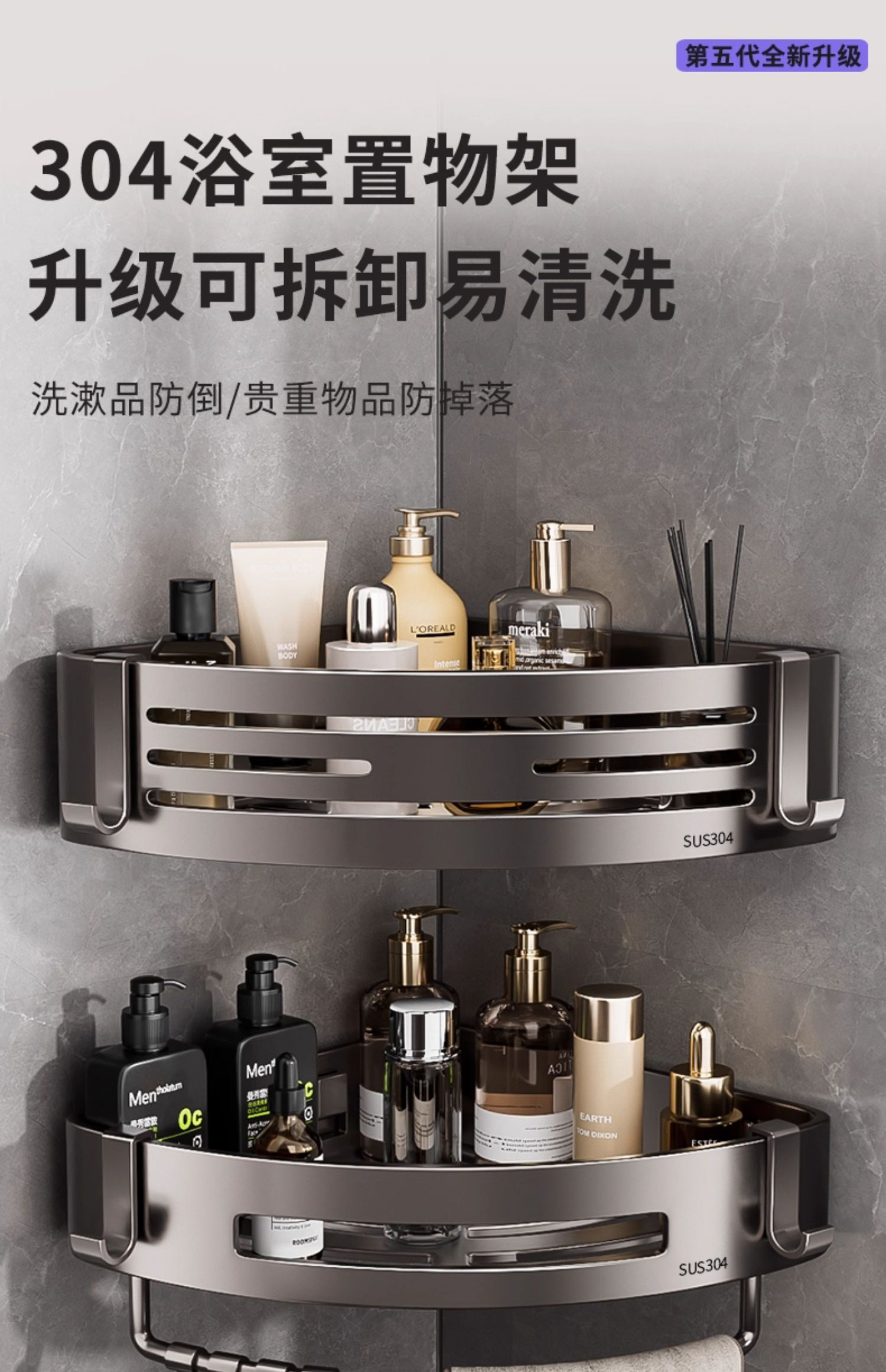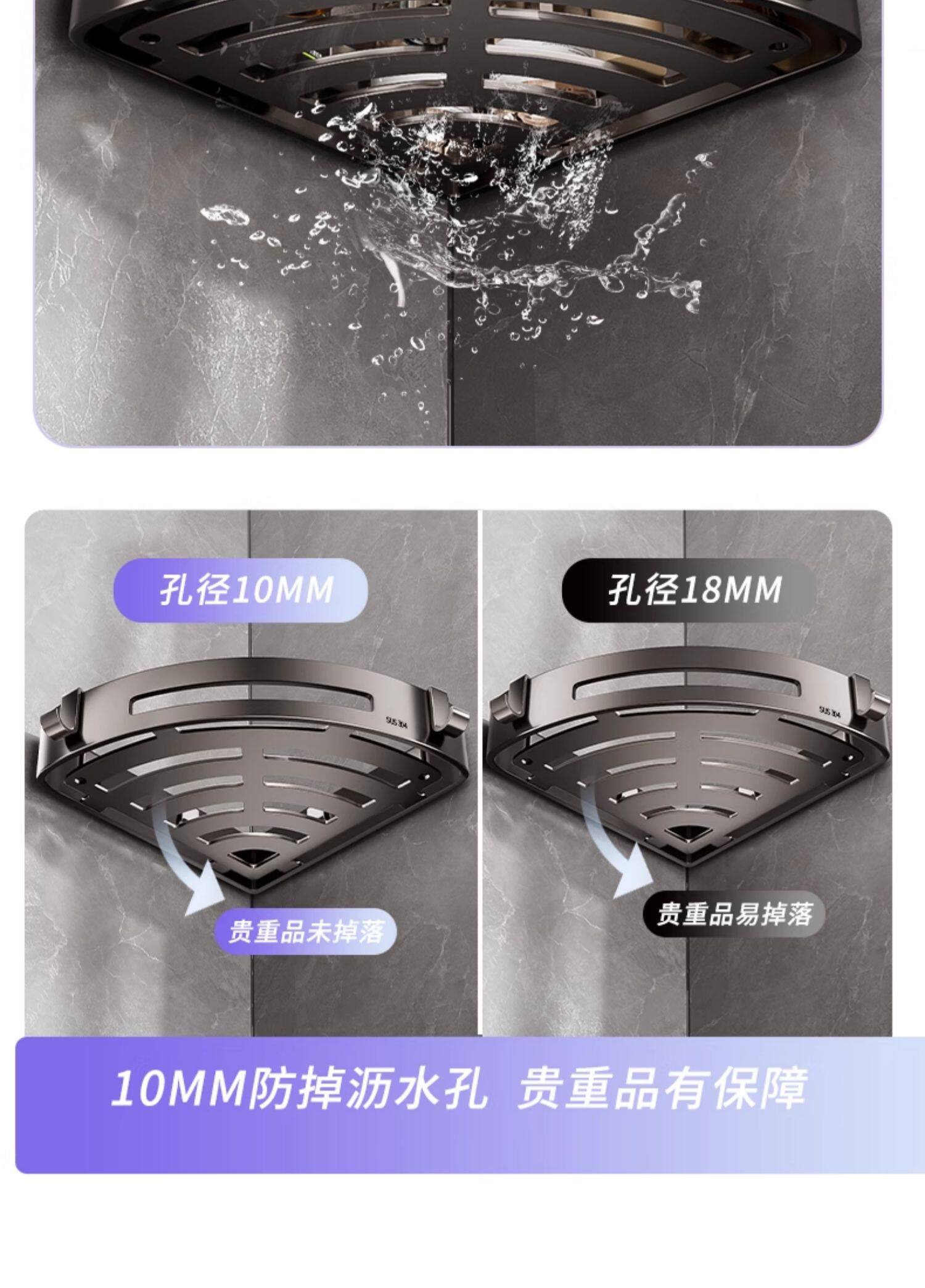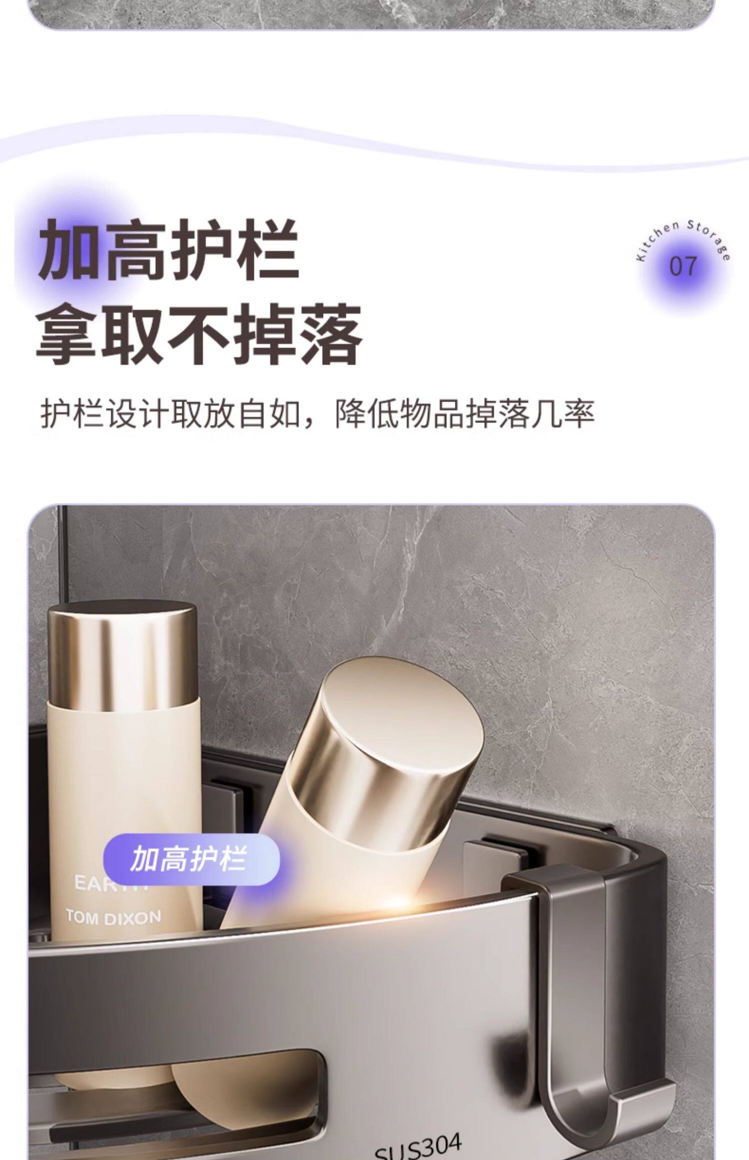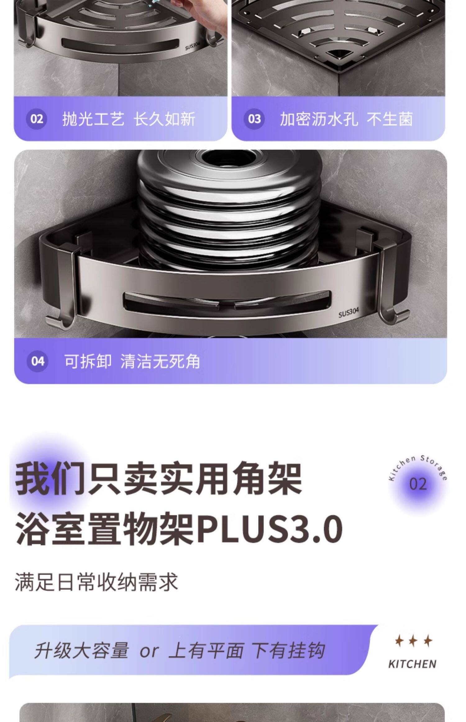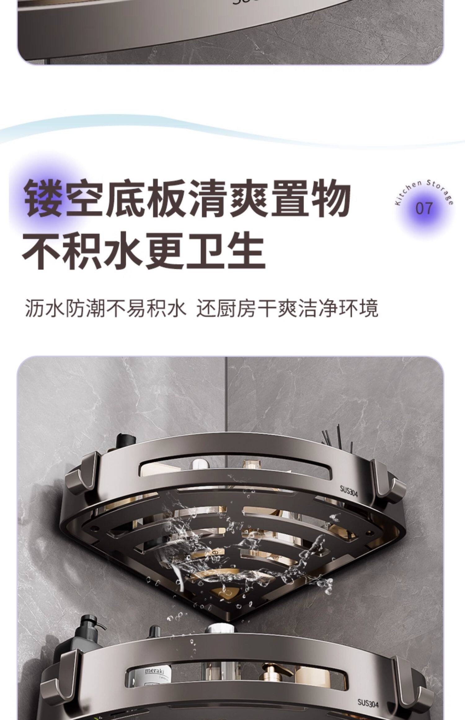 304 Stainless Steel Bathroom Storage Rack, No-Drill, Detachable Wall-Mounted Corner Basket for Bathroom and Toilet Storage