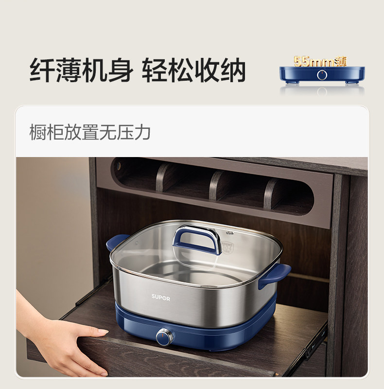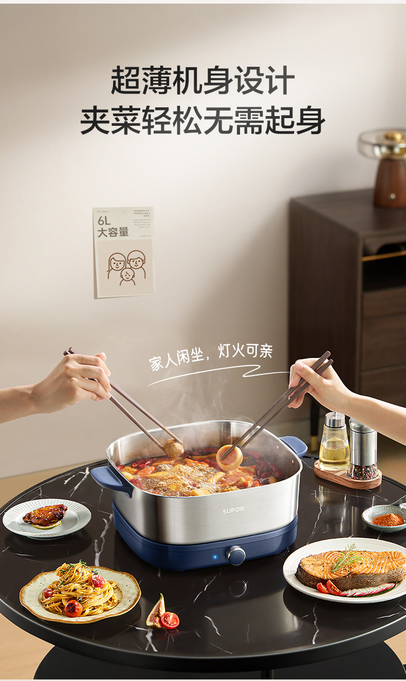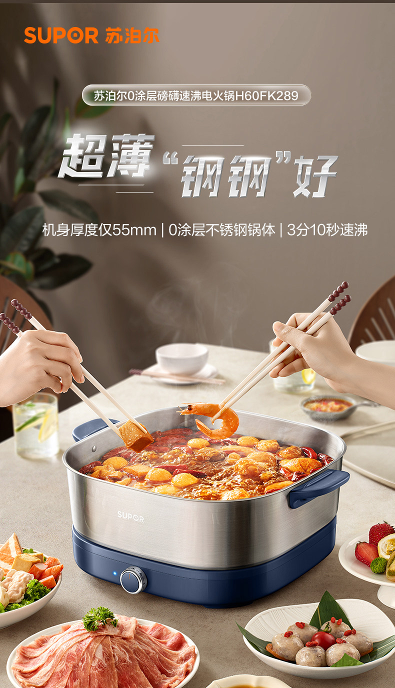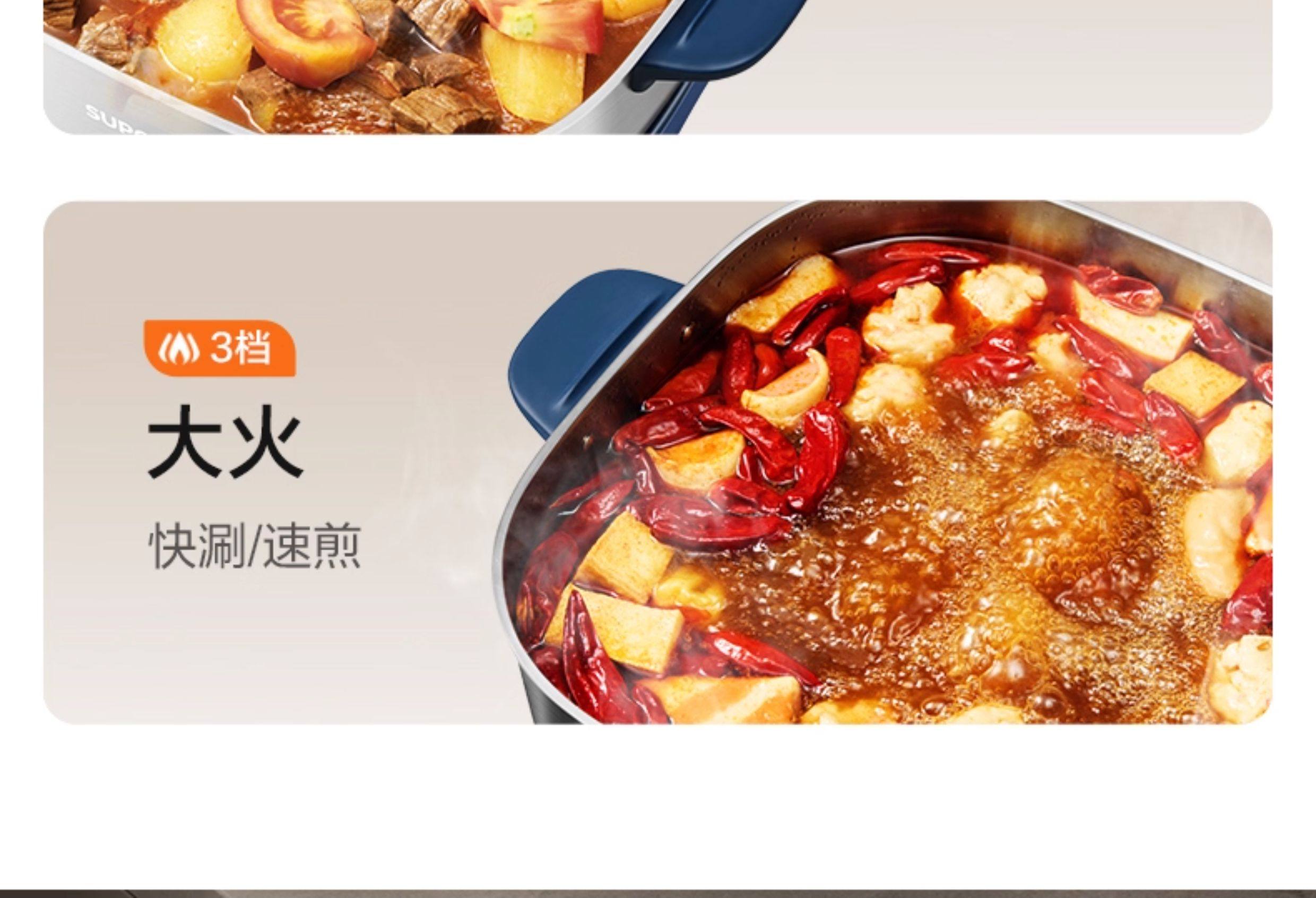 Supor Stainless Steel Electric Hot Pot, Household Electric Cooker, Detachable Type, Non-Coating Electric Cooking Pot, Multifunctional Pot, Official Flagship