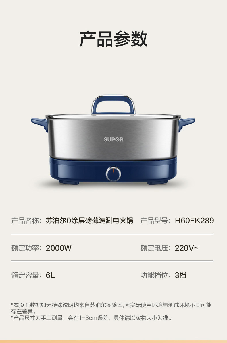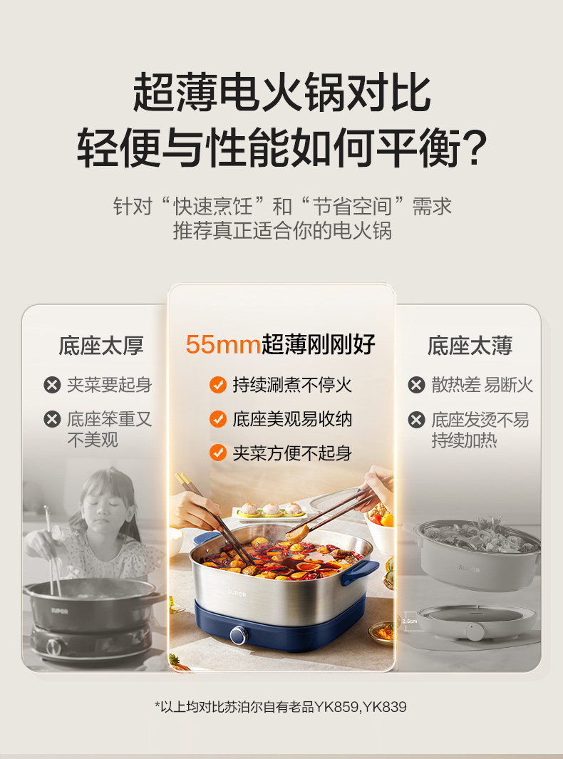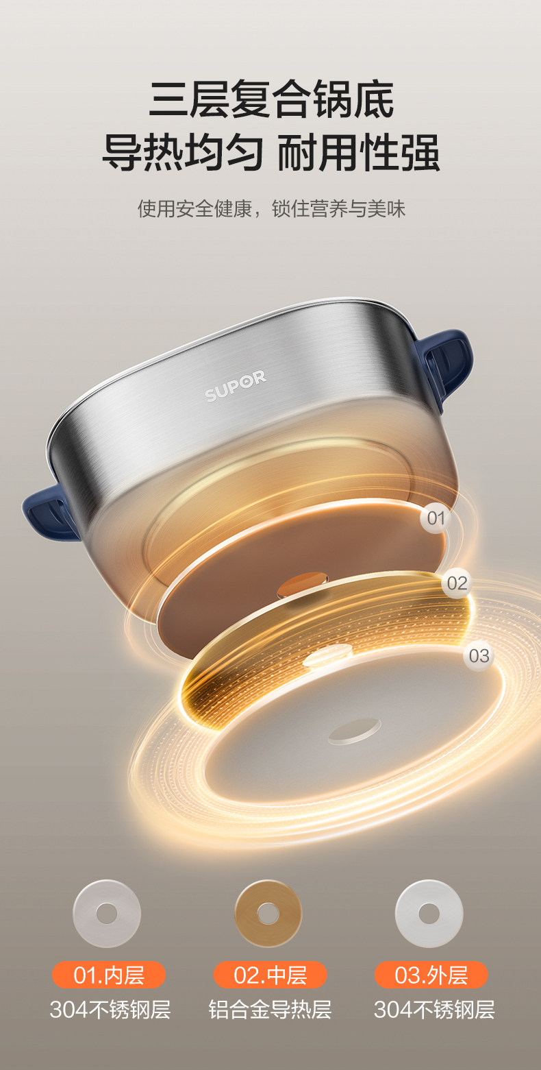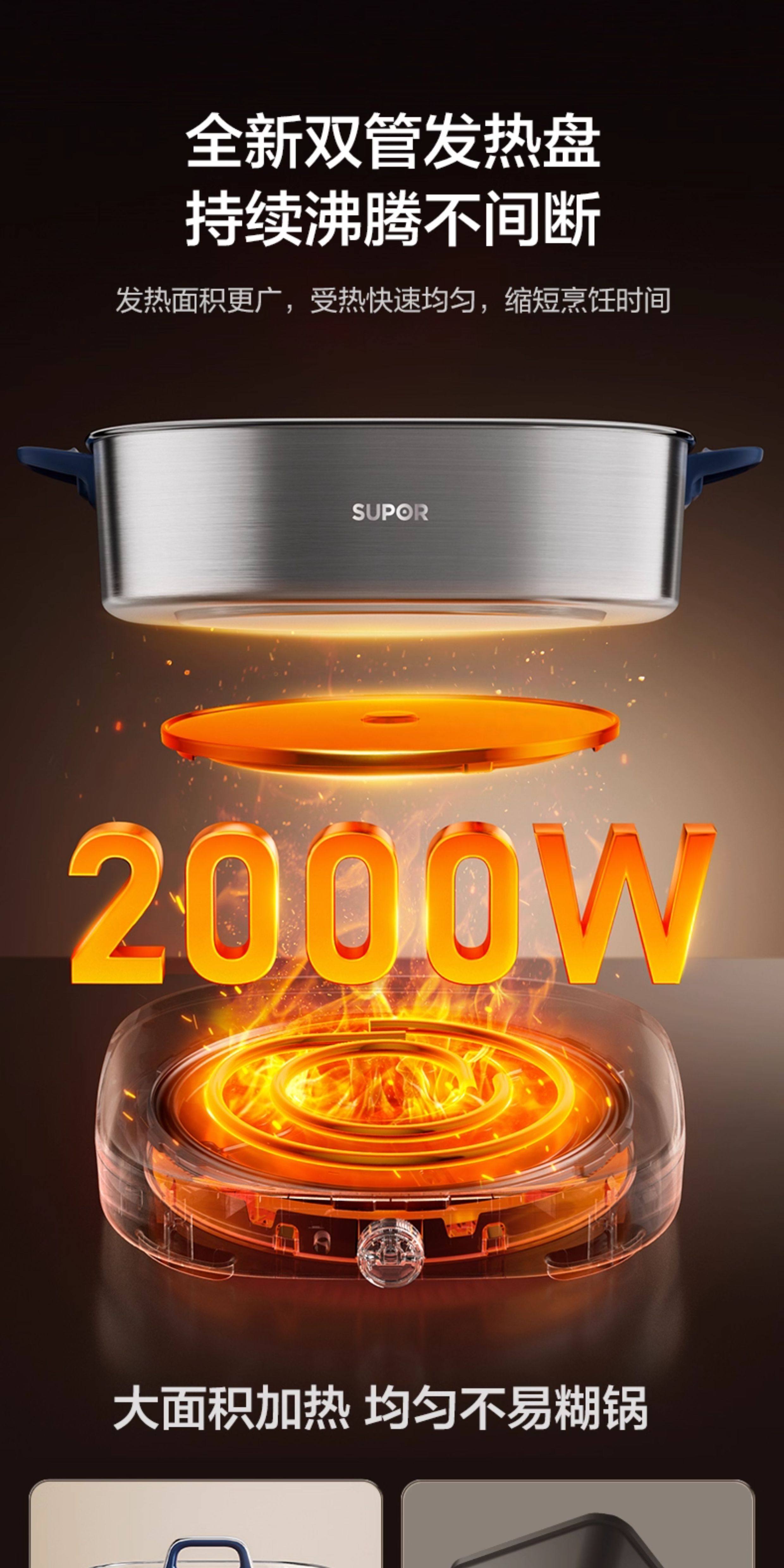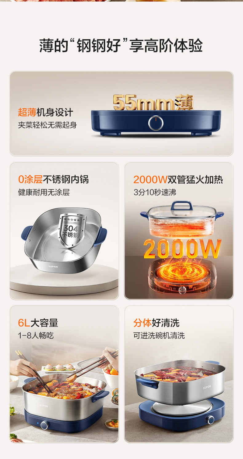 Supor Stainless Steel Electric Hot Pot, Household Electric Cooker, Detachable Type, Non-Coating Electric Cooking Pot, Multifunctional Pot, Official Flagship