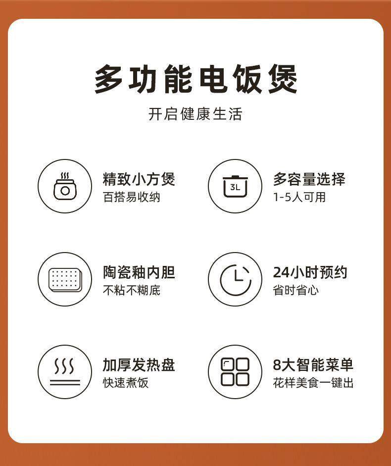Color Classification Smart Model (Mastering Steaming, Cooking, Stewing and Stewing) 1.6 Liters (Recommended for 1-2 People),Smart Model (Mastering Steaming, Cooking, Stewing and Stewing) 2 Liters (Recommended for 1-3 People),Smart Model (Mastering Steaming, Cooking, Stewing and Stewing) 3 Liters (Recommended for 1-5 People),Mechanical Model (One-Button Cooking, Easy to Operate) 1.6 Liters (Recommended for 1-2 People),Mechanical Model (One-Button Cooking, Easy to Operate) 2 Liters (Recommended for 1-3 People),Mechanical Model (One-Button Cooking, Easy to Operate) 3 Liters (Recommended for 1-5 People)