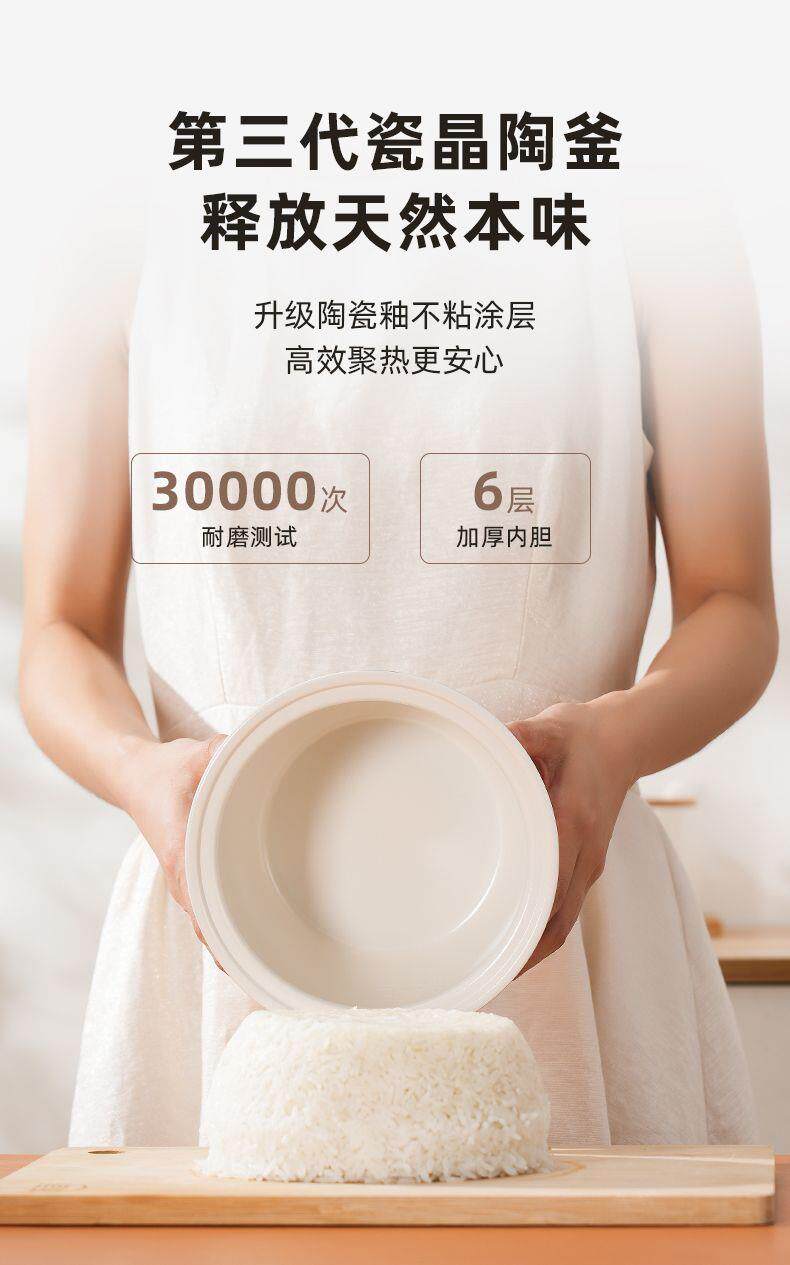 Oaks Rice Cooker Household Smart Mini Multi-Functional Non-Stick Pot Ceramic Glaze Fully Automatic 1.6 Liters 2 People 3L