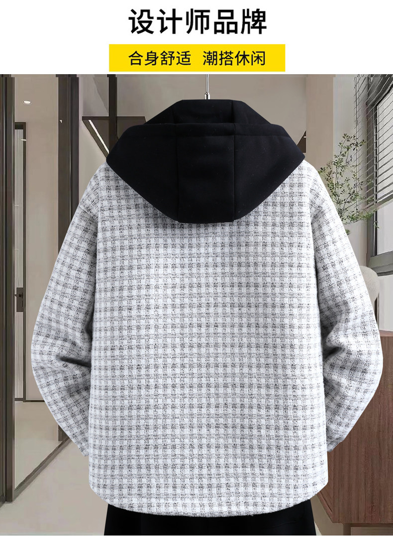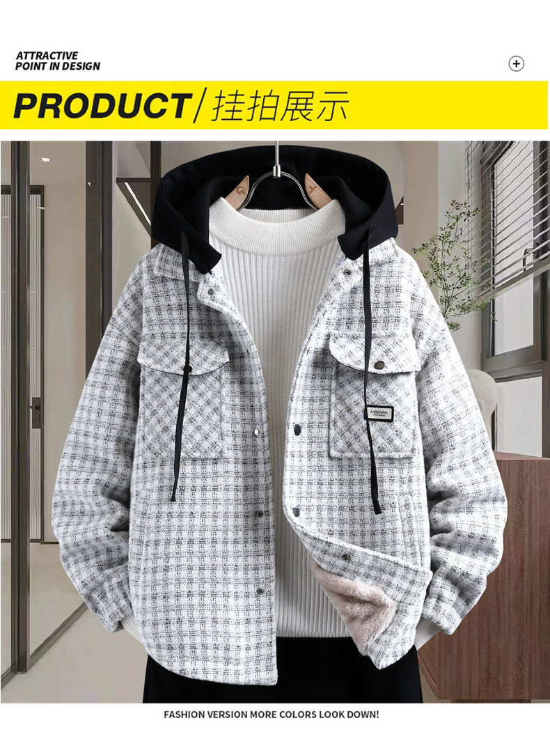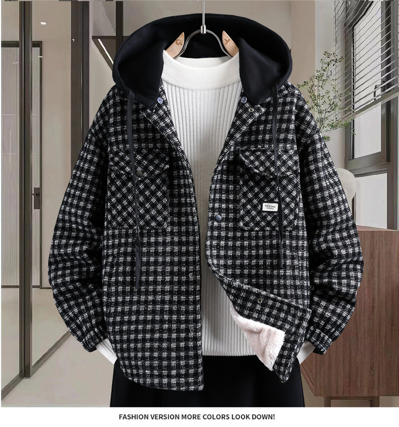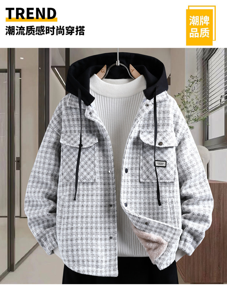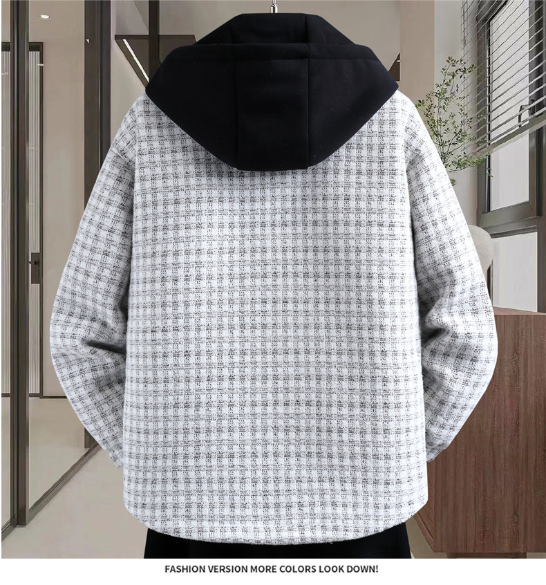 Plaid coat men's autumn and winter velvet thickening trendy brand three-piece jacket men's hooded casual winter warm cotton clothing