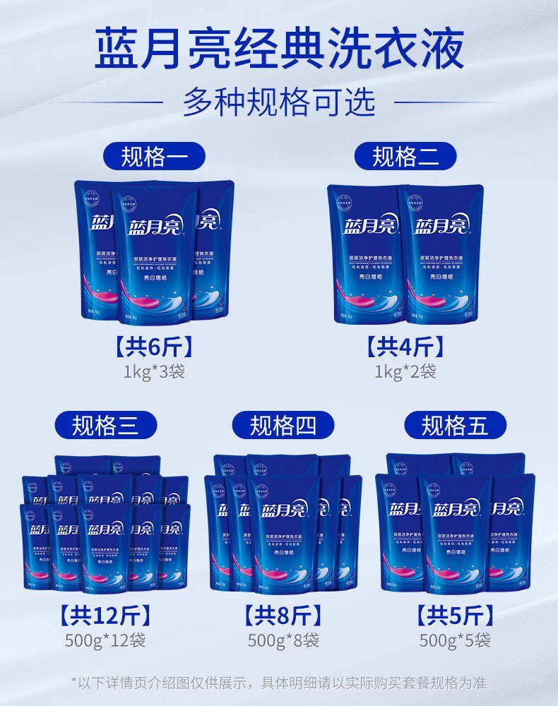 Blue moon laundry detergent 1kg refill liquid bag long-lasting fragrance deep cleansing and decontamination home official authentic