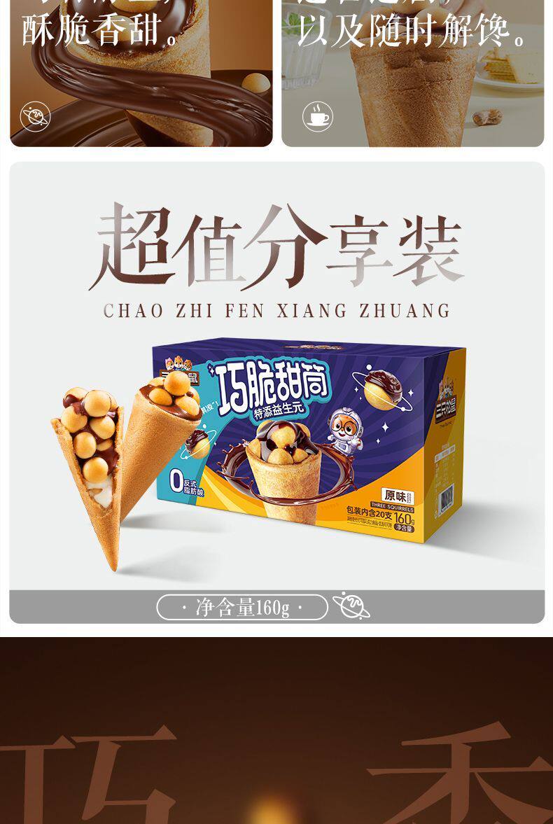 Three Squirrels Crispy Cone 160g 1 box Chocolate Crispy Cone Biscuit Sandwich Snacks