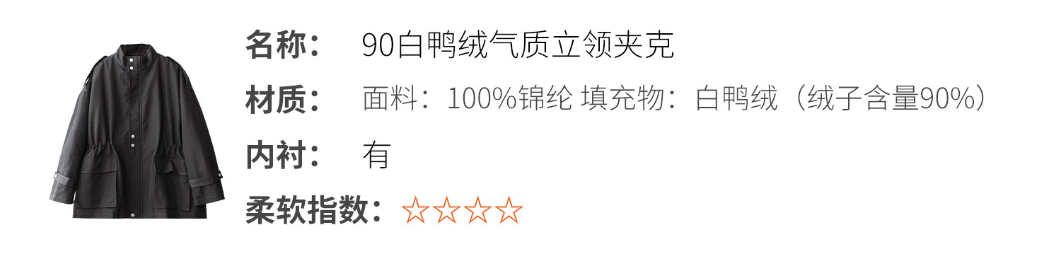 Produced by Xiaoer, handsome and neat, flexible and windproof/new national standard 90 white duck down/temperament stand-up collar jacket for women