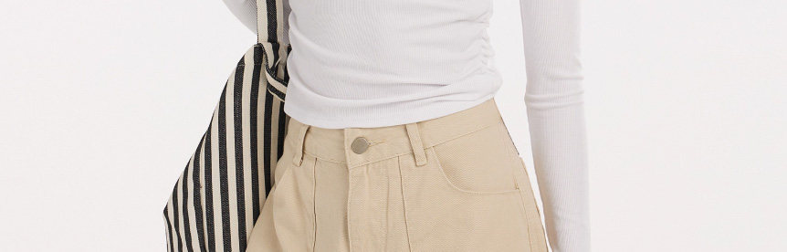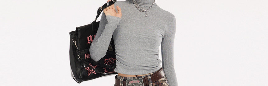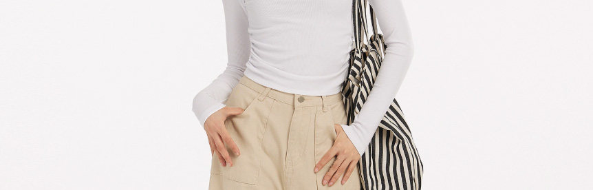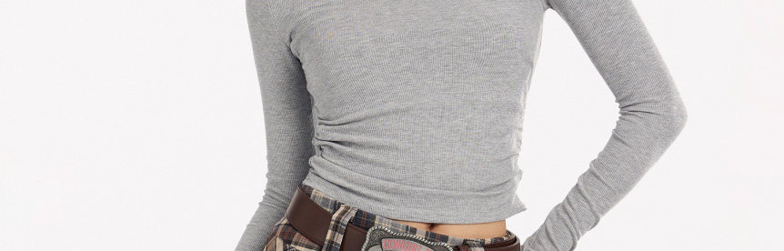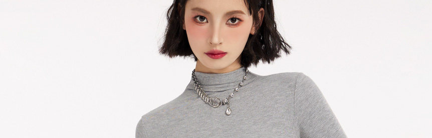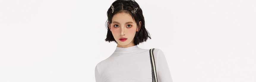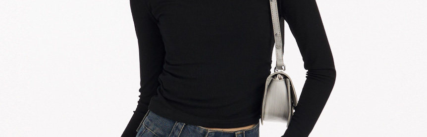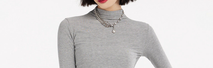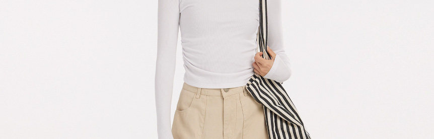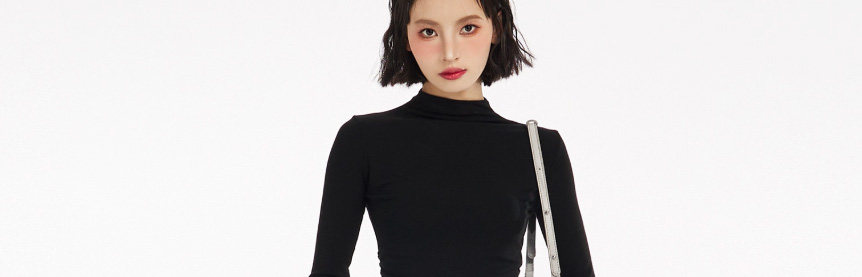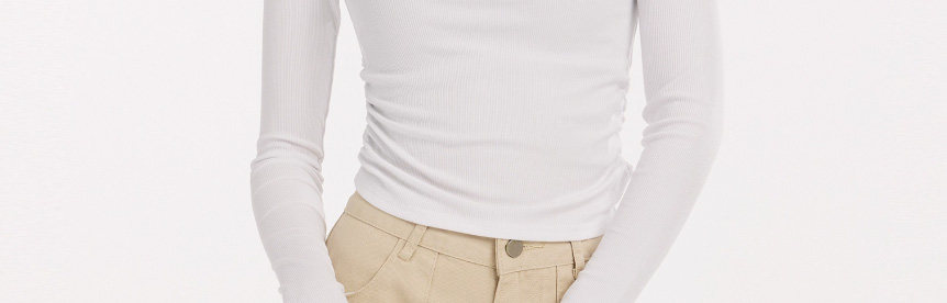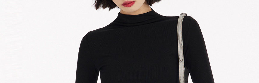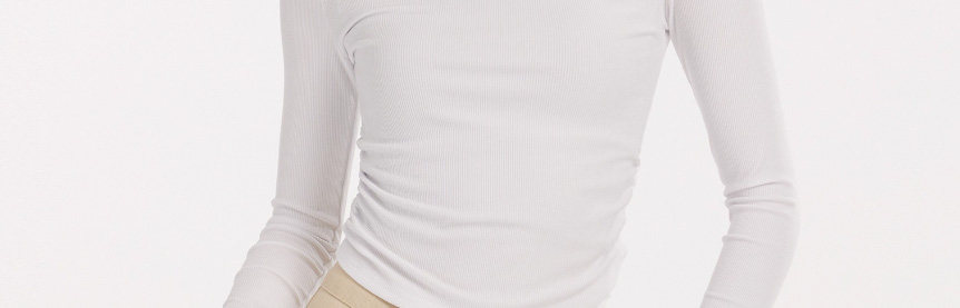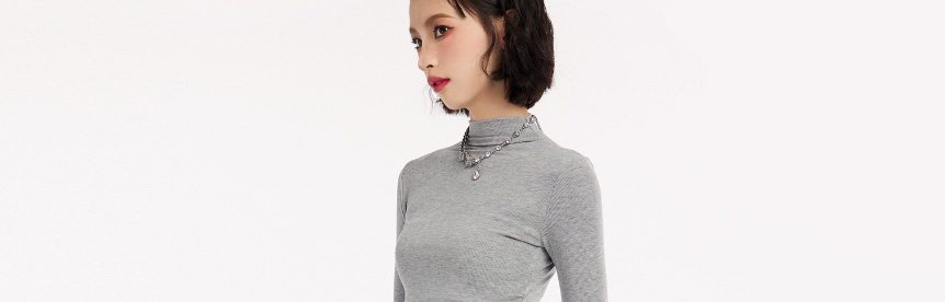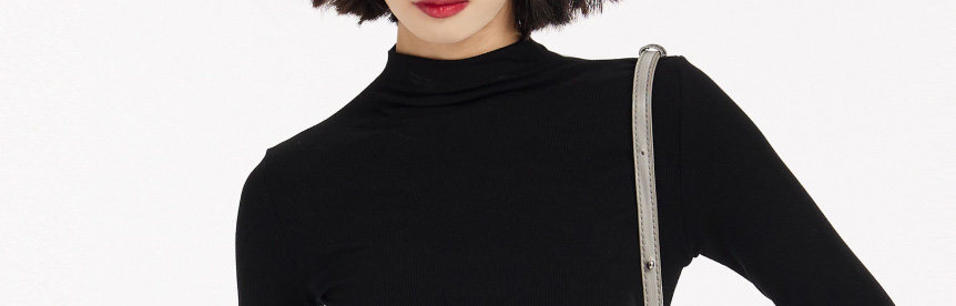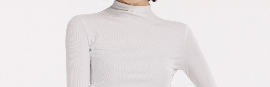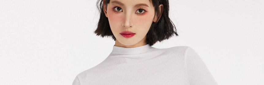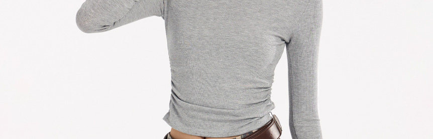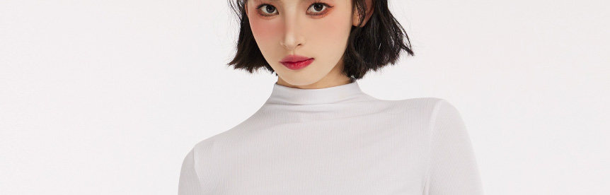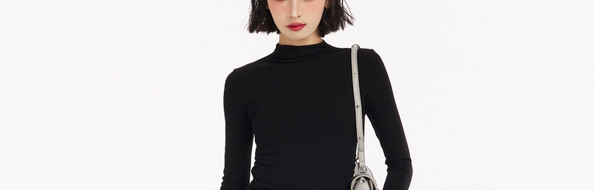 American-Style Half-High Collar Long-Sleeve Base Layer Top for Women, Autumn and Winter Design, Stand-Up Collar, Tight-Fitting, Pleated, Slimming Base Shirt