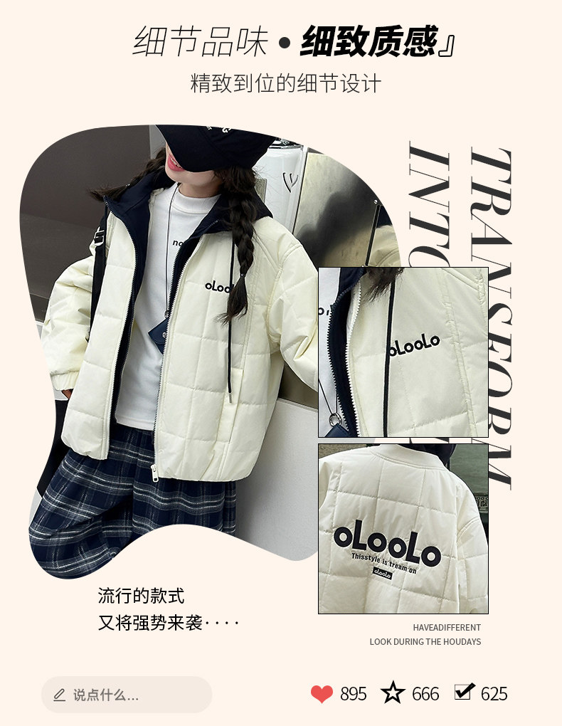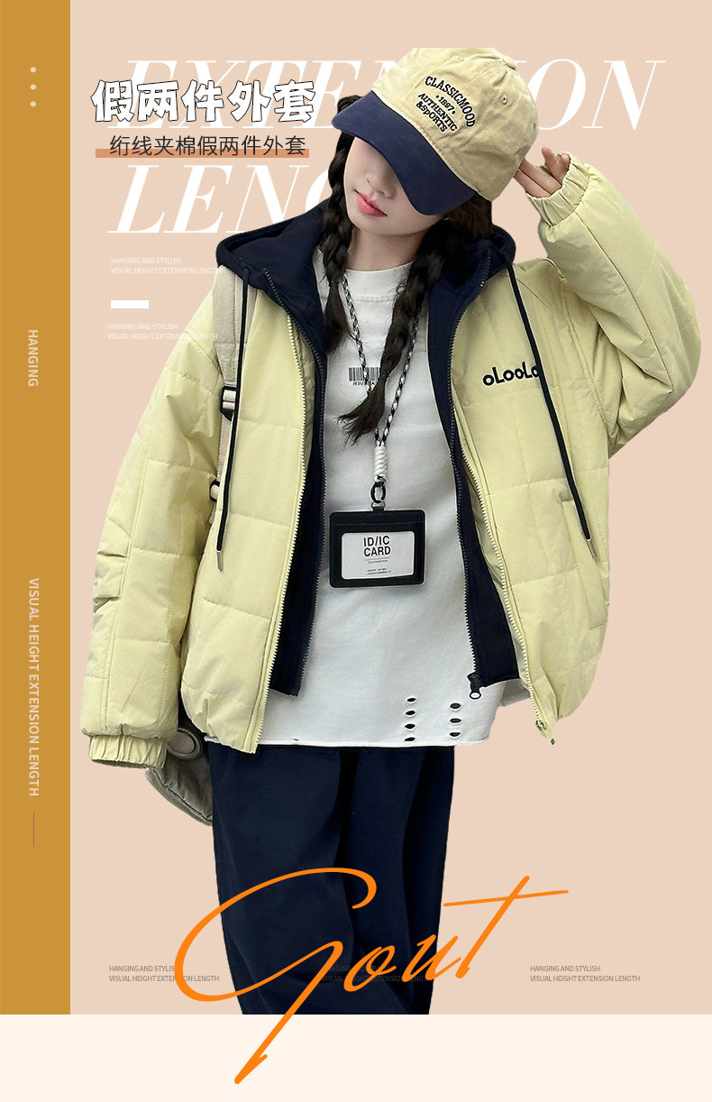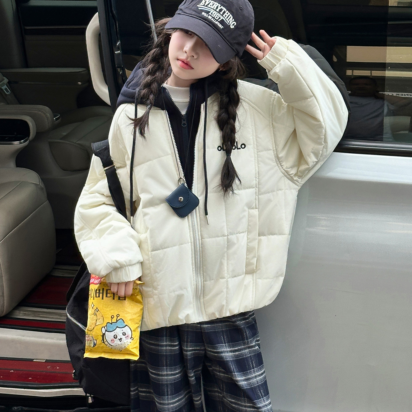 Girls' Padded Thickened Jacket Autumn/Winter 2025 New Stylish Fashionable Casual Faux Two-Piece Cotton Coat for Older Children
