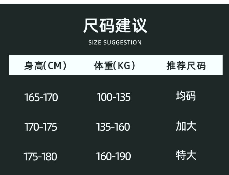 China (cm) 165 / 88-90 170 / 96-98 175 / 108-110 180 / 118-122 185 / 126-130