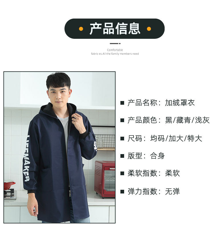 Fleece-Lined and Thickened Smock, Waterproof, Oil-Resistant, Stain-Resistant, Unisex Apron Workwear, Winter Outerwear, Mid-Length, Long-Sleeved