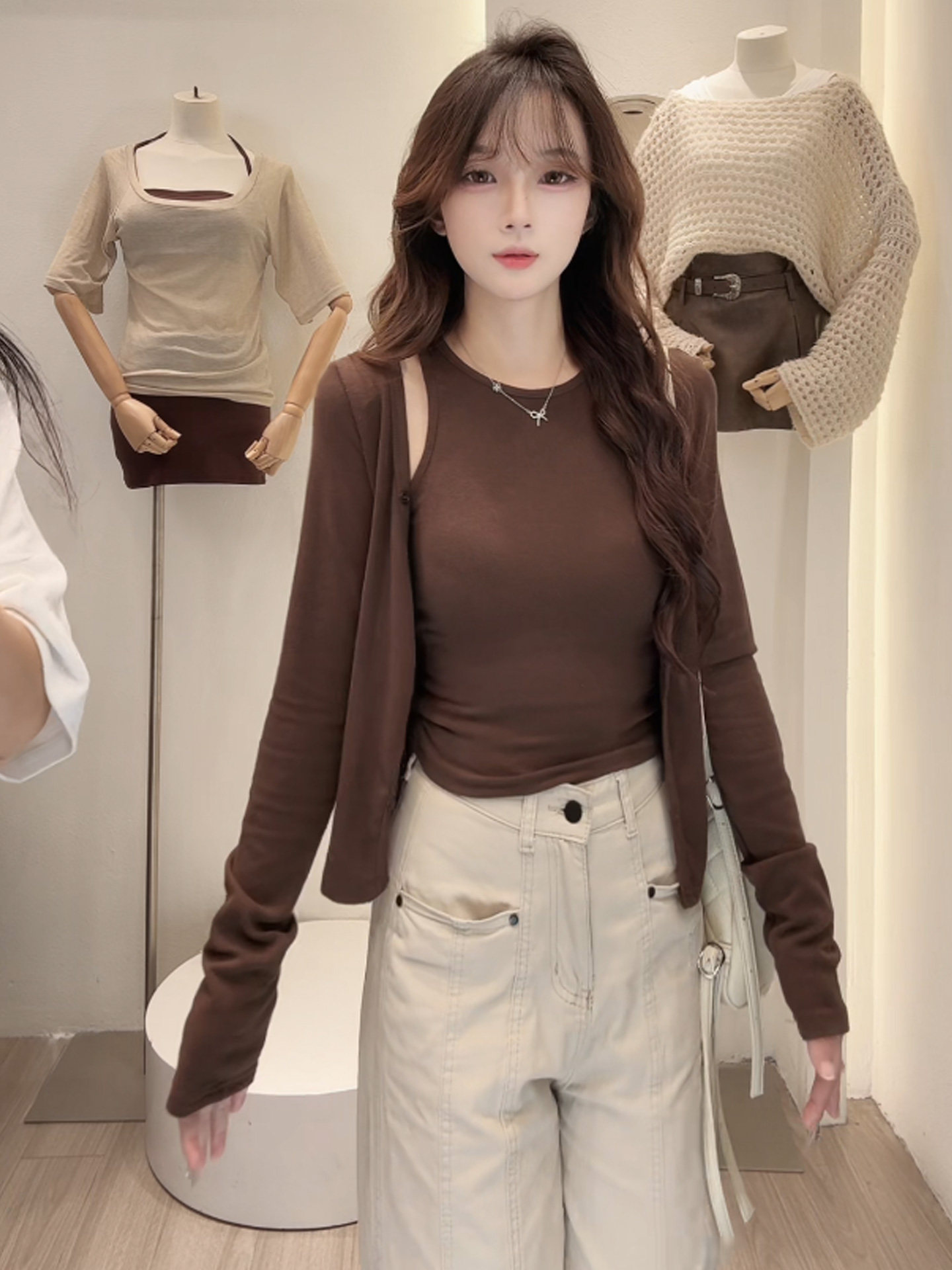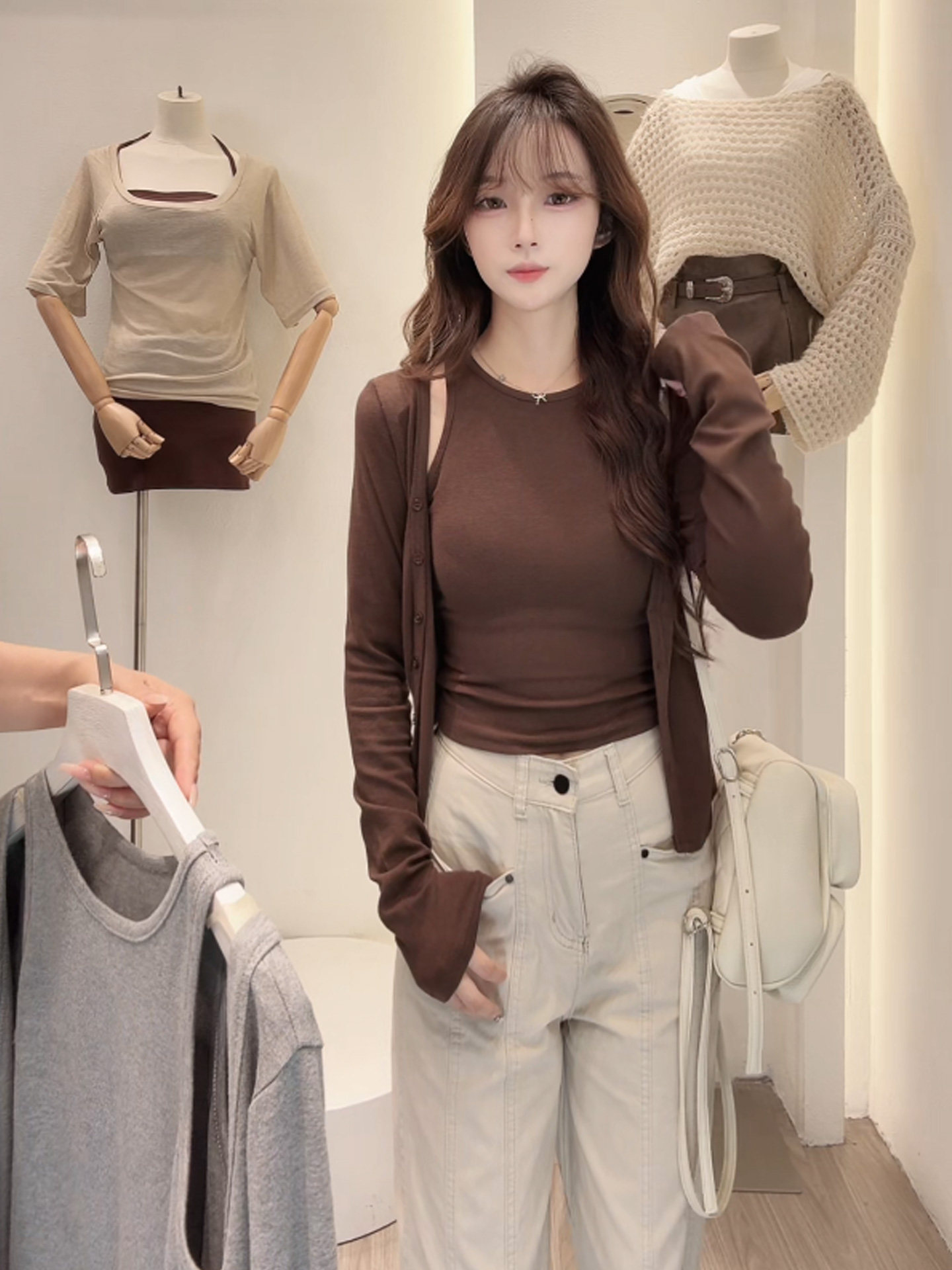 Early Autumn Korean Style Slimming Vest Cardigan Two-Piece Set for Women 2025 New Trendy Salt Girl Fashionable Light Mature Top Set