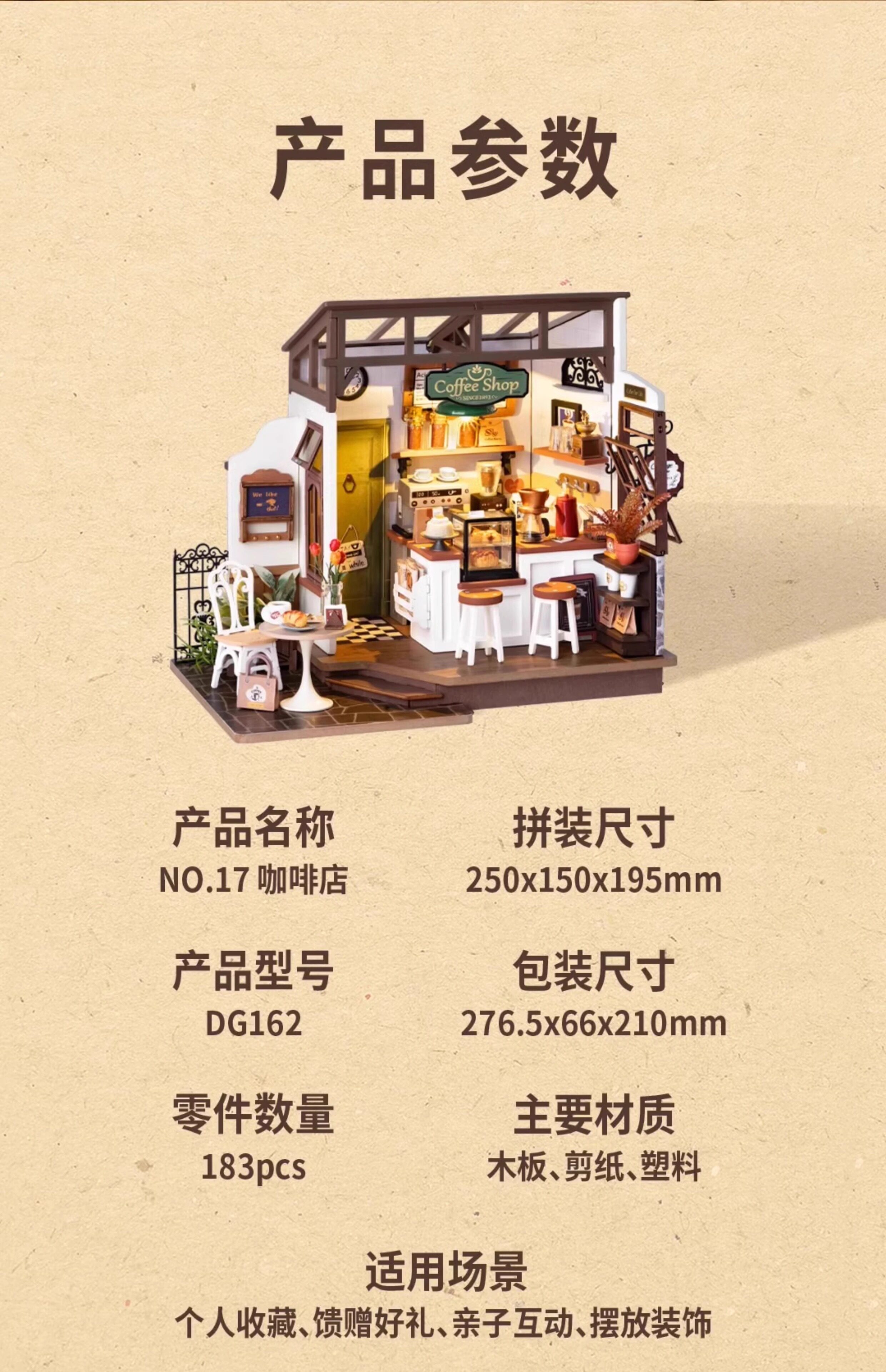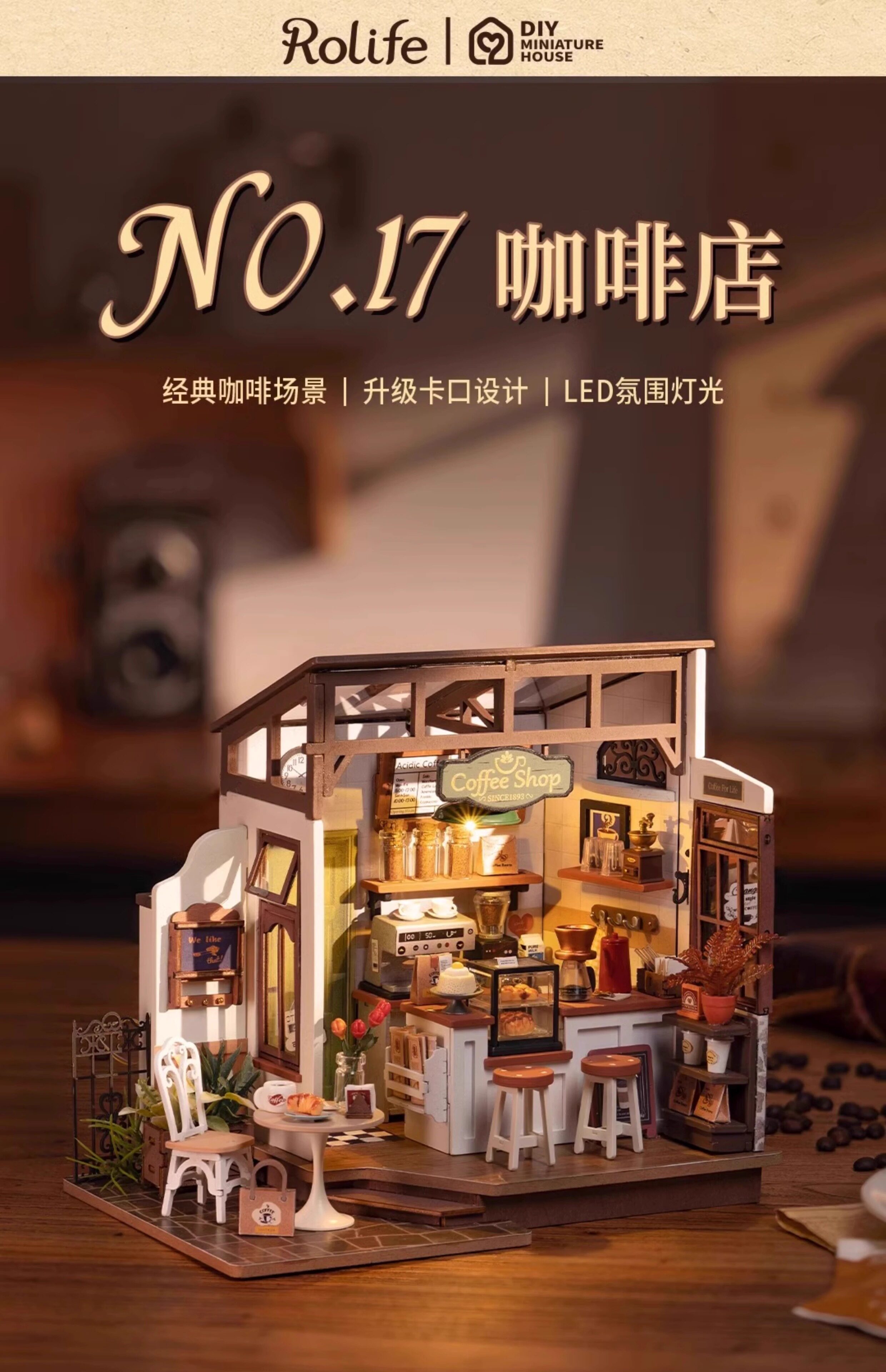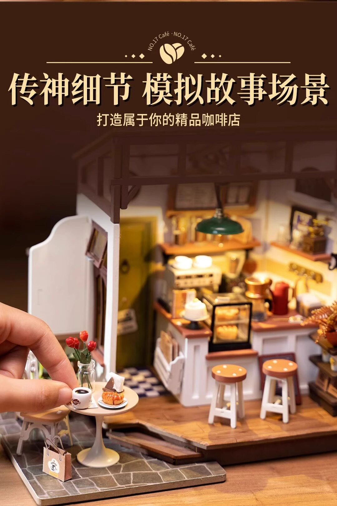 Roliferuolai coffee shop diy cabin handmade small house wooden assembled model villa building block gift