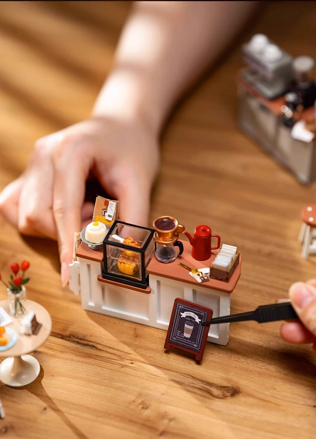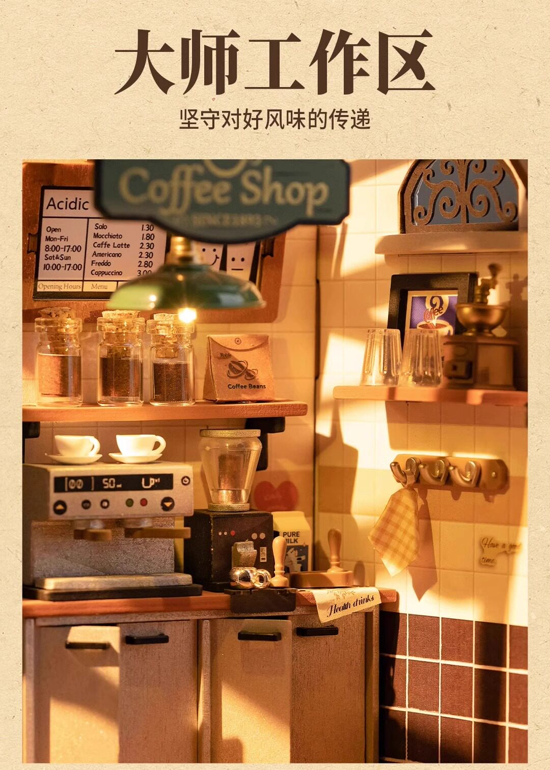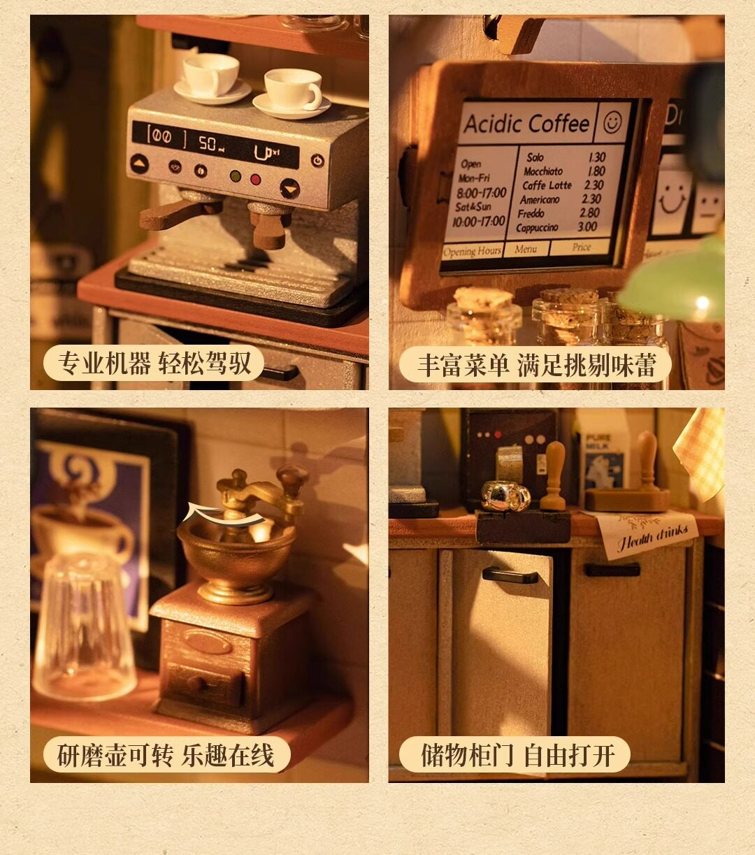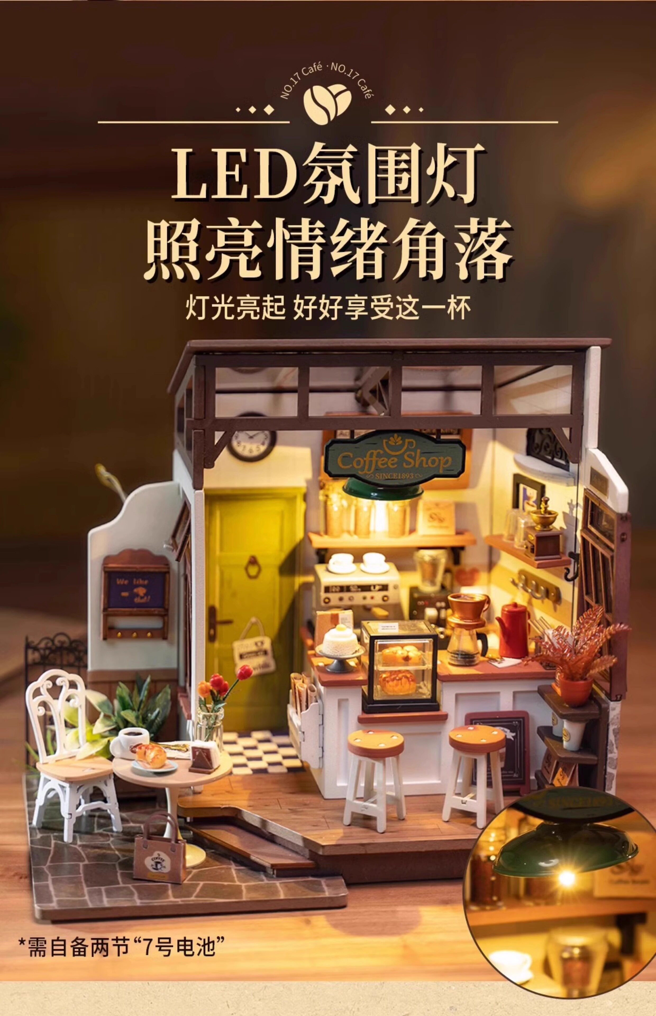 Roliferuolai coffee shop diy cabin handmade small house wooden assembled model villa building block gift
