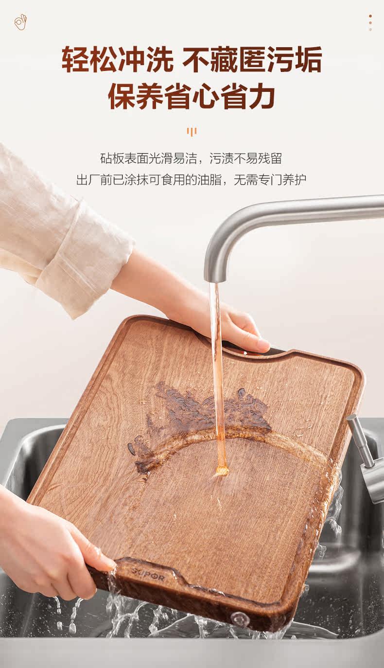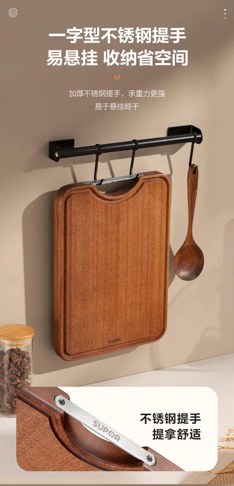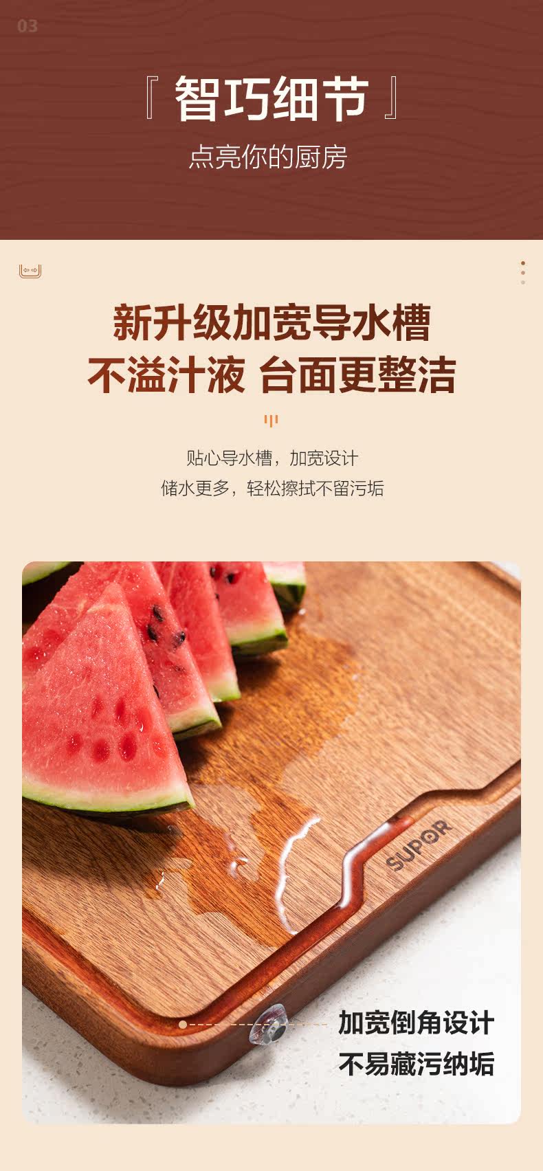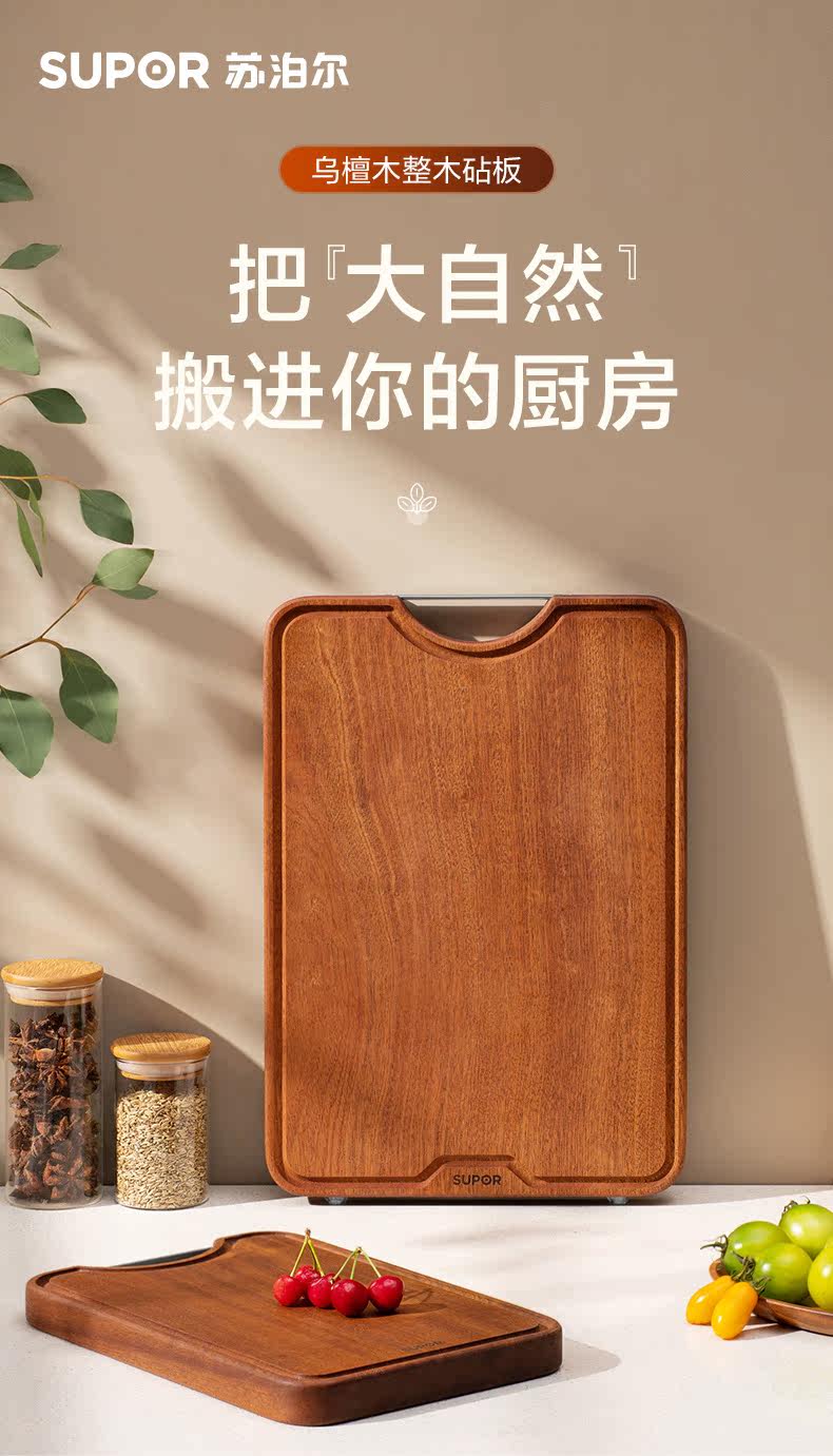 Supor Ebony Wood Cutting Board, Kneading Board, Dough Board, Household Chopping Board, Kitchen Fruit Cutting Board, Knife Board