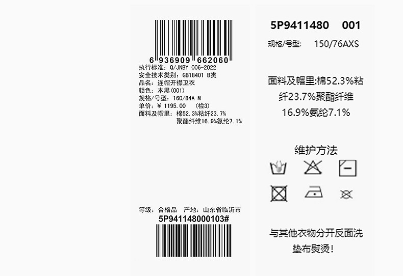 Material ingredients Cotton 59%, polyester 18%, lyocell (lyocell) 16%, polyurethane elastic fiber (spandex) 7%